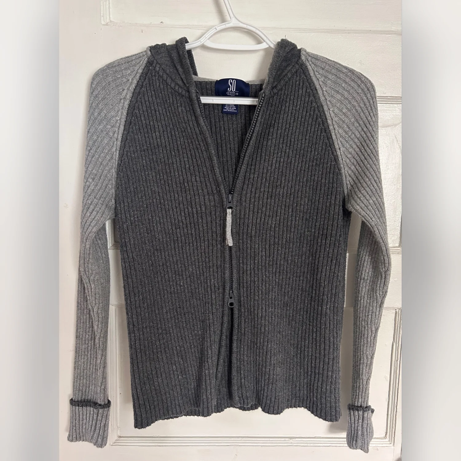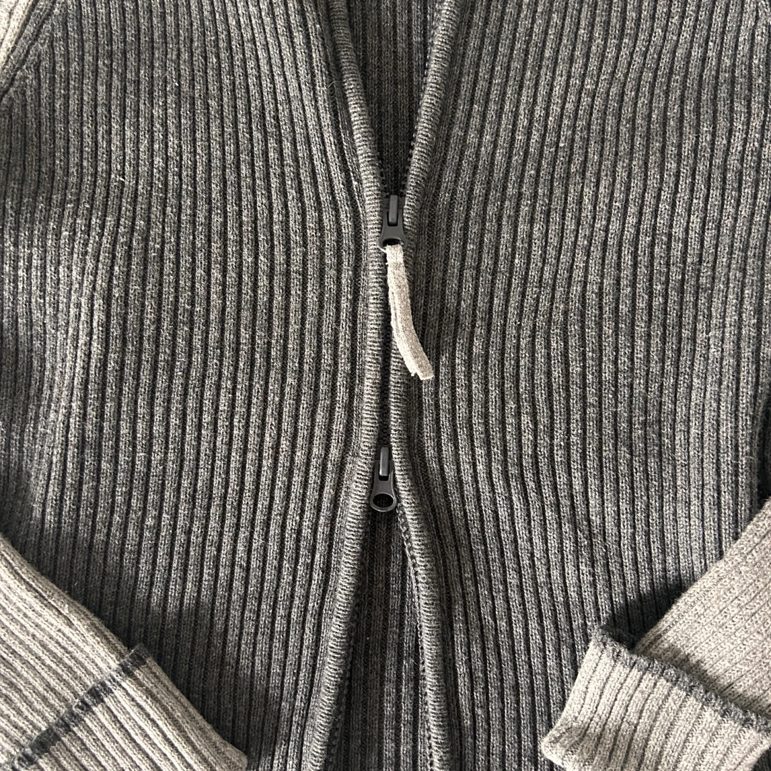 Two toned grey, ribbed zip up jacket with double zippers. Lightweight jacket. True to size (US S) could fit medium.