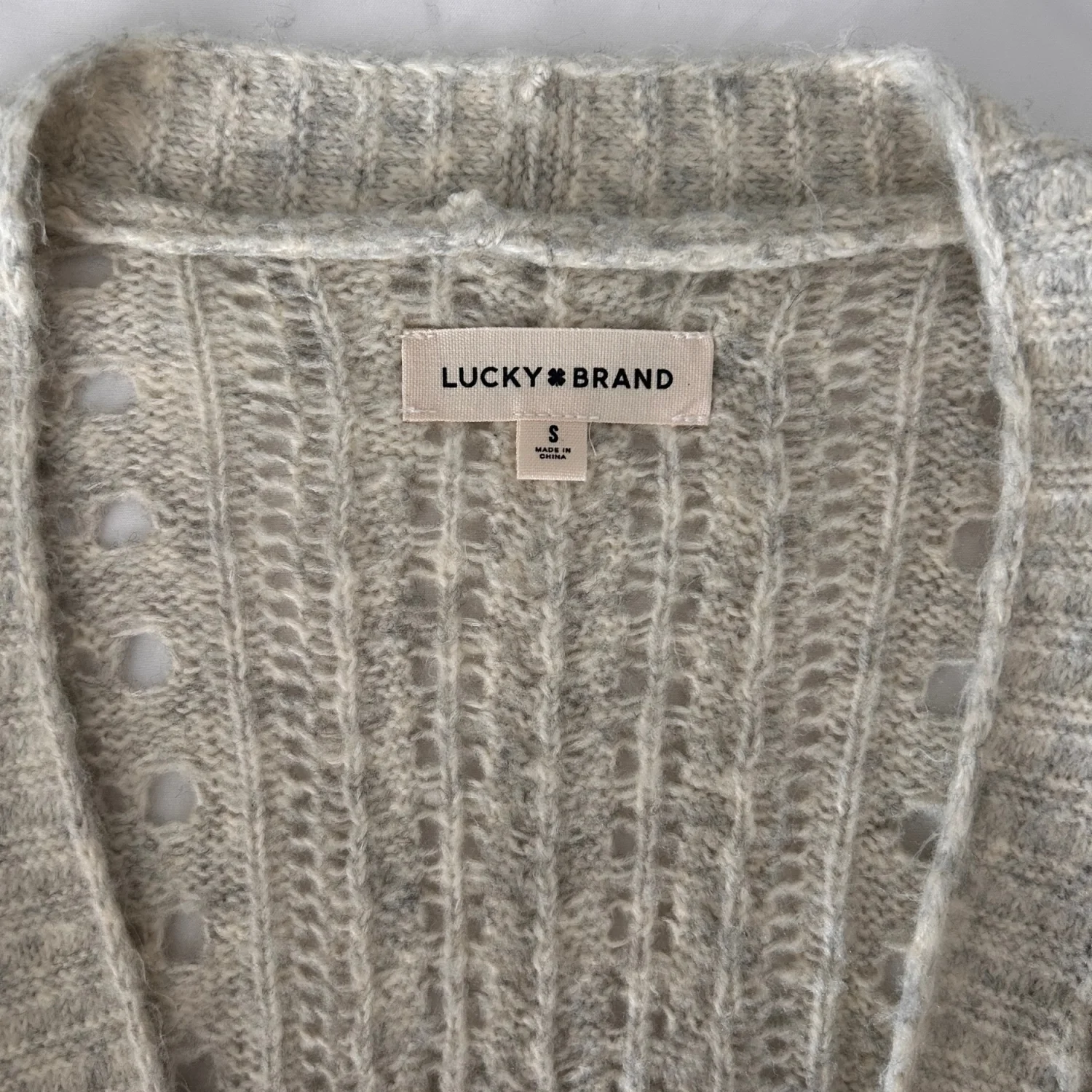 Cream and light grey knit cardigan. I bought this item new, but I have never worn it (tags removed). Size small could fit medium as well. Originally $40, listing for $20.