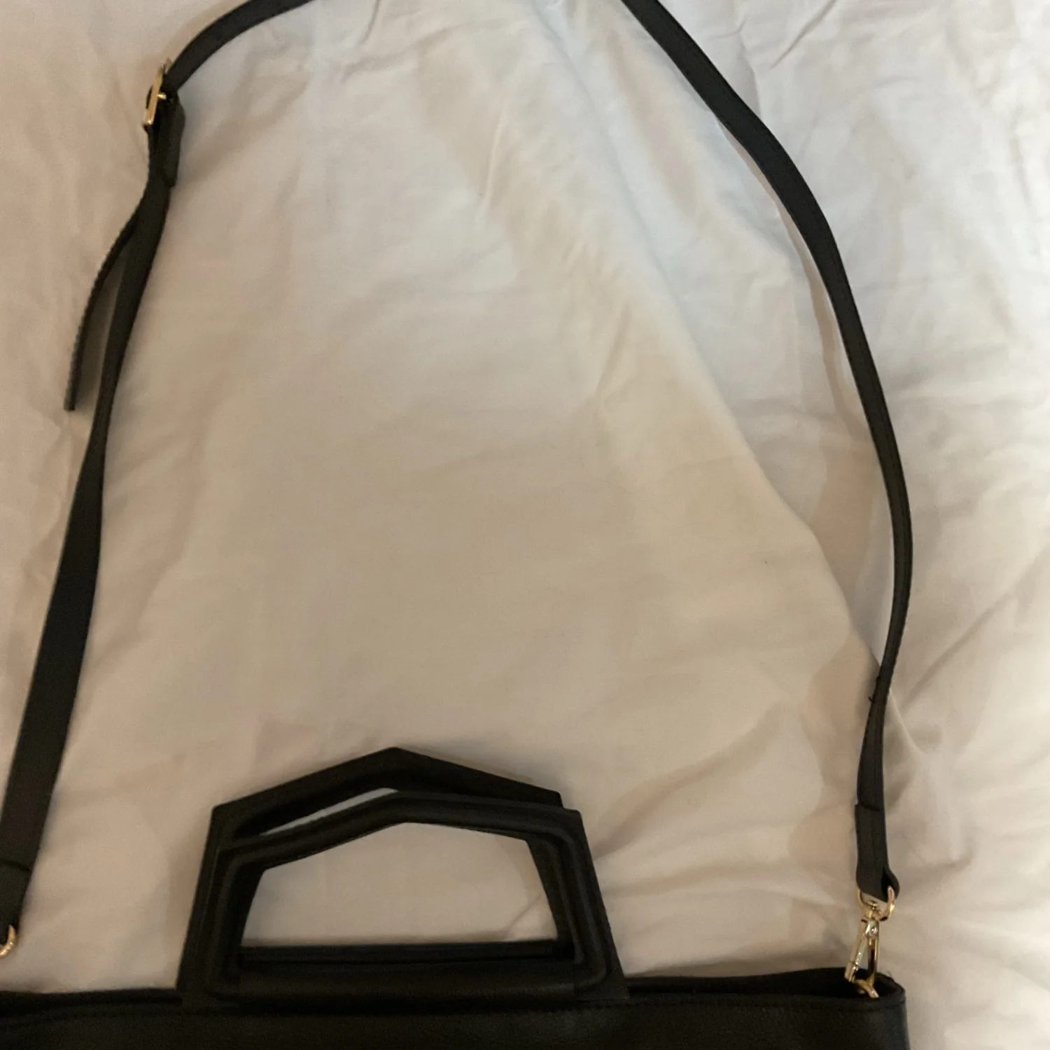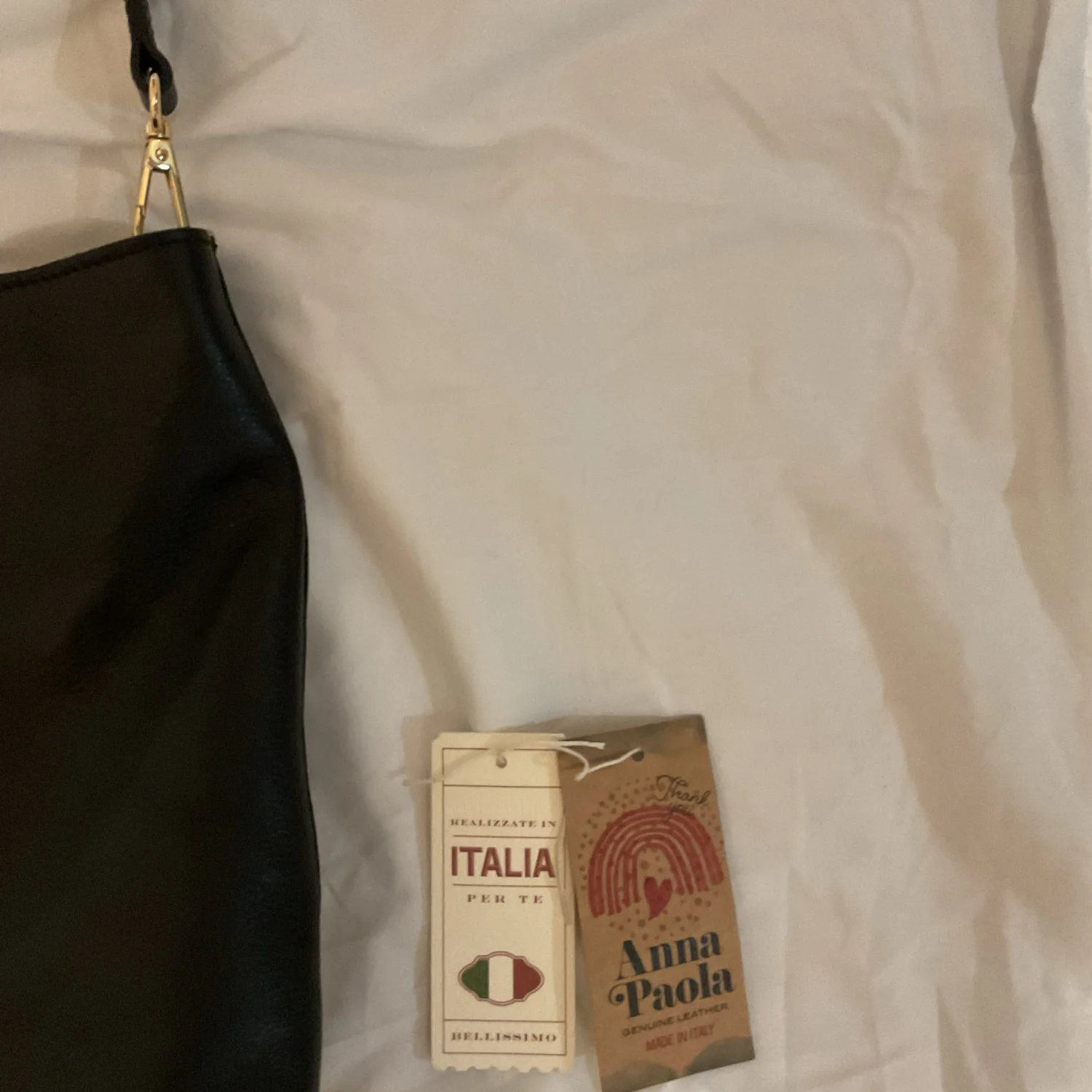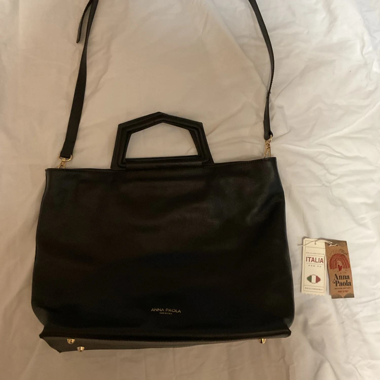 Chic functional and gorgeous NWT black leather tote from your girl Ana P. Bag dimensions are 16”Lx2.8Wx11.5H. This tote features a zipper top zip closure, inside zipper pocket, and gold tone “feet” on the bottom