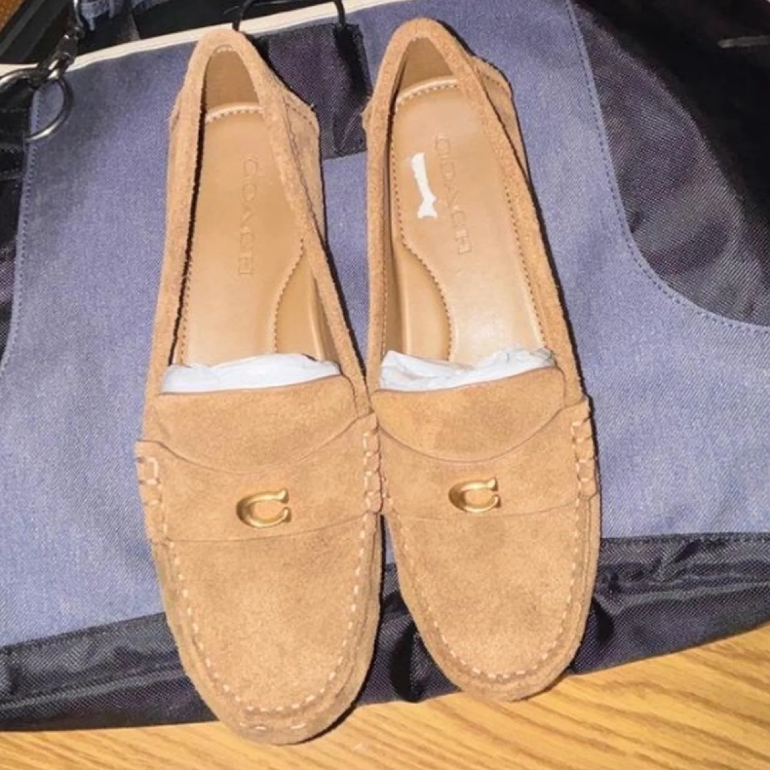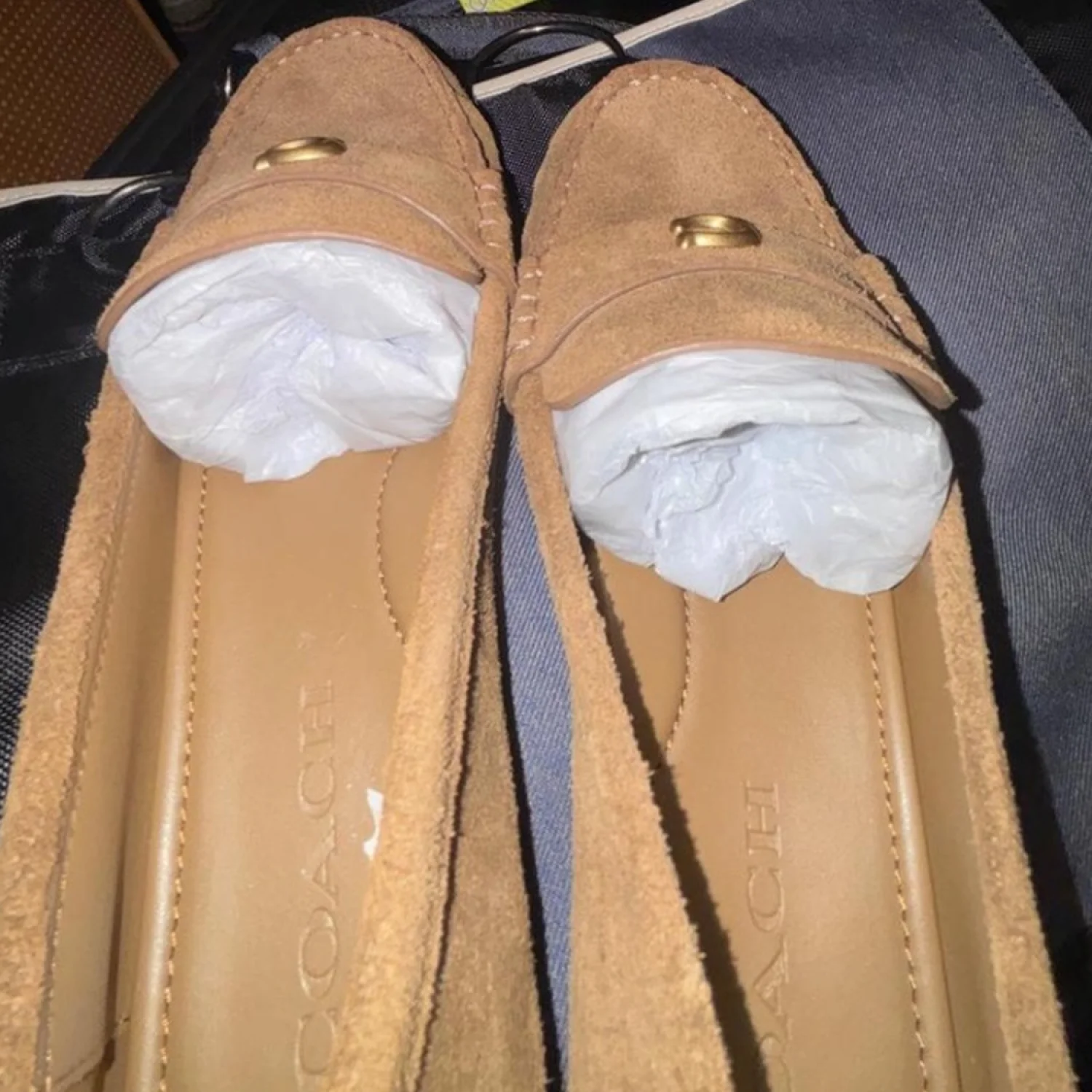 Coach Tan Suede Loafers with Gold Detail