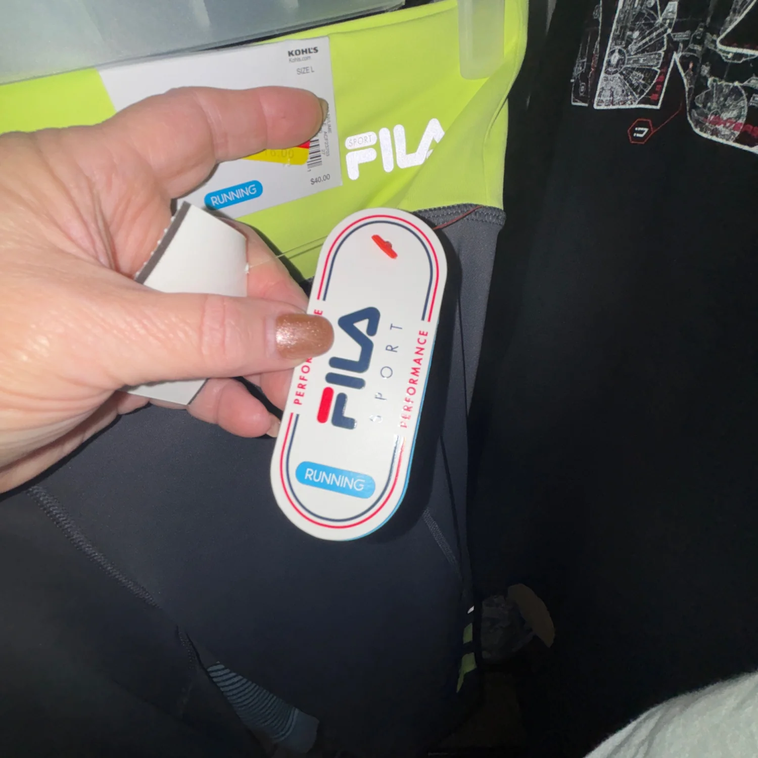 These Fila running leggings feature a vibrant neon green and grey color scheme, perfect for high-visibility during outdoor activities. Made from moisture-wicking fabric, they are designed for optimal performance and comfort. The leggings come with a secure drawstring waistband and logo detailing. Ideal for running or gym workouts. #Fila #Running #Activewear