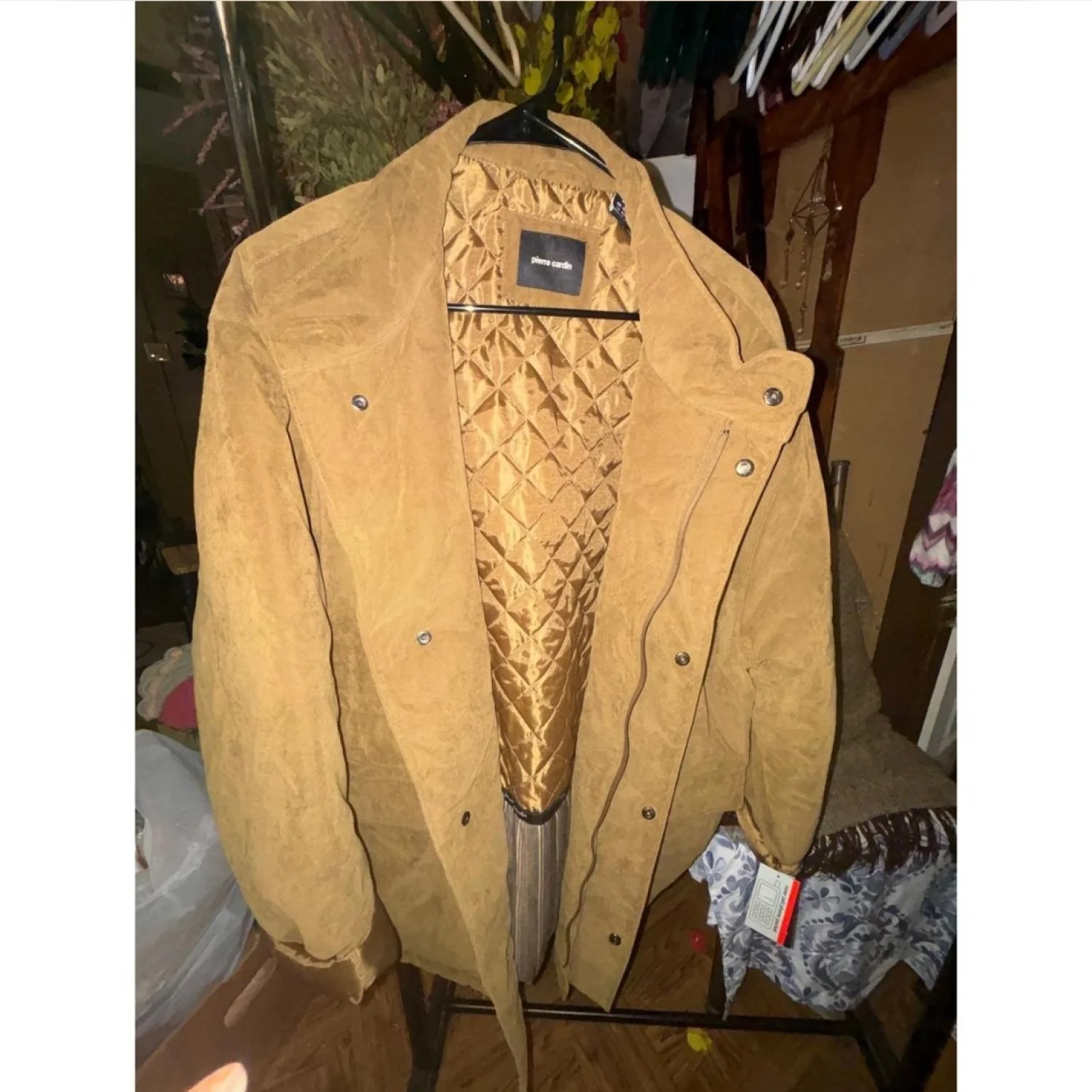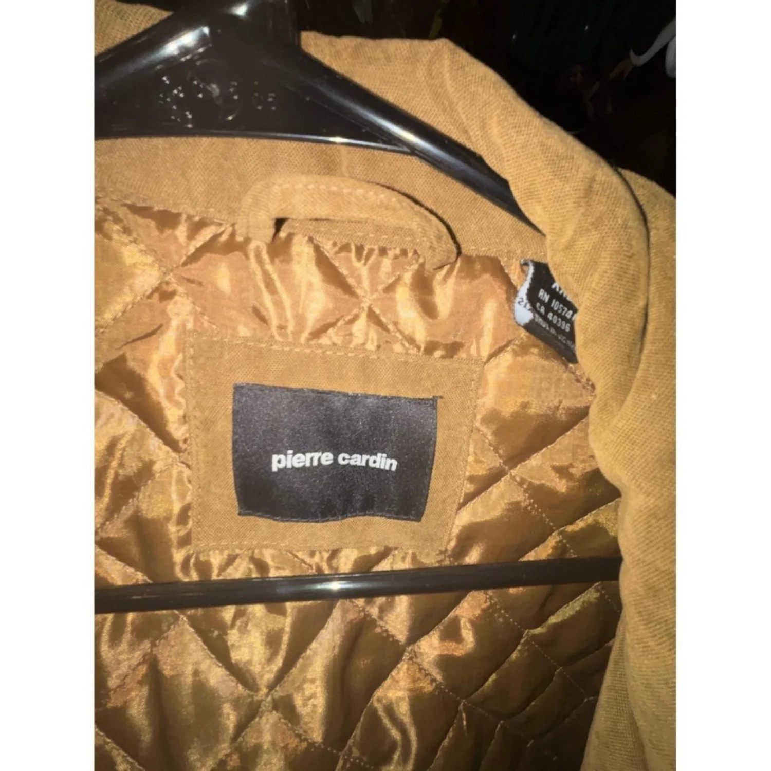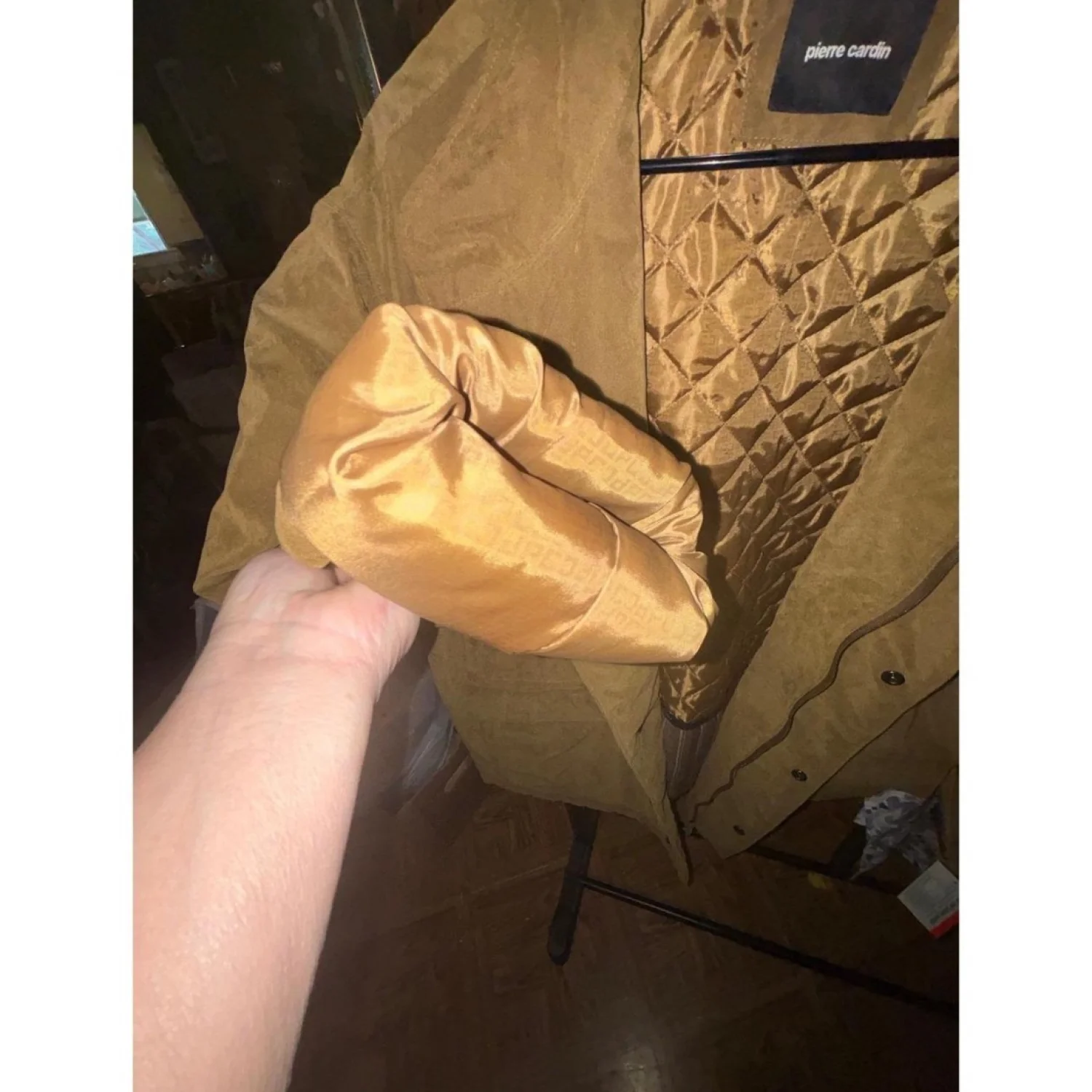 This Pierre Cardin jacket features a stylish tan exterior with a quilted design for added warmth and comfort. The jacket includes a snap button closure and a diamond-patterned lining with striped detailing at the bottom hem. Perfect for layering during cooler seasons. Made from durable materials with quality craftsmanship. Ideal for adding a touch of elegance to your wardrobe. #PierreCardin #Jacket #Quilted #Tan