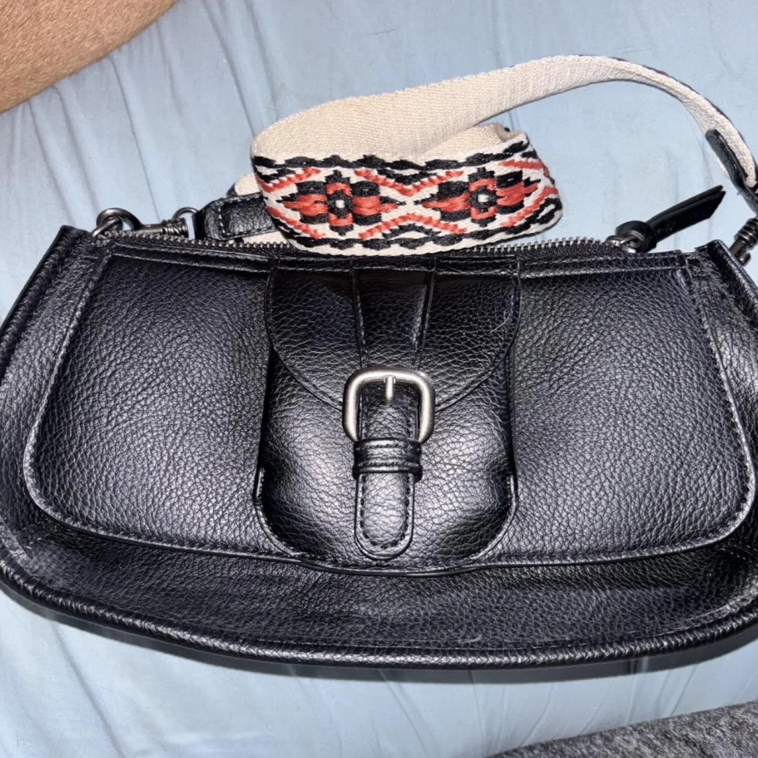 This set includes two unique handbags. The first is a black leather handbag featuring a textured finish and buckle detail, complemented by a decorative woven strap. The second is a vibrant multicolored fabric handbag with brown leather accents and a playful pattern design, secured with a metallic clasp. Perfect for adding a pop of color or a sleek look to any outfit. #accessories #bags #handbags #fashion
