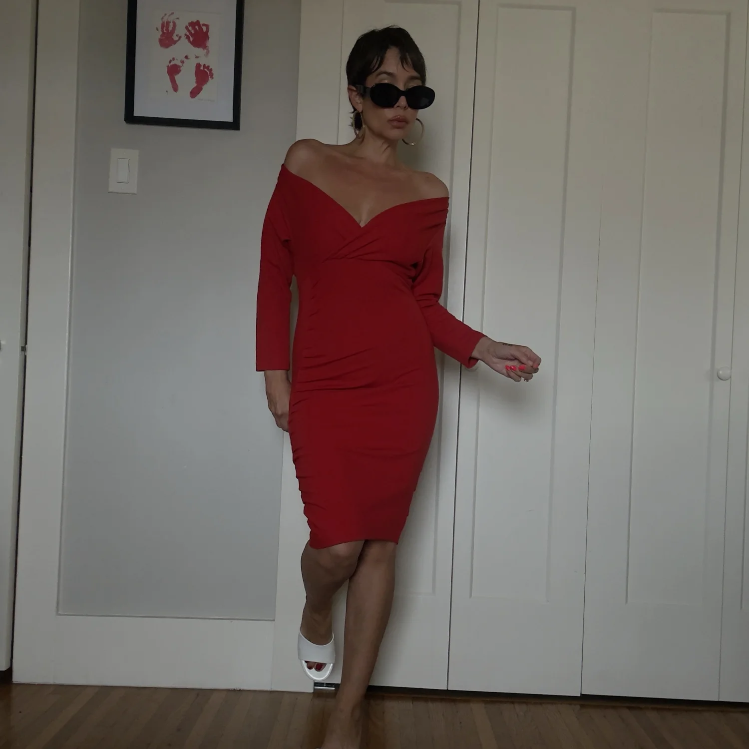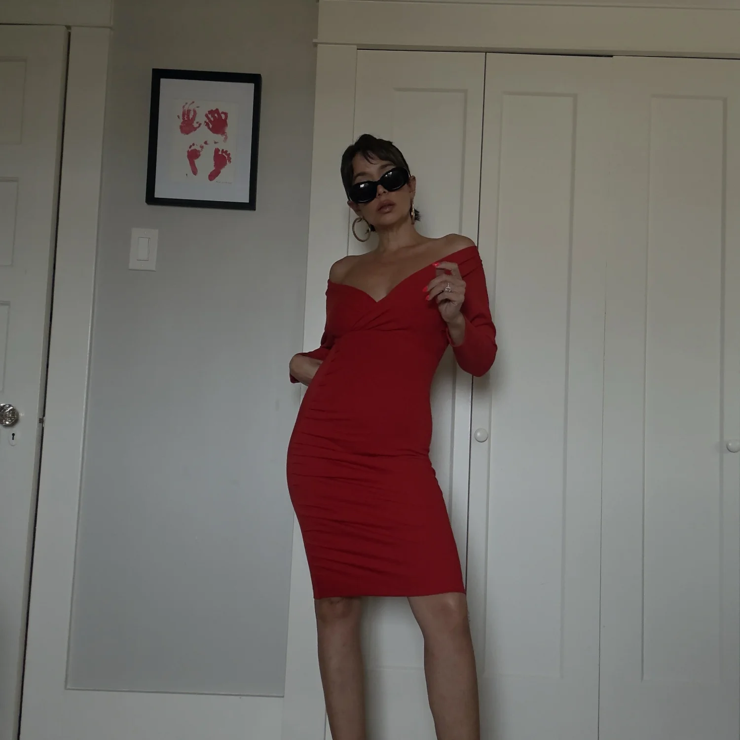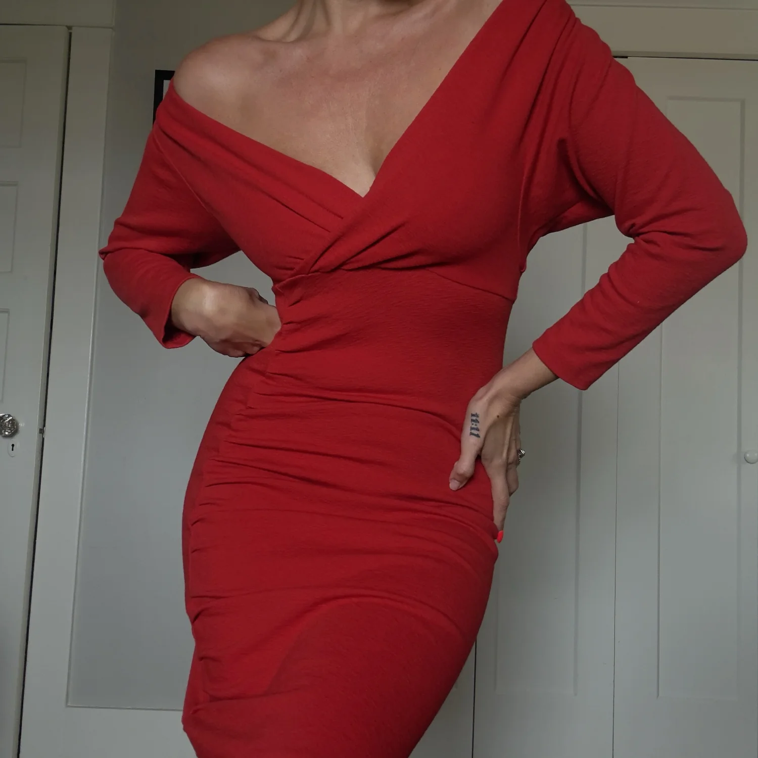 Diane von Furstenberg bodycon dress in a bold red with a sleek, flattering fit soft, stretchy fabric that hugs in all the right places while staying comfortable pull-on style for an easy, seamless look timeless, elevated, and perfect for nights out, events, or special occasions excellent condition ✨ size: 0 (true to size) measurements: 12.5” waist 13” pit to pit 24” pit to hem model: 5’3” (32-25-35.5) #y2k #90s #redhot #minimal #reddress