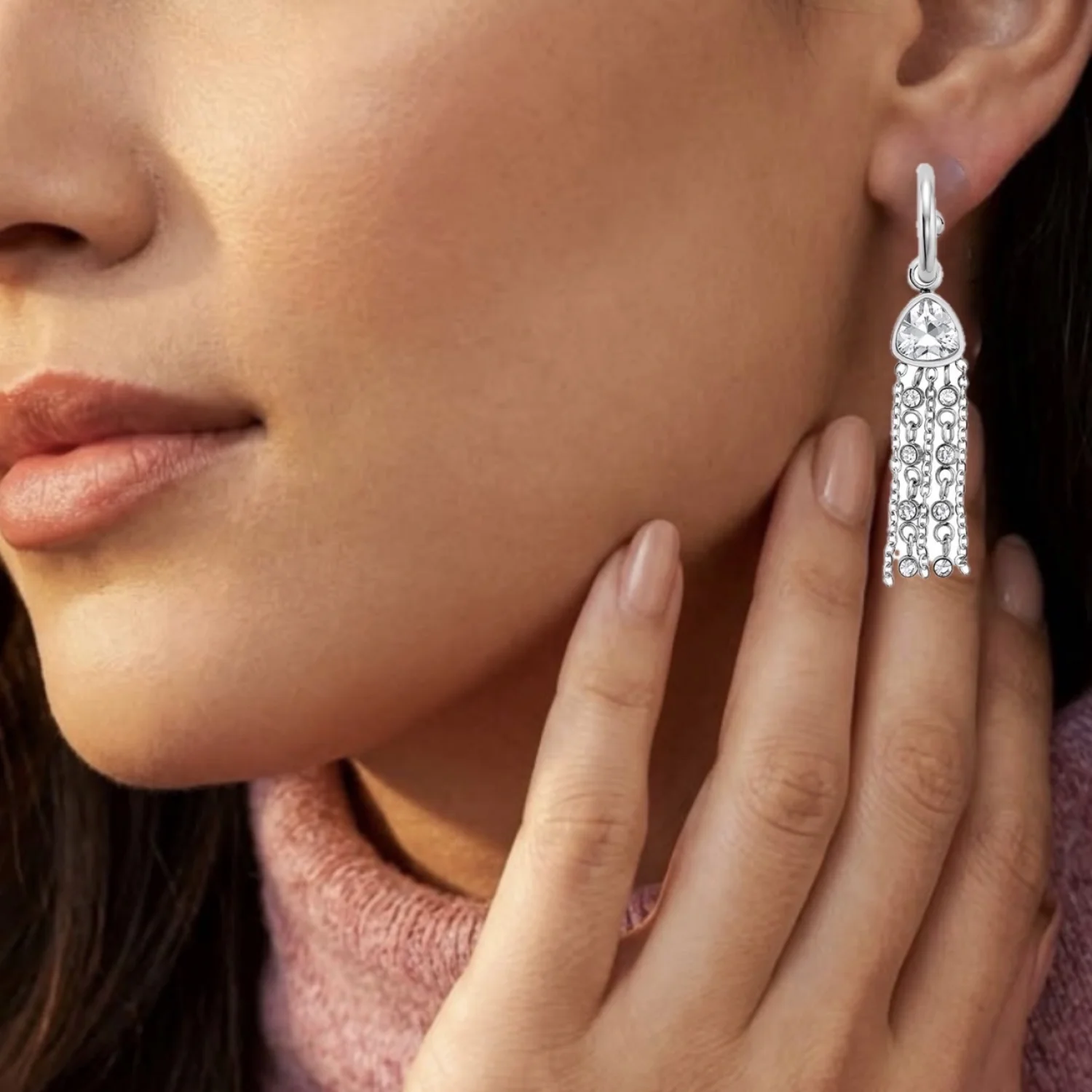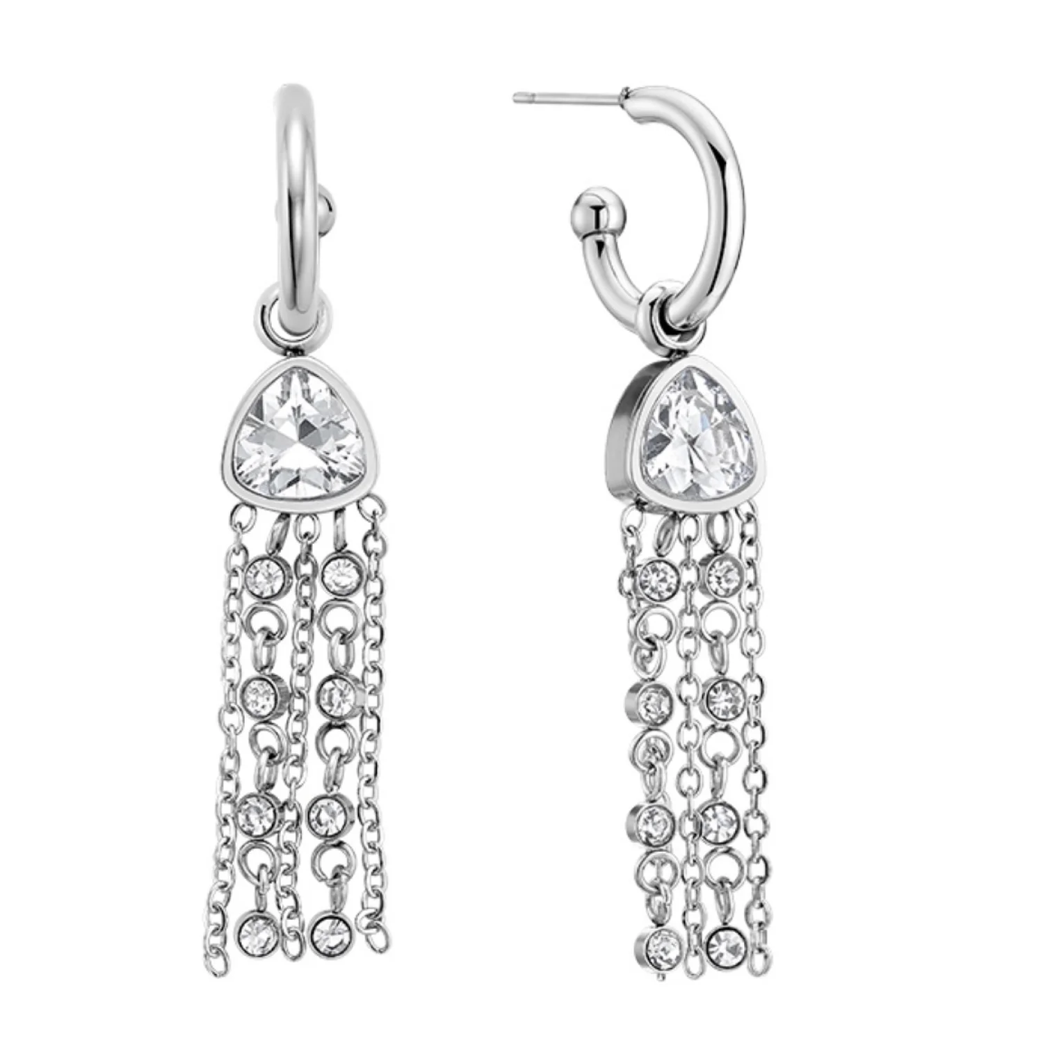 Stunning drop earrings with movement and crystals that catch the light and sparkle. These are made of stainless steel for durability and then rhodium plated. These are post style for easy wear and comfort. Very beautiful. These arrive NWT in box Retail $69