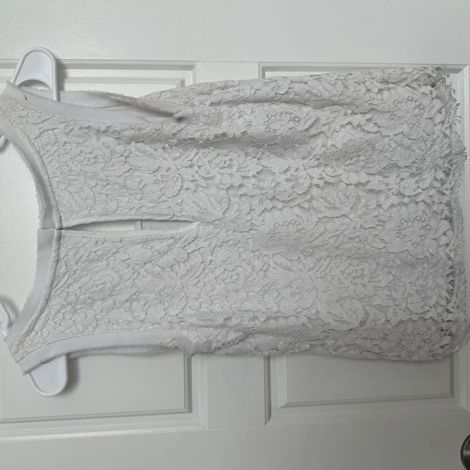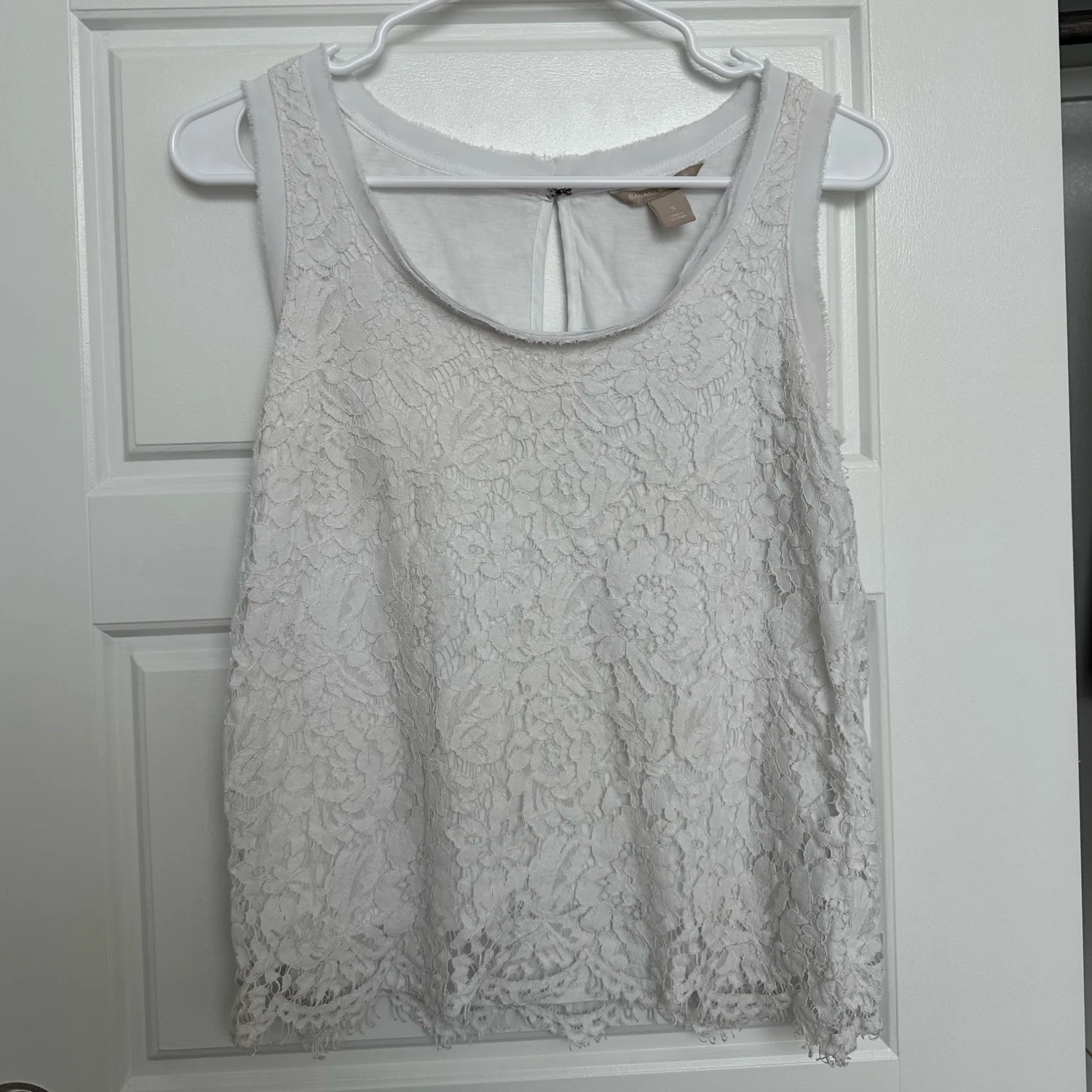 A sleeveless tank top with lace design. The top is made of a light, breathable fabric with a floral lace pattern. The lace appears to be in good condition with no visible damage.