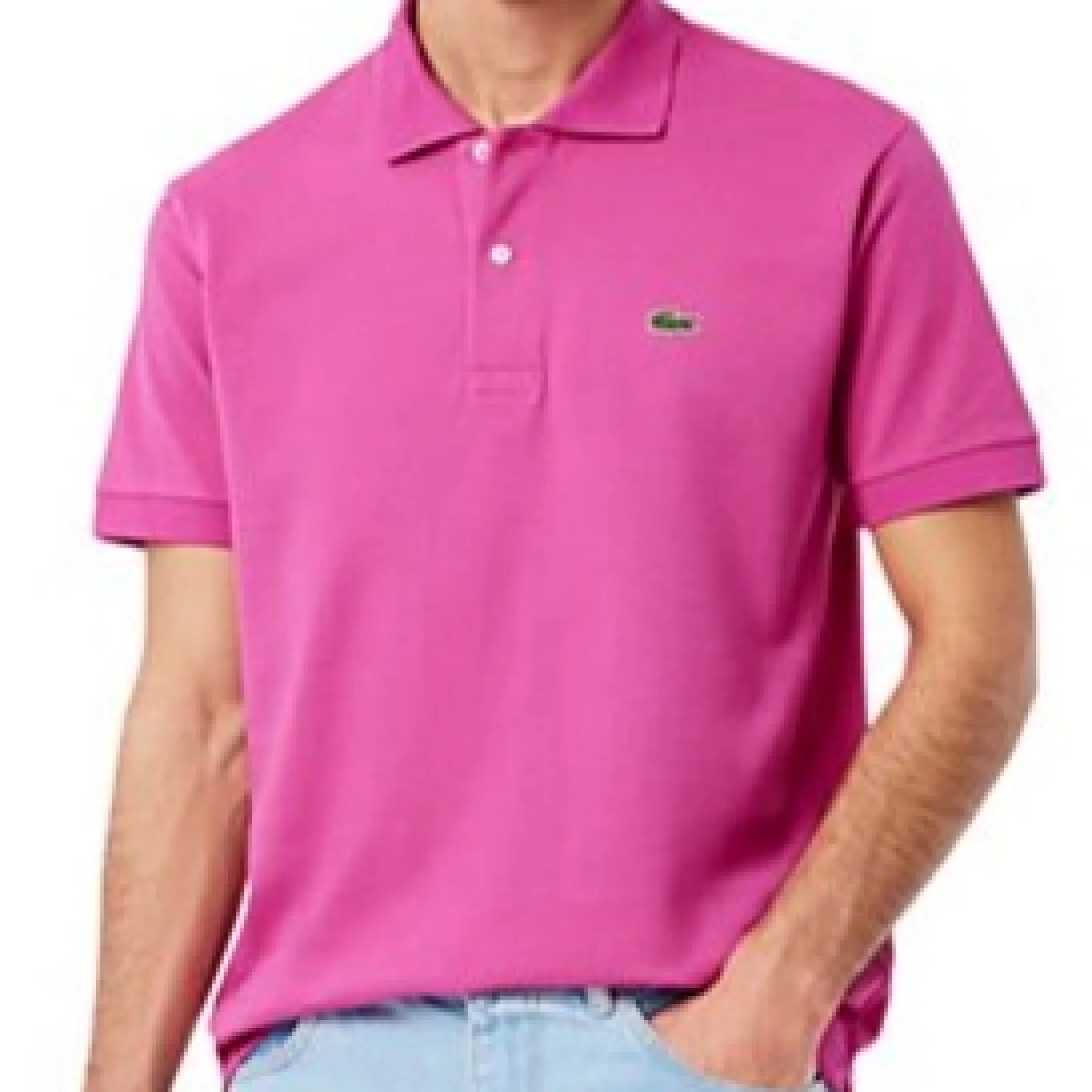 Classic Pink Lacoste polo shirt featuring a signature crocodile logo on the chest. Made from soft, comfortable cotton, perfect for casual and semi-casual occasions. This timeless piece offers a relaxed fit and a ribbed collar, embodying the brand's iconic style. #Lacoste #Polo #CasualWear