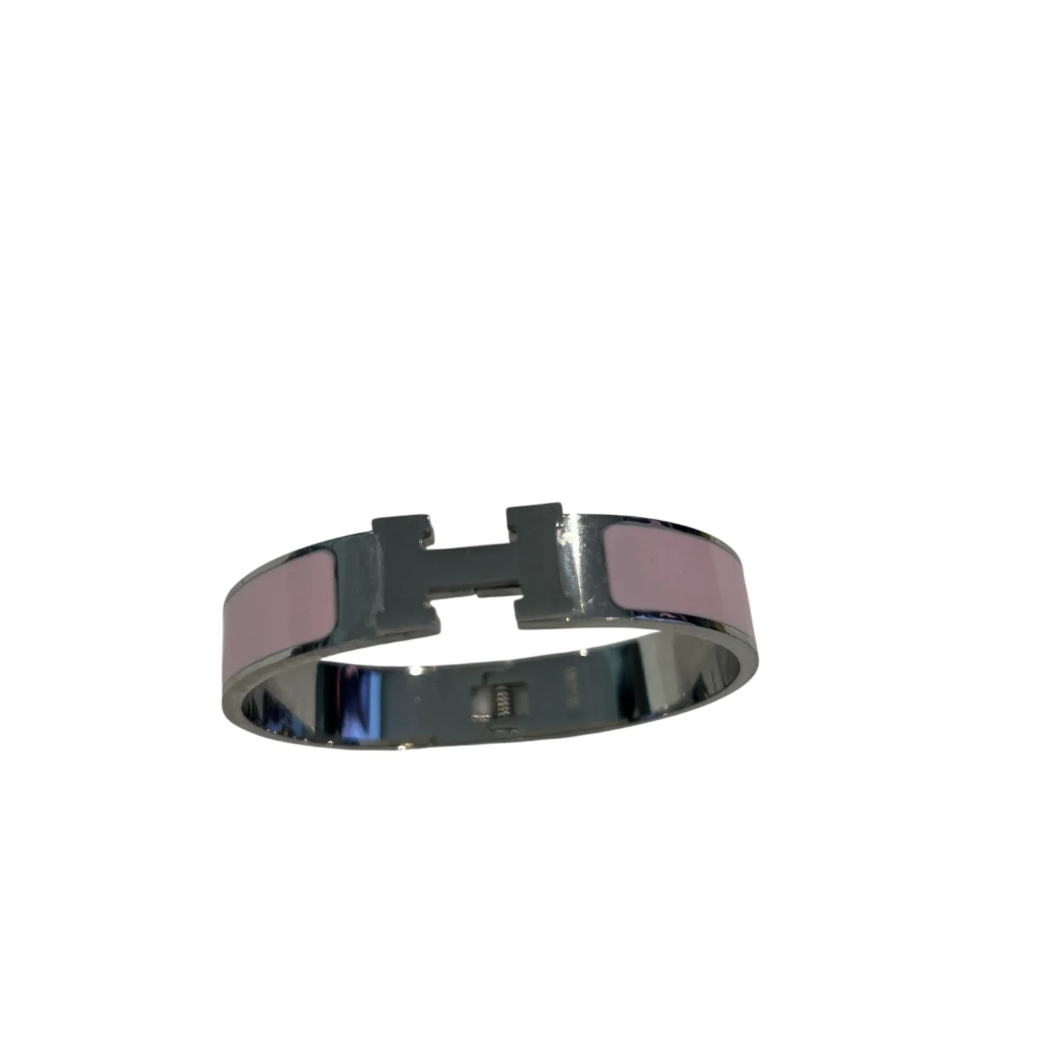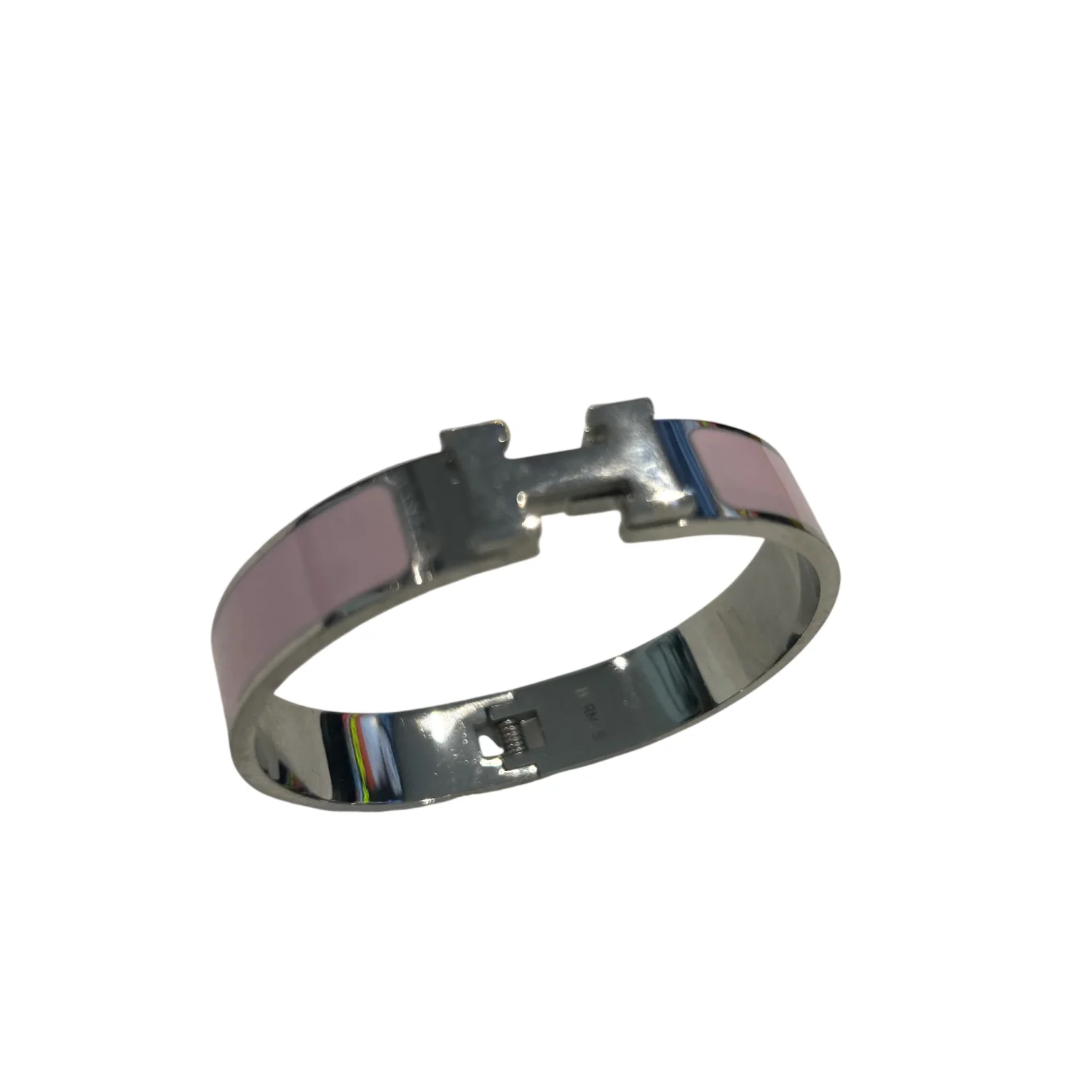 Metallic Pink Enamel Bracelet with 'H' Detail
