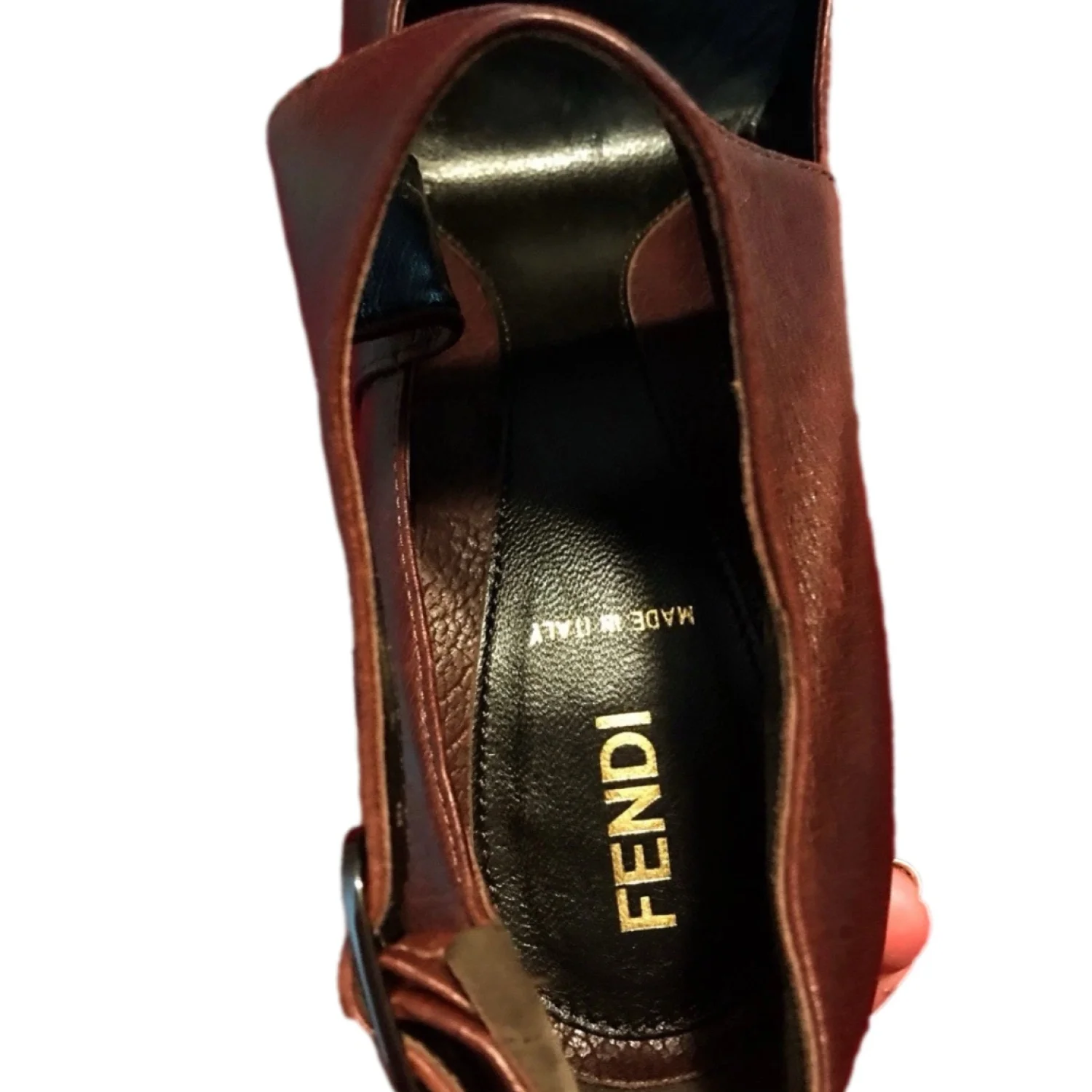 Fendi cognac leather Mary Jane platform heels, size 37. Made in Italy. Stunning cutout design with a tall stiletto heel and platform. Pre-owned but in excellent condition with no major flaws or discoloration. Beautiful, bold, and perfect for special occasions. See photos for detail. Thanks!