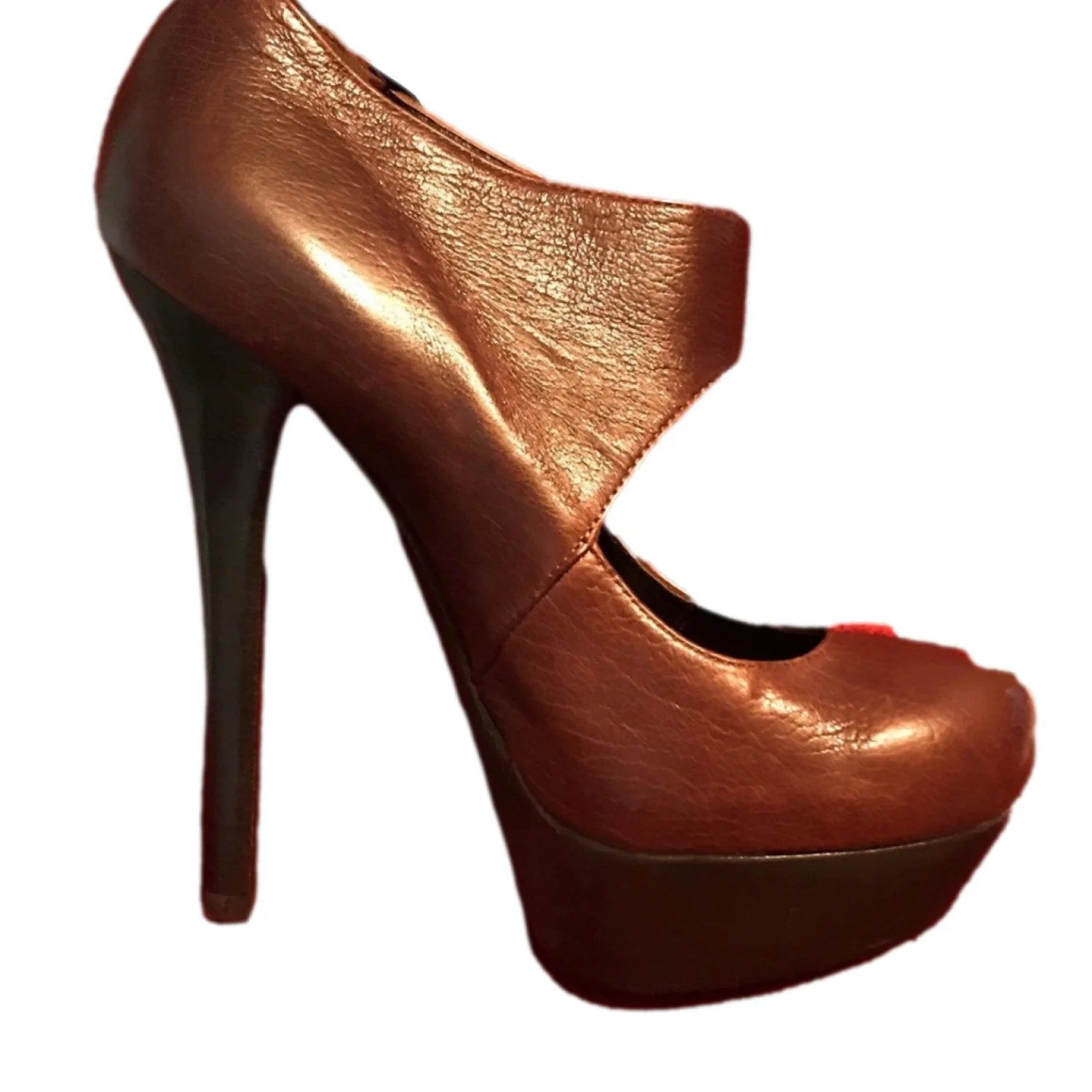 Fendi cognac leather Mary Jane platform heels, size 37. Made in Italy