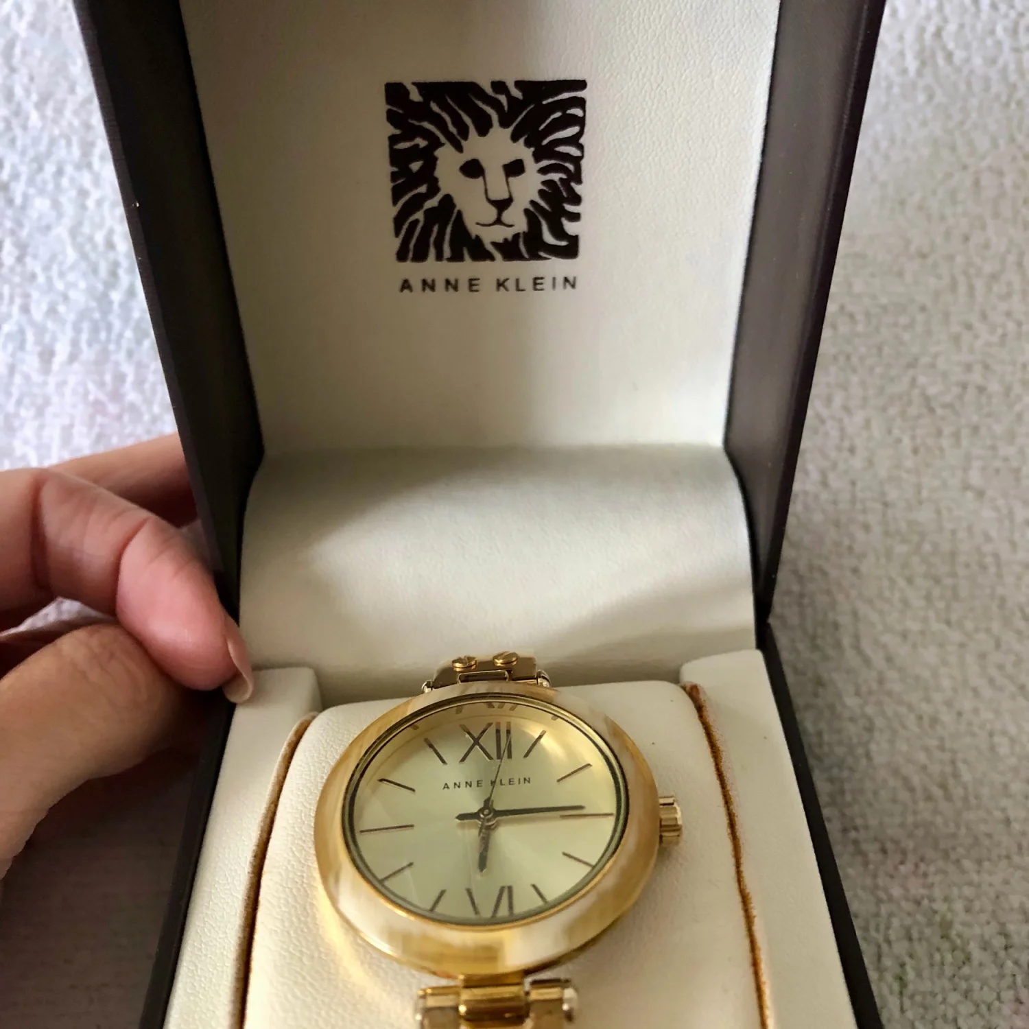 The ANNE KLEIN Women's Wrist Watch is a stylish timepiece perfect for everyday wear. Featuring a gold dial and water-resistant design, this round watch is both practical and elegant. Packaged in its original box, the watch also comes with a manual, making it an ideal choice for those who appreciate quality and style. The brand's reputation for excellence and the watch's versatile style make it a must-have accessory for any woman's wardrobe. See Photos For Details and Condition. All Sales Are Final.