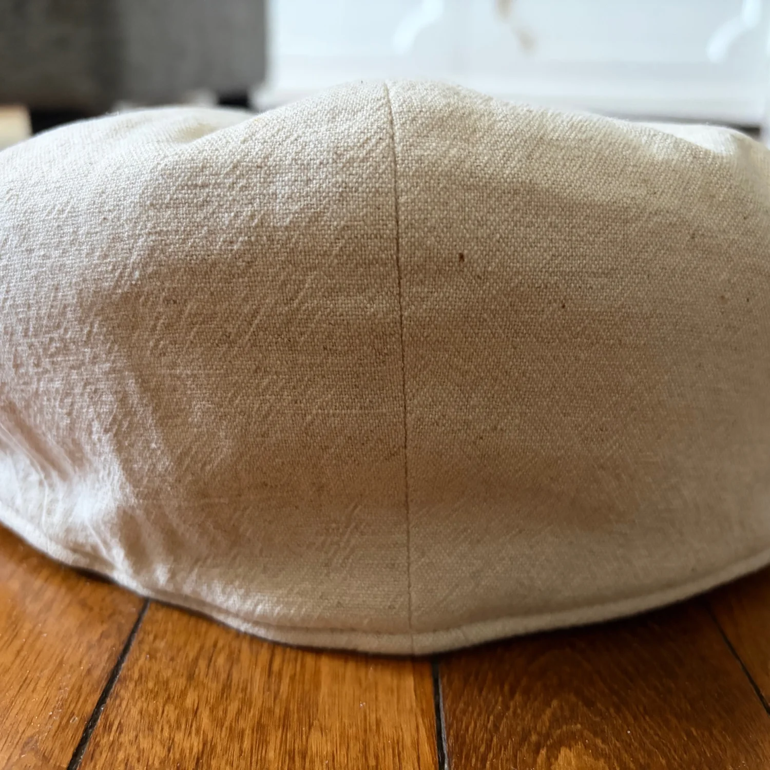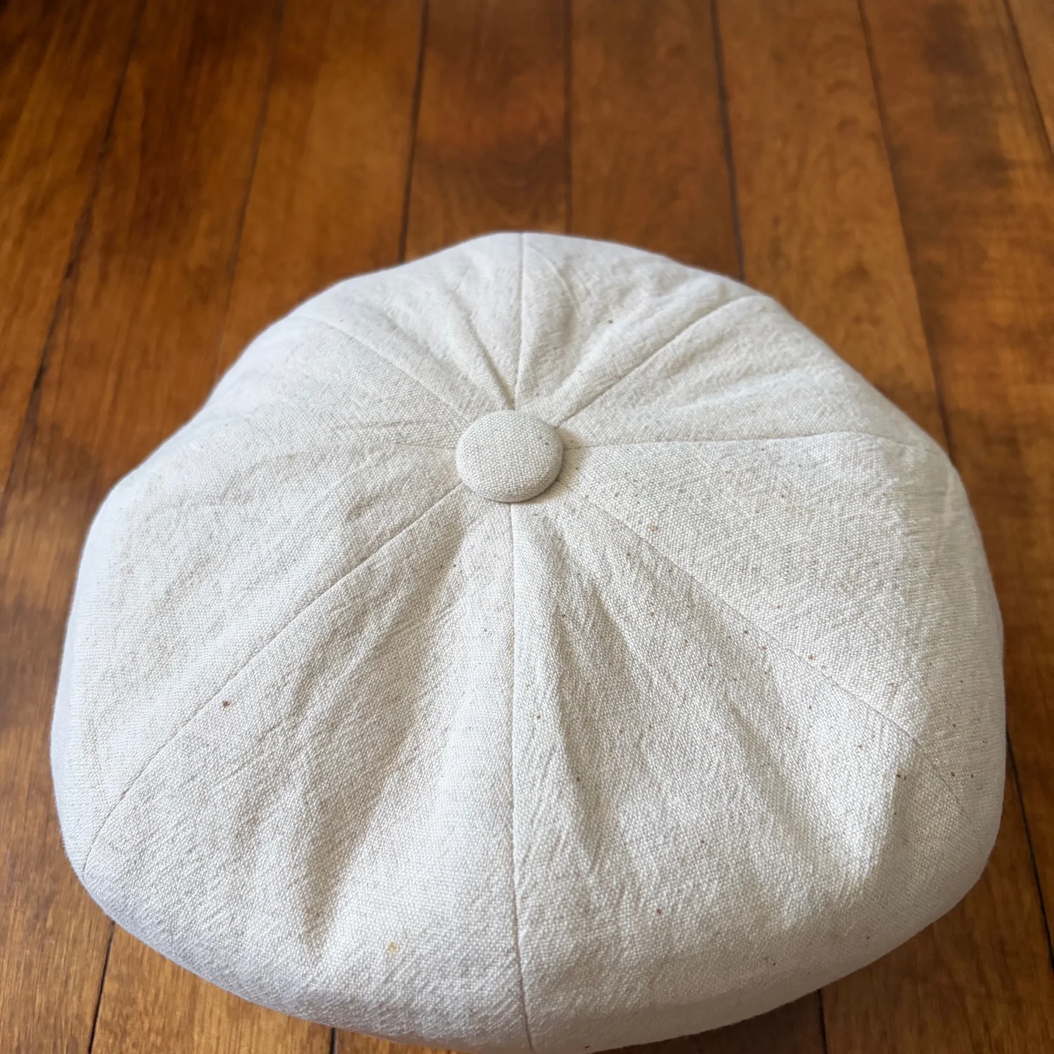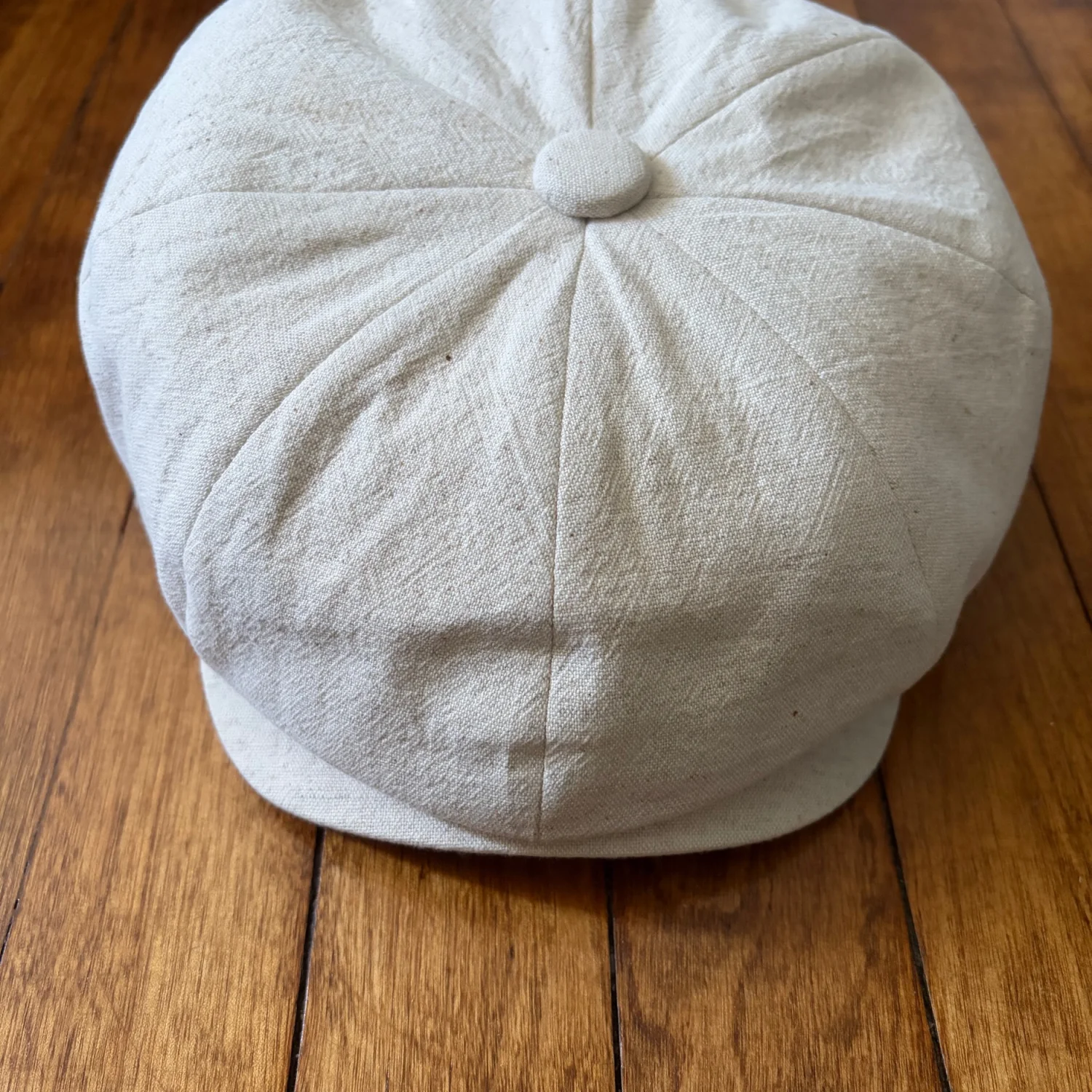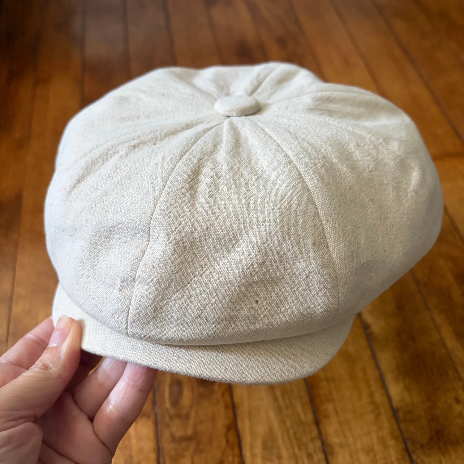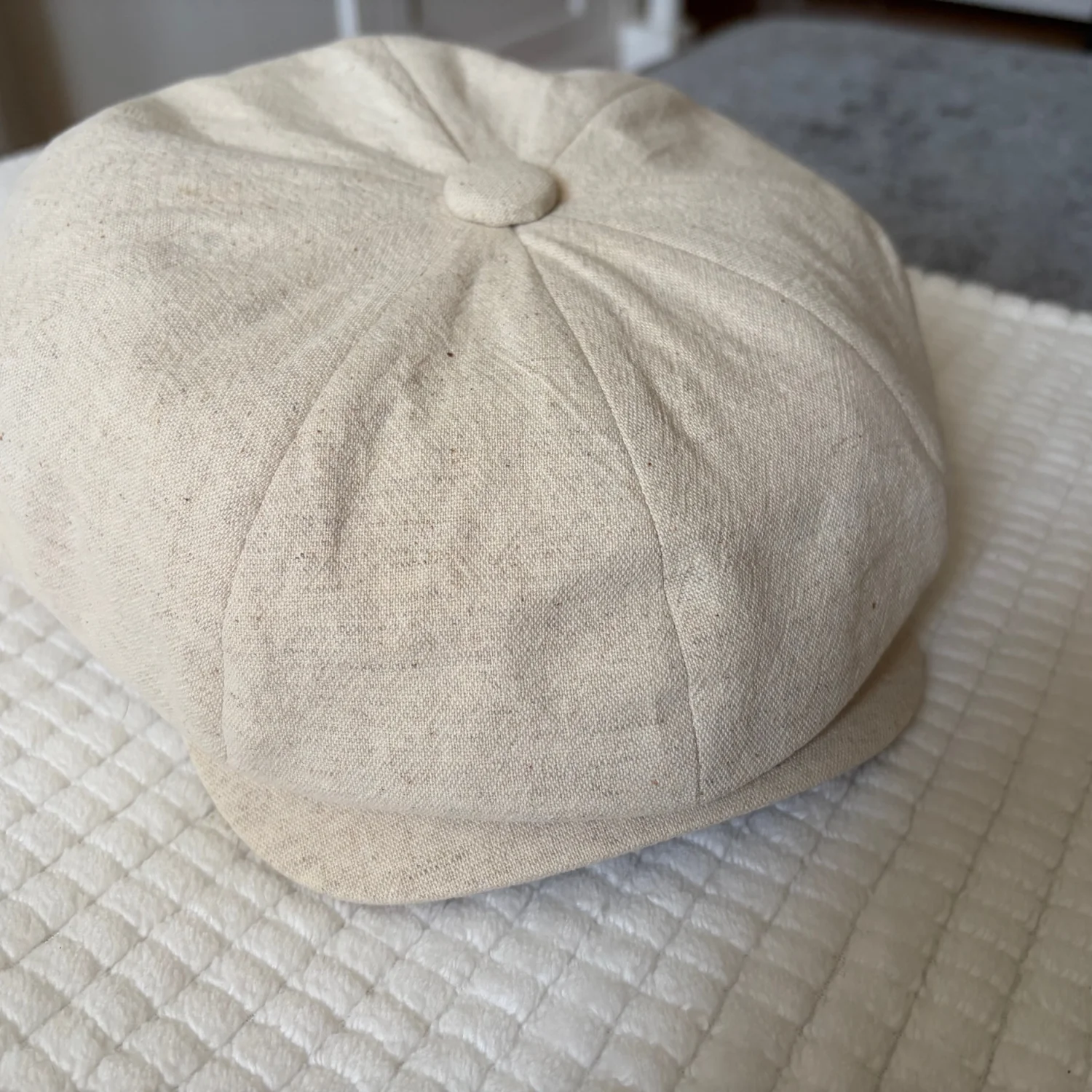 Soft beige linen newsboy cap. Classic eight-panel design with top button. Lightweight and breathable fabric. Neutral tone pairs well with many outfits. New without tags. See photos for details and condition. All sales are final.