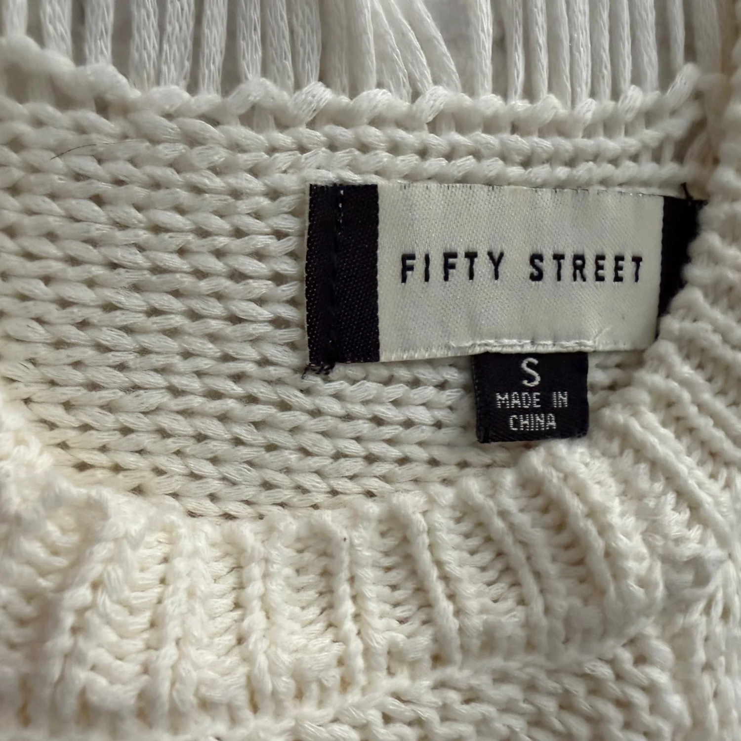 Fifty Street Cream Distressed Knit Lightweight Pullover Sweater Crew Neck Size S