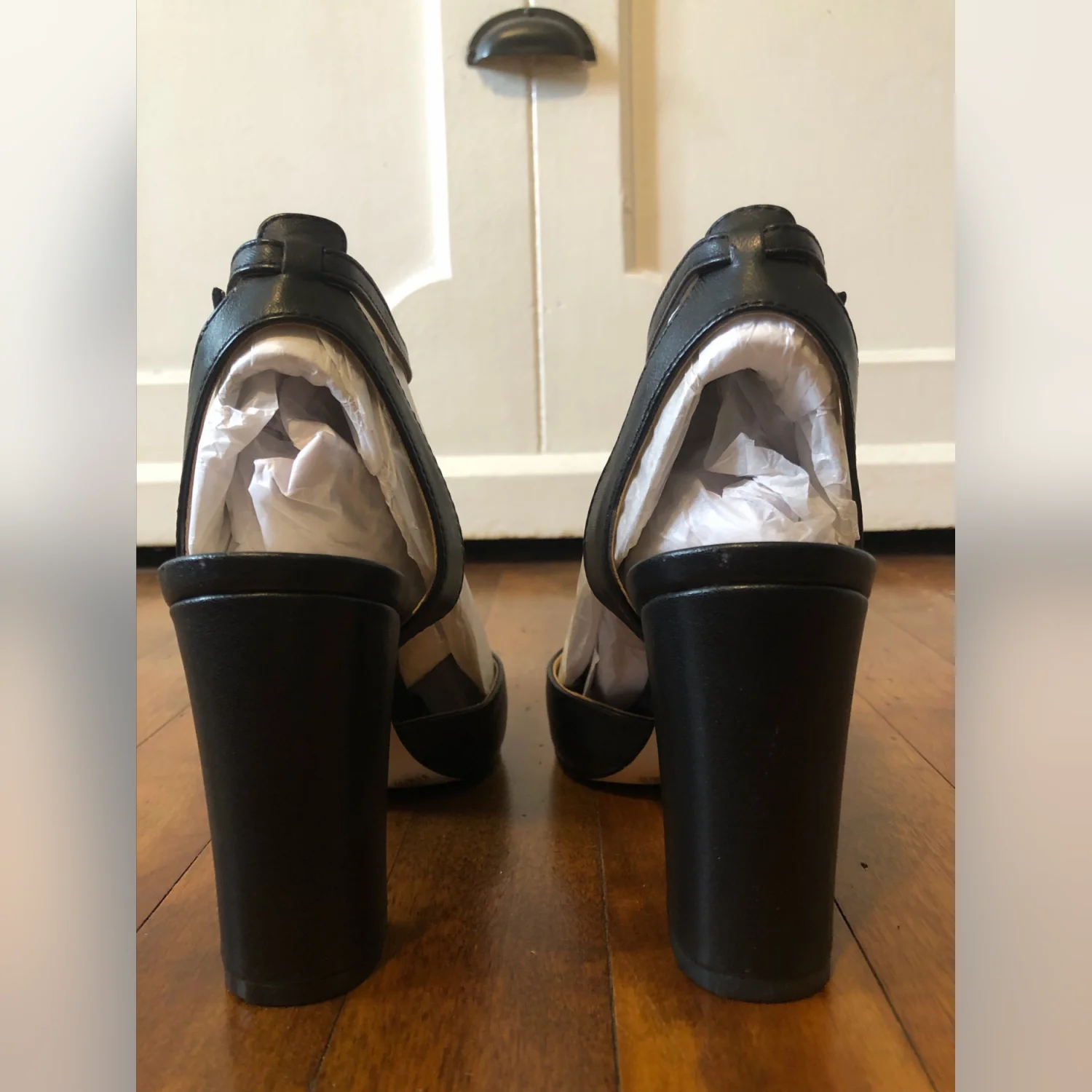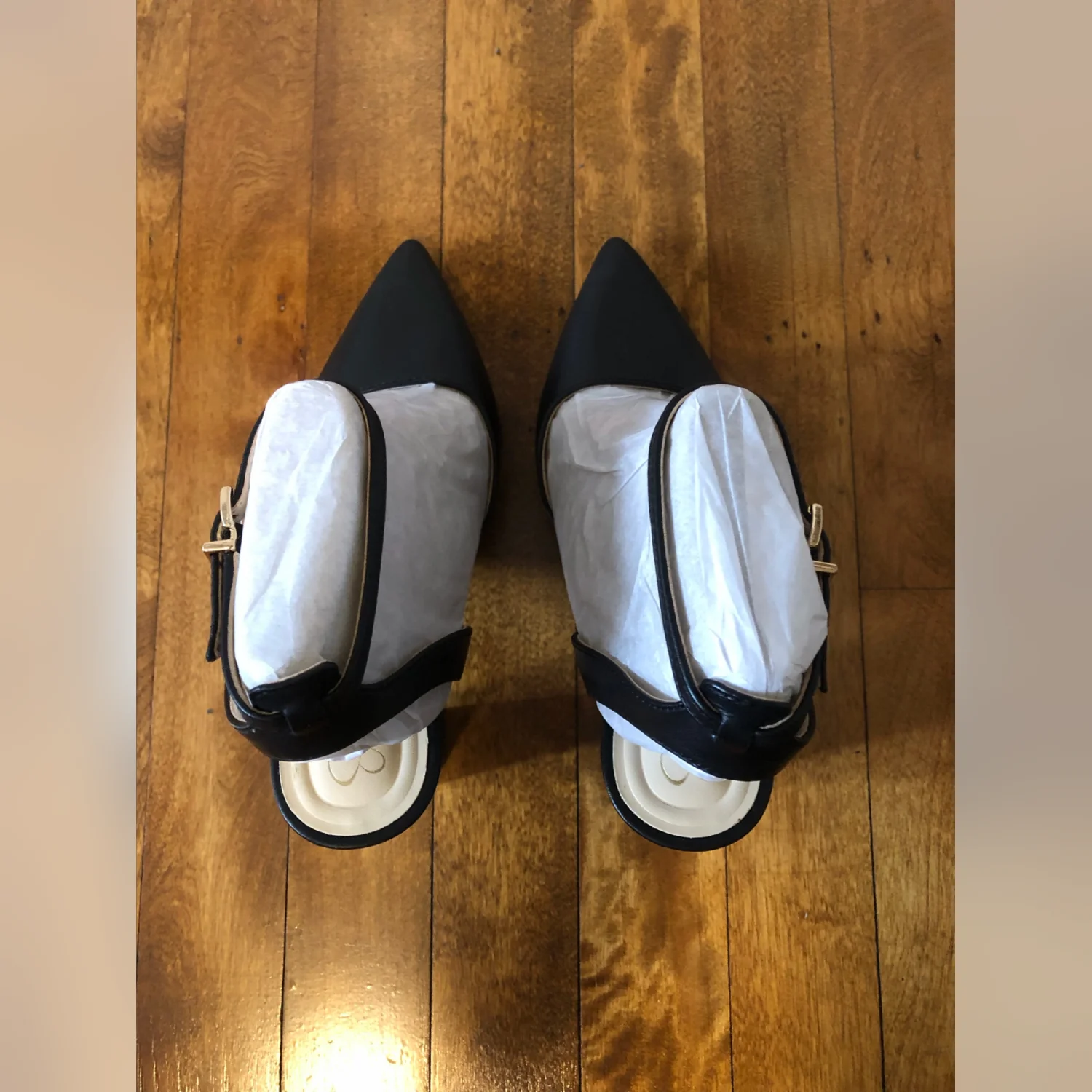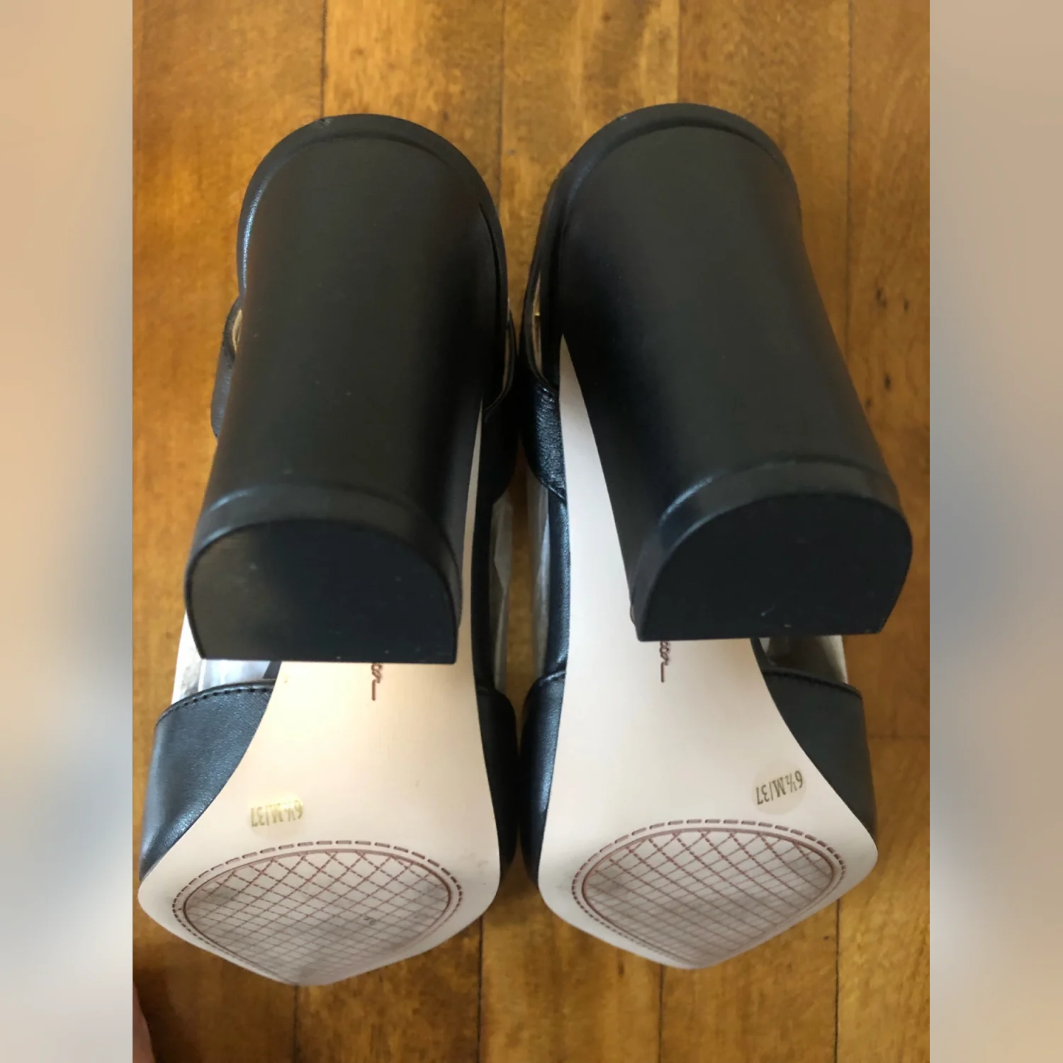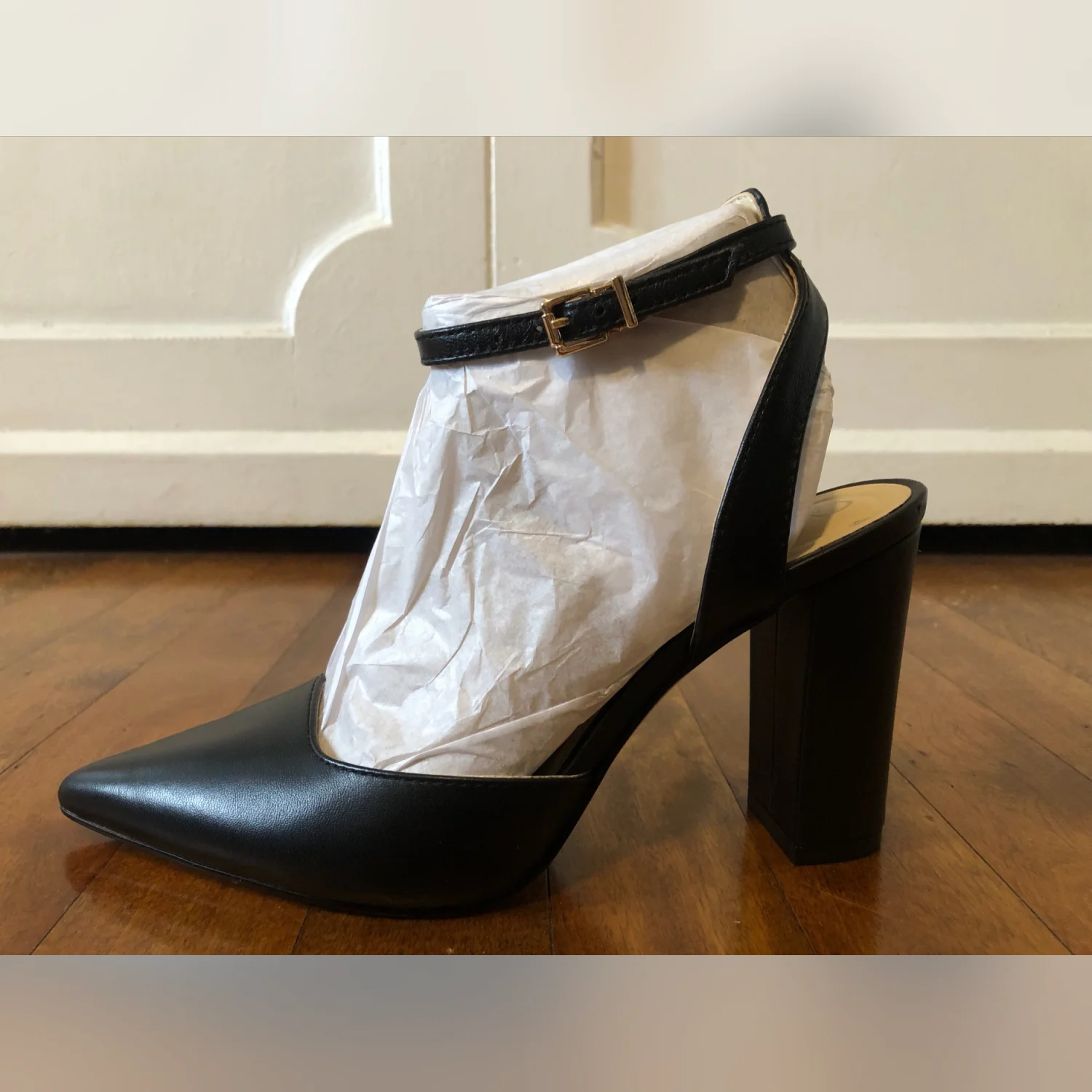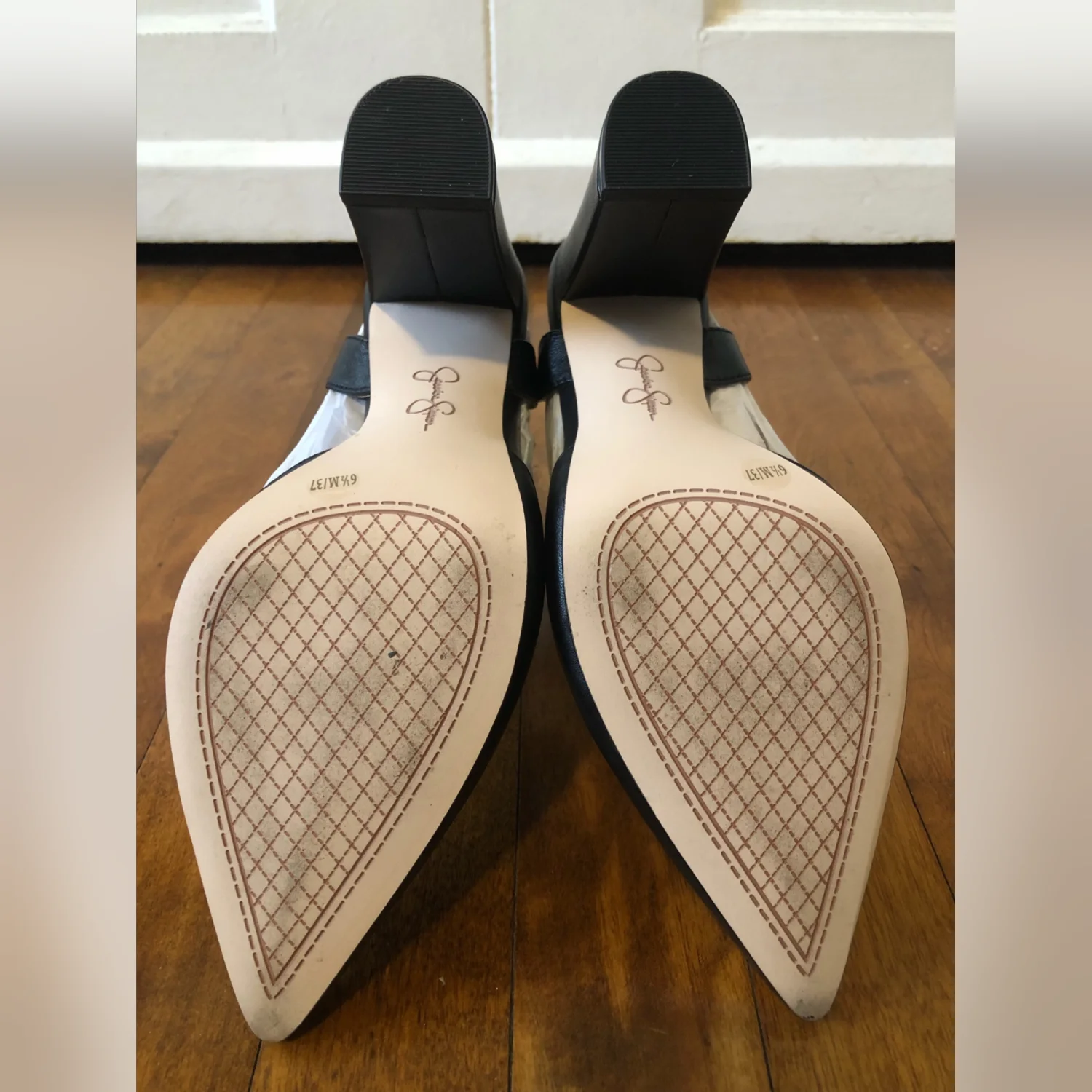 Jessica Simpson 6.5 M Pointed Toe Ankle Strap Pump Tall Block Heel Color Black Nazeli