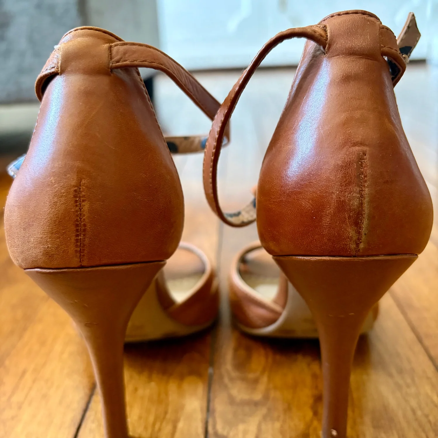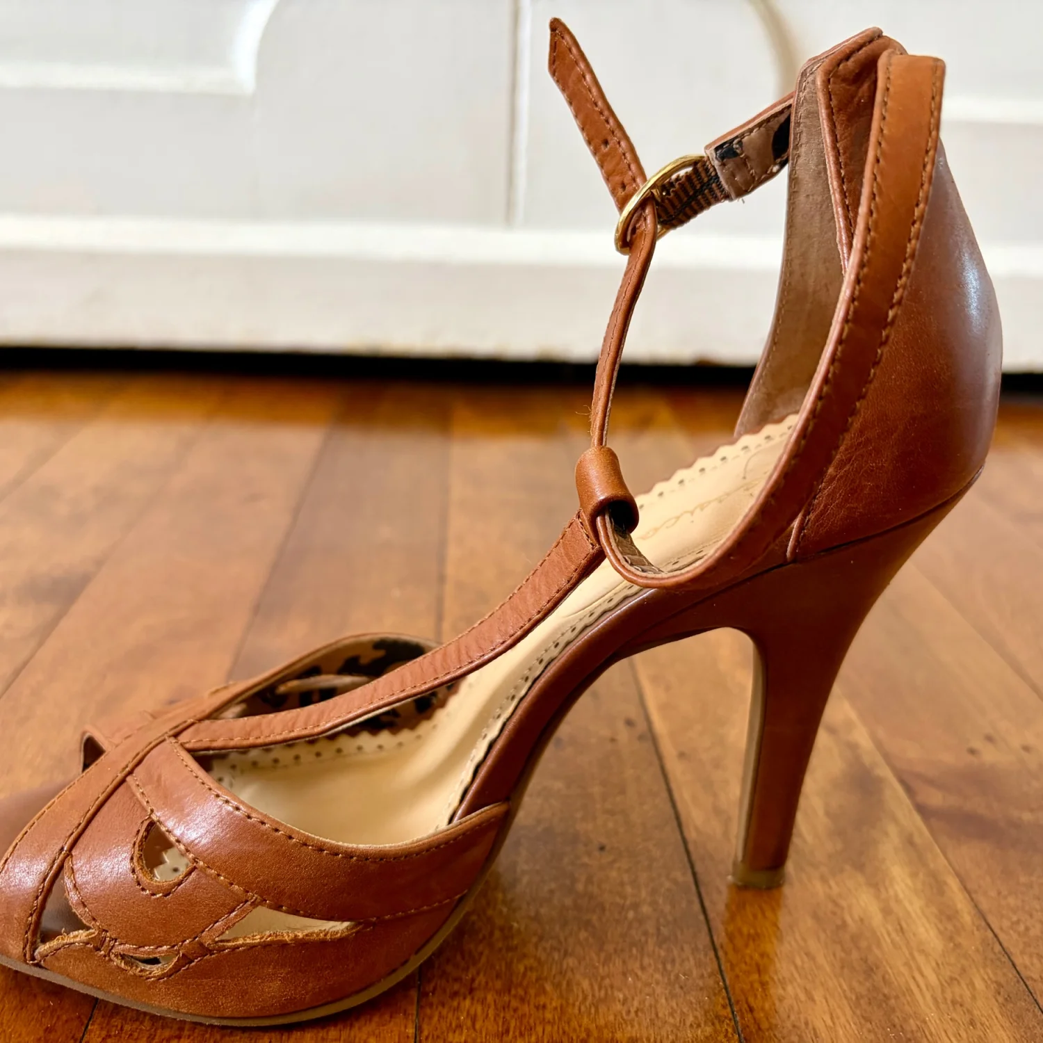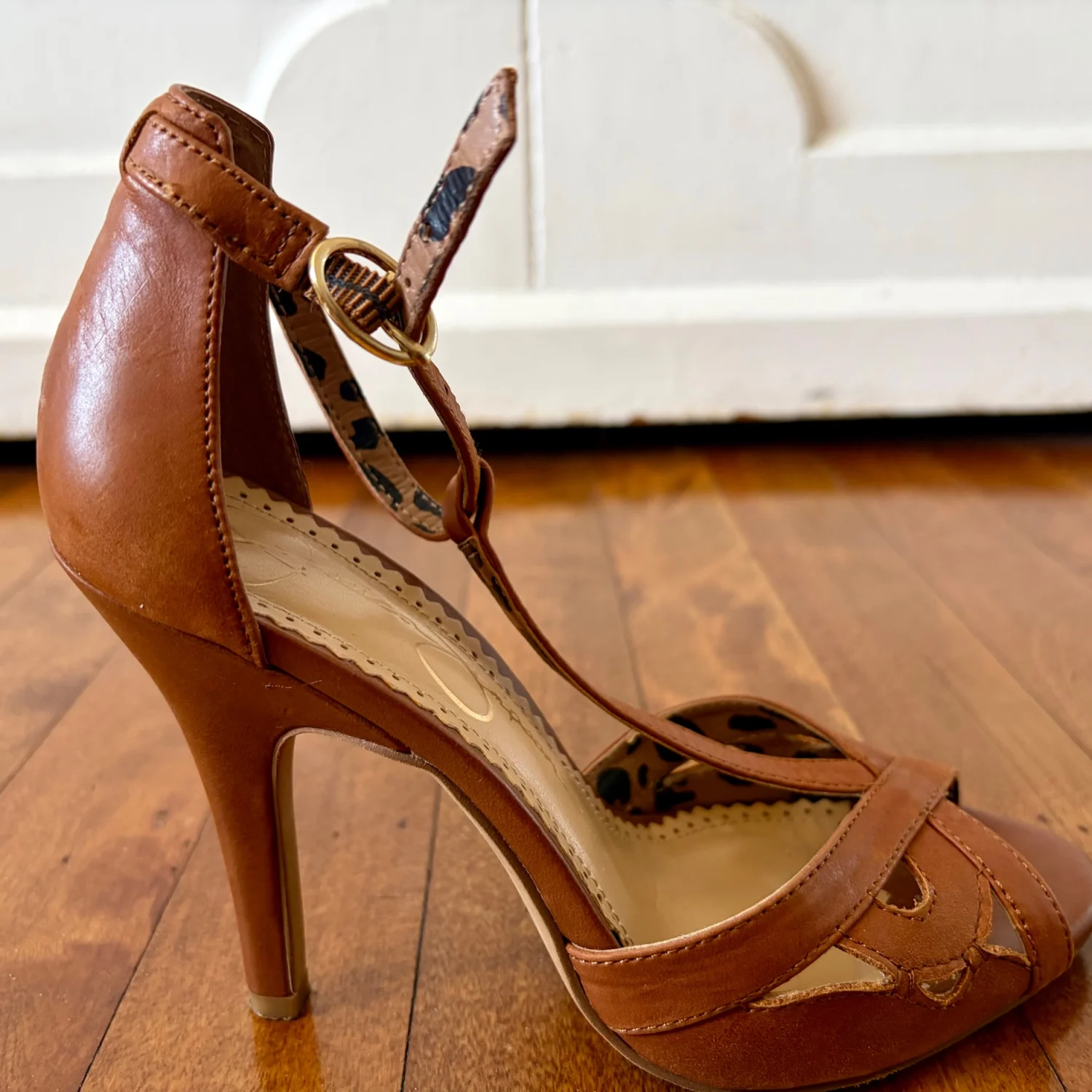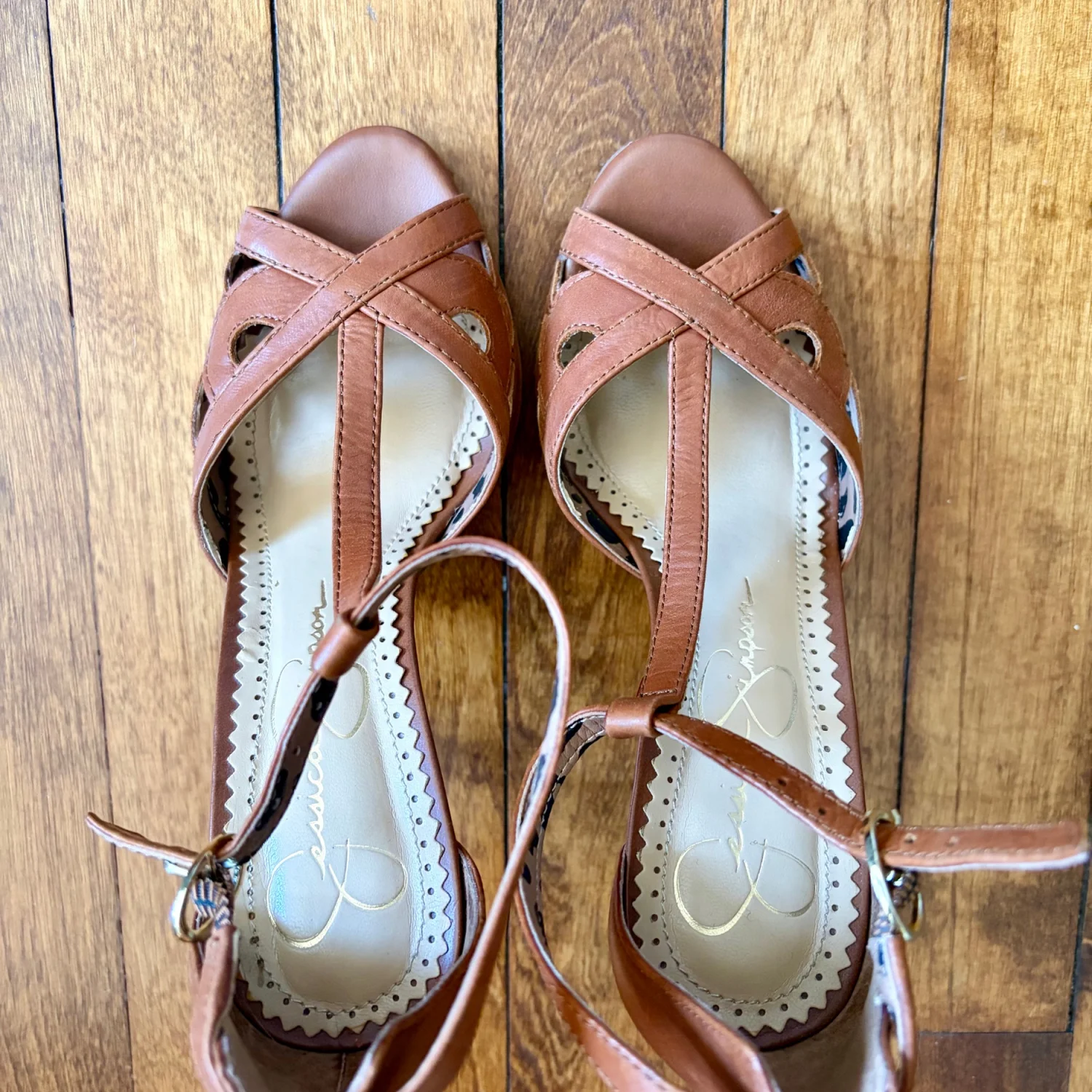 Jessica Simpson Jeraldine Brown Leather Open Toe Heels Women’s Size 5.5 M