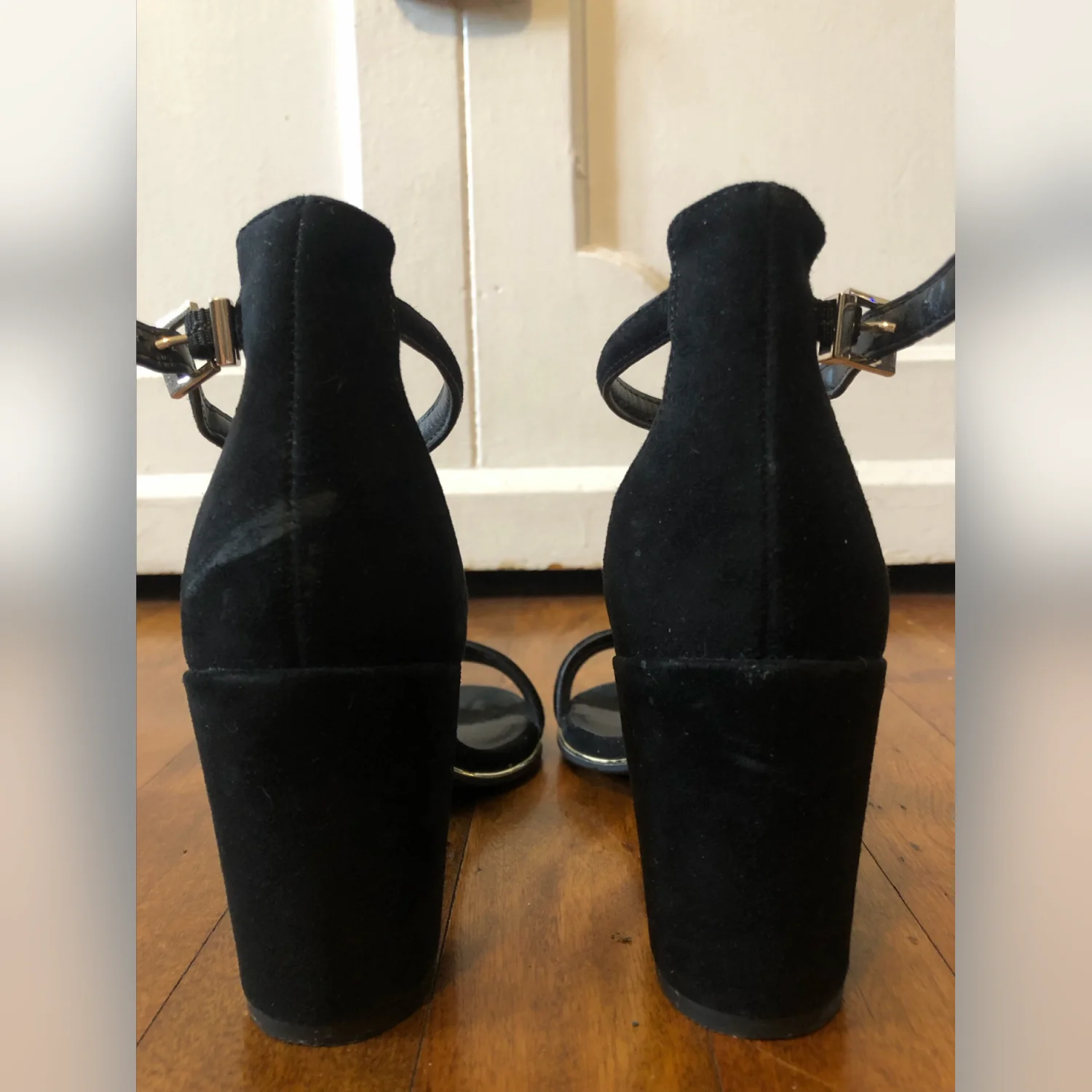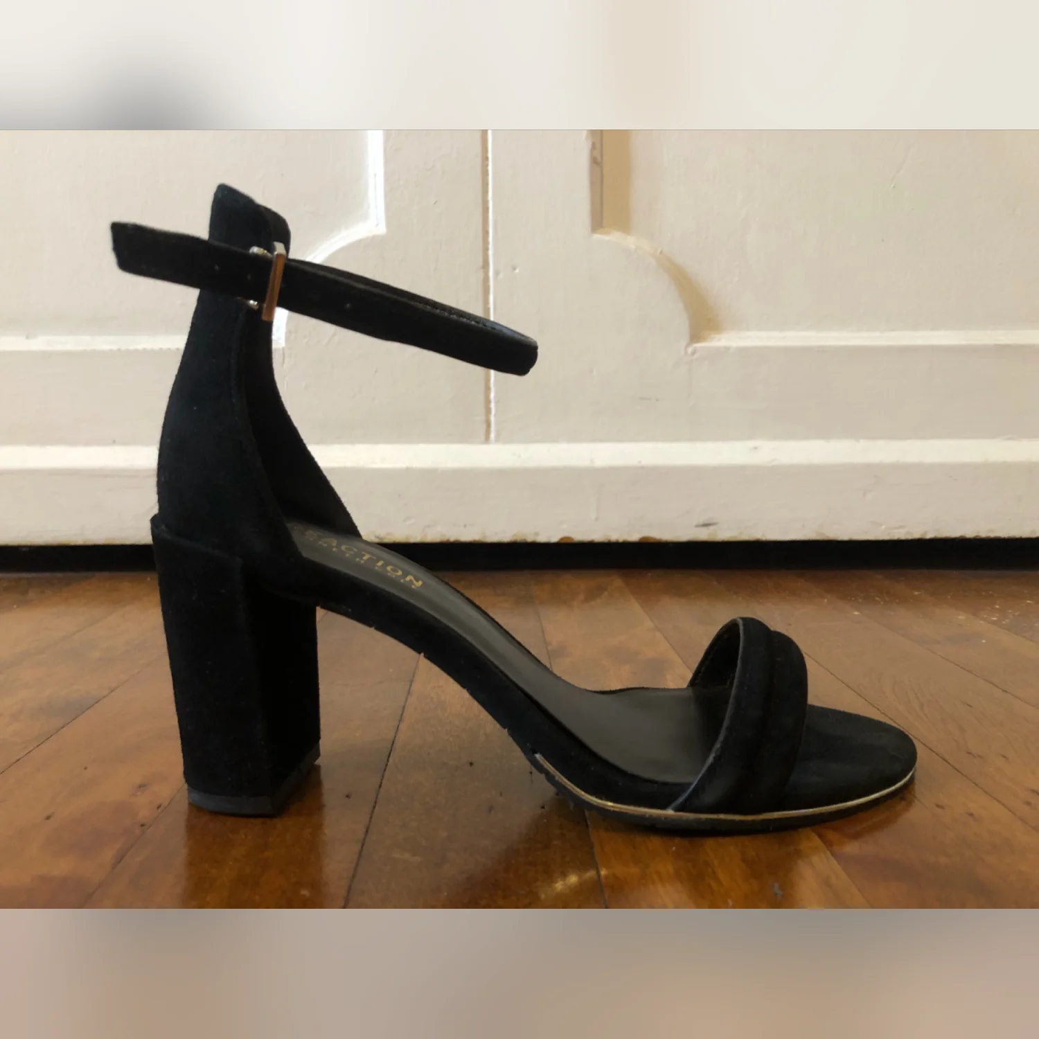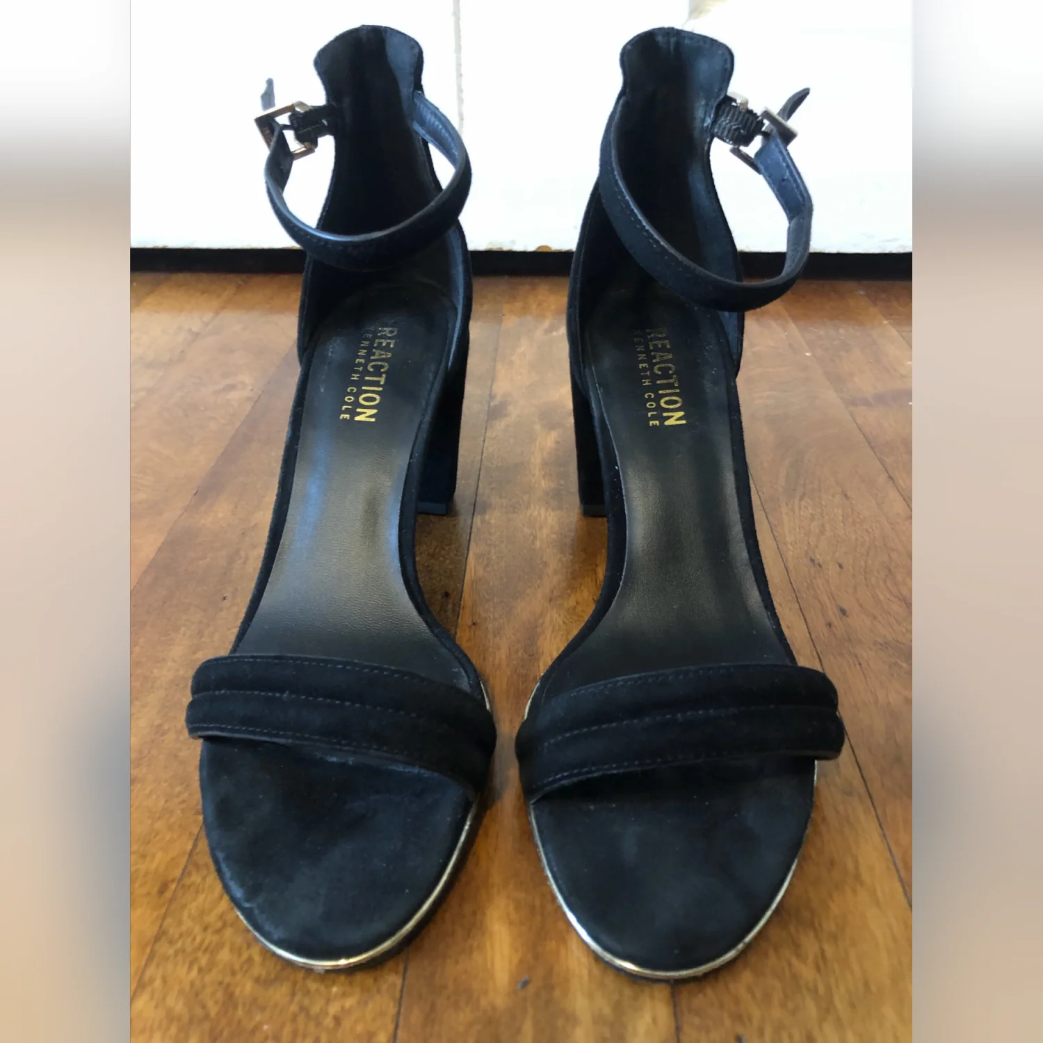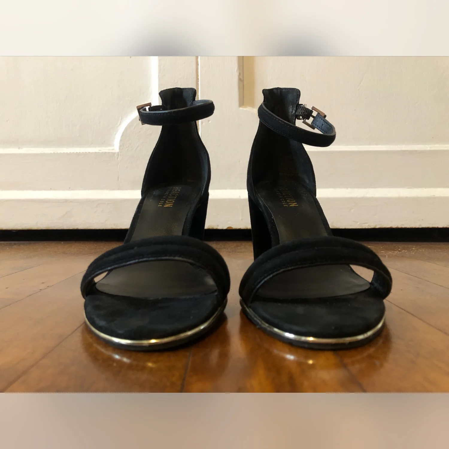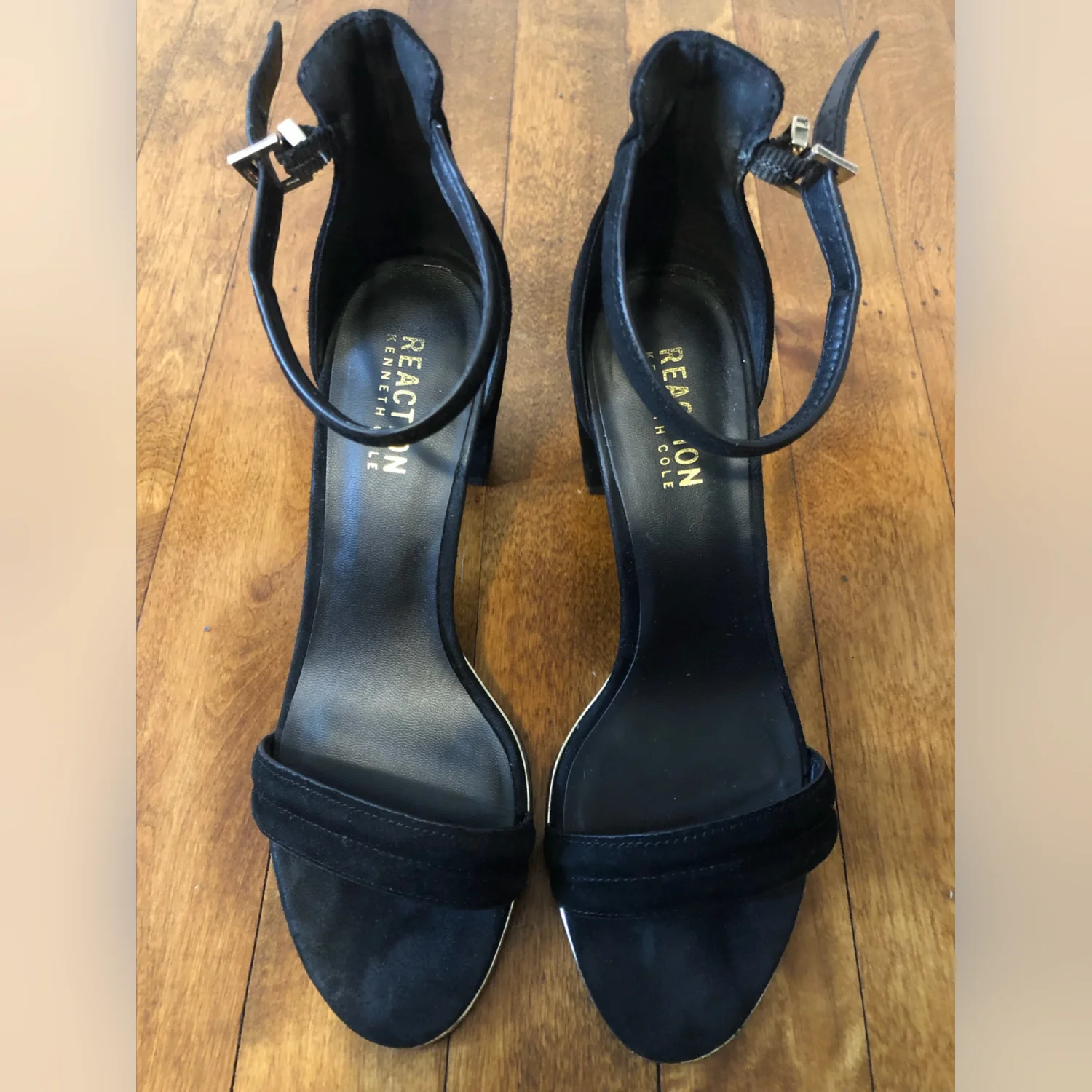 Kenneth Cole Women’s Lolita Heeled Black Suede Open Toe Ankle Strap Chunky Heels Size 6