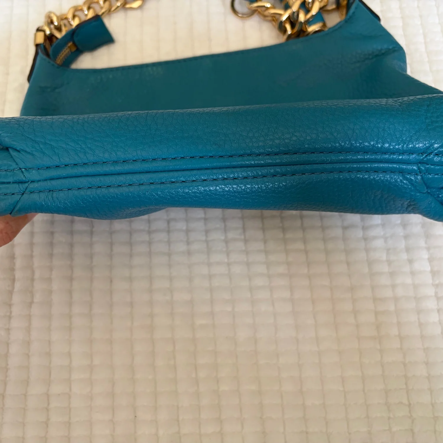 Michael Kors Teal Leather Shoulder Bag With Chain Strap and Gold Hardware