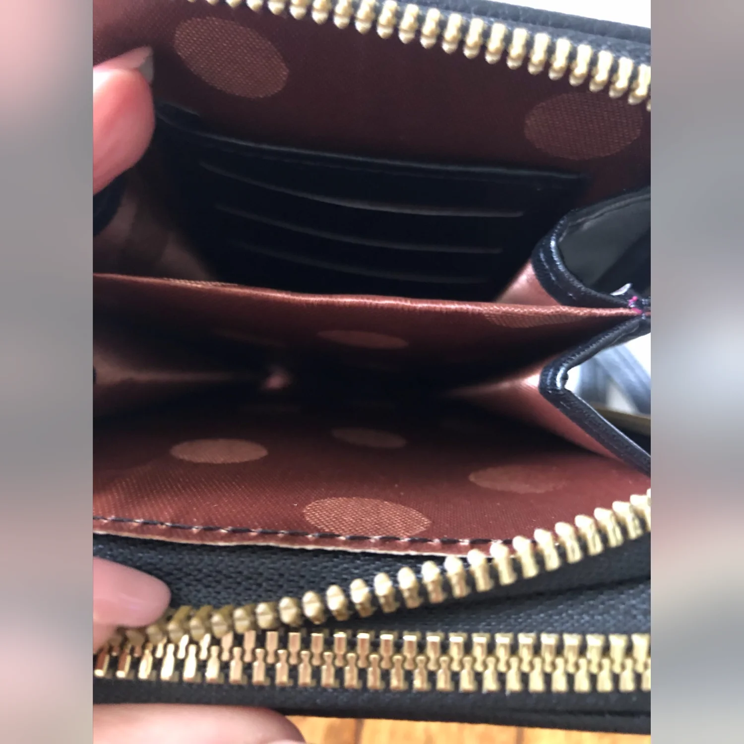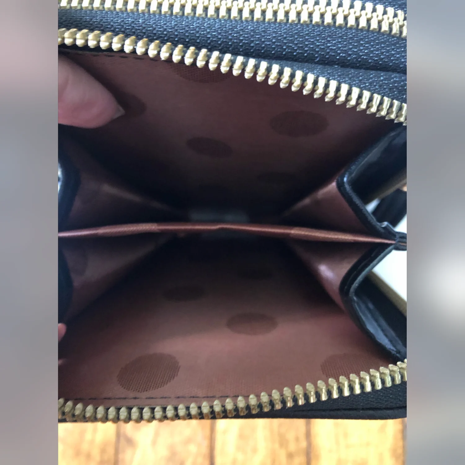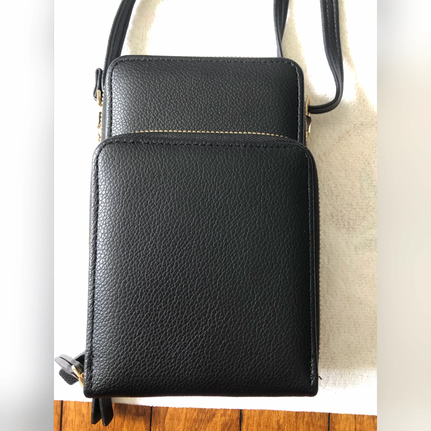 This small black leather shoulder bag features multiple compartments, making it ideal for organizing essentials while on the go. The black exterior and matching leather handle add a sleek and stylish touch, while the brown lining adds a subtle contrast. The compact size of the bag makes it perfect for carrying daily essentials, and the shoulder strap allows for easy and comfortable carrying. Perfect for women who appreciate both fashion and functionality in their handbag choice. Gently Used. In Excellent Condition. See Photos. All Sales Are Final.