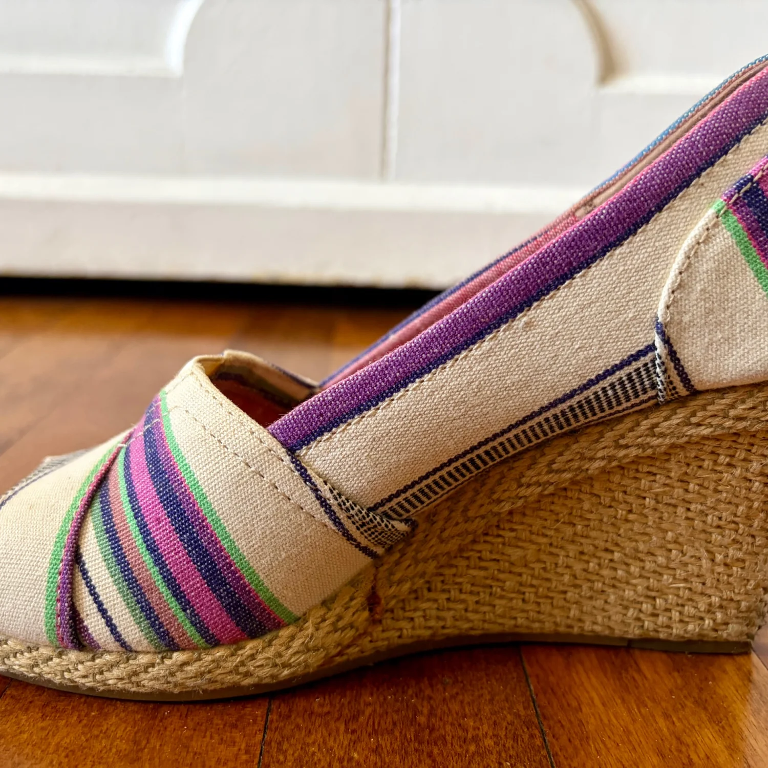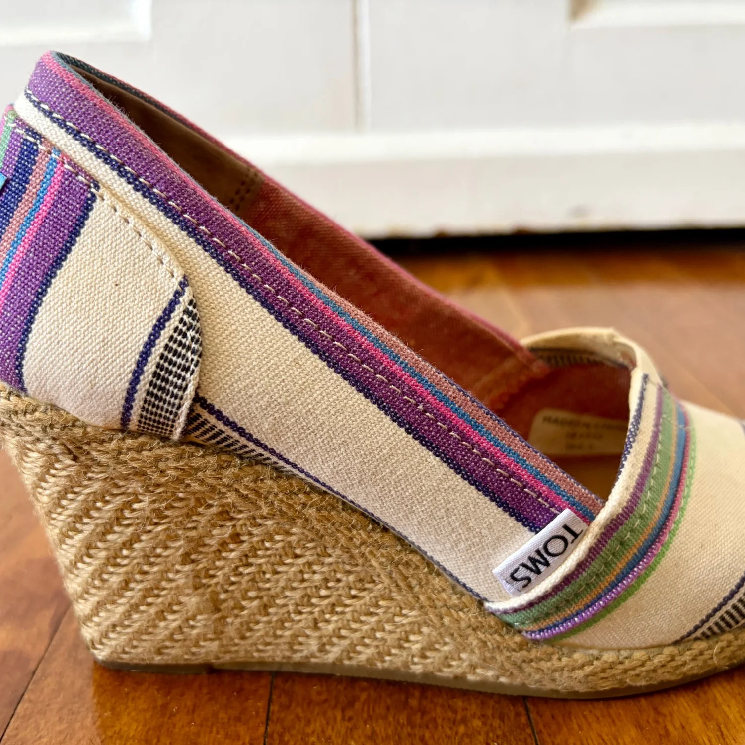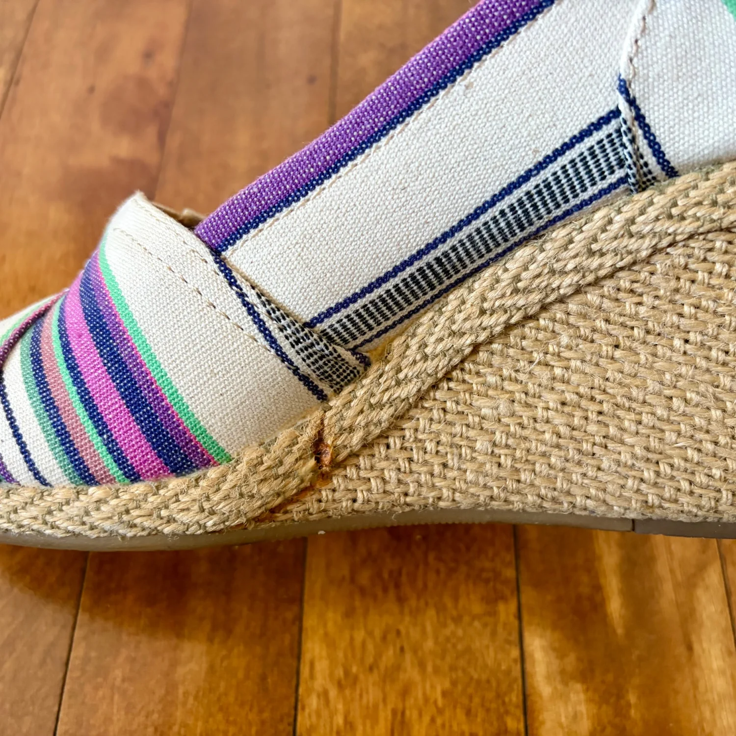 TOMS Multicolor Wedge Village Stripe Peep Toe Women Size W5.5