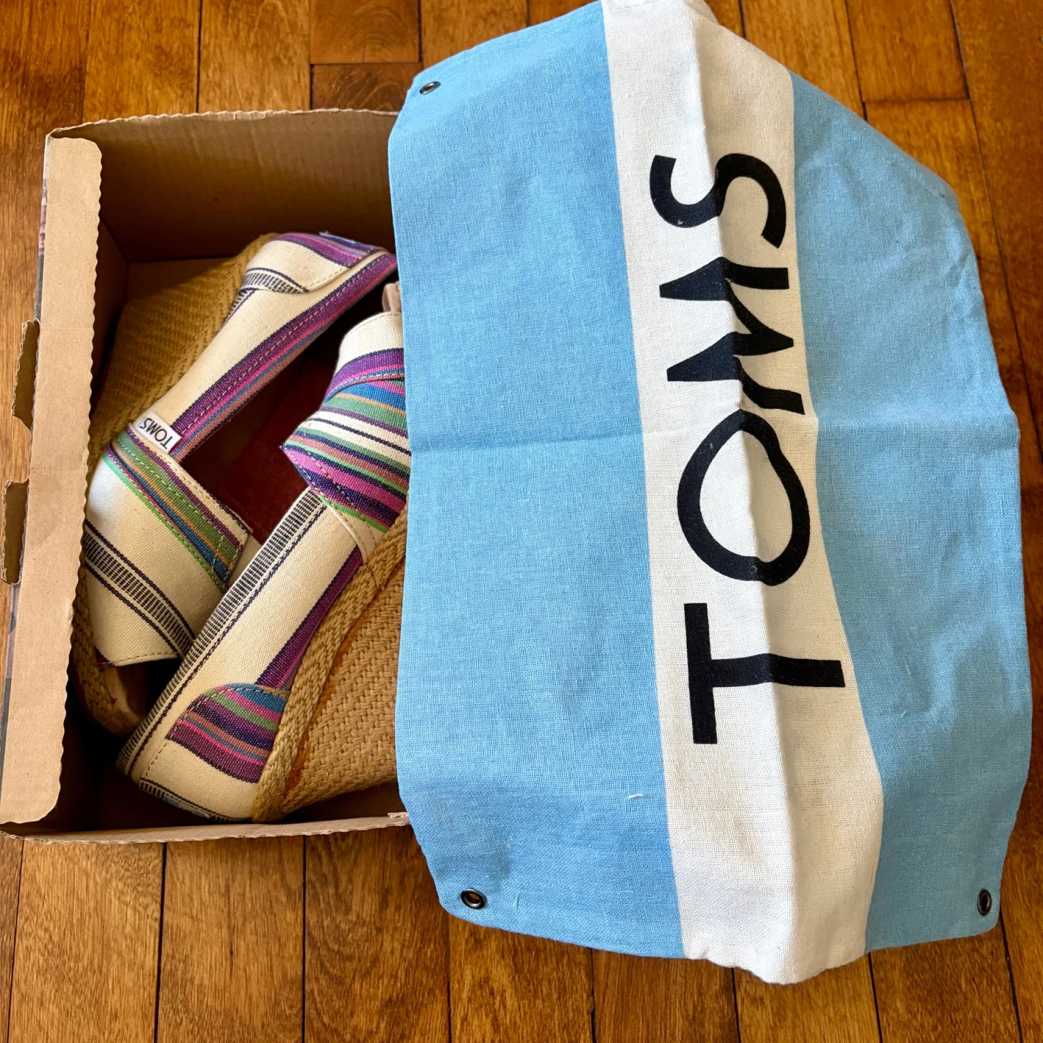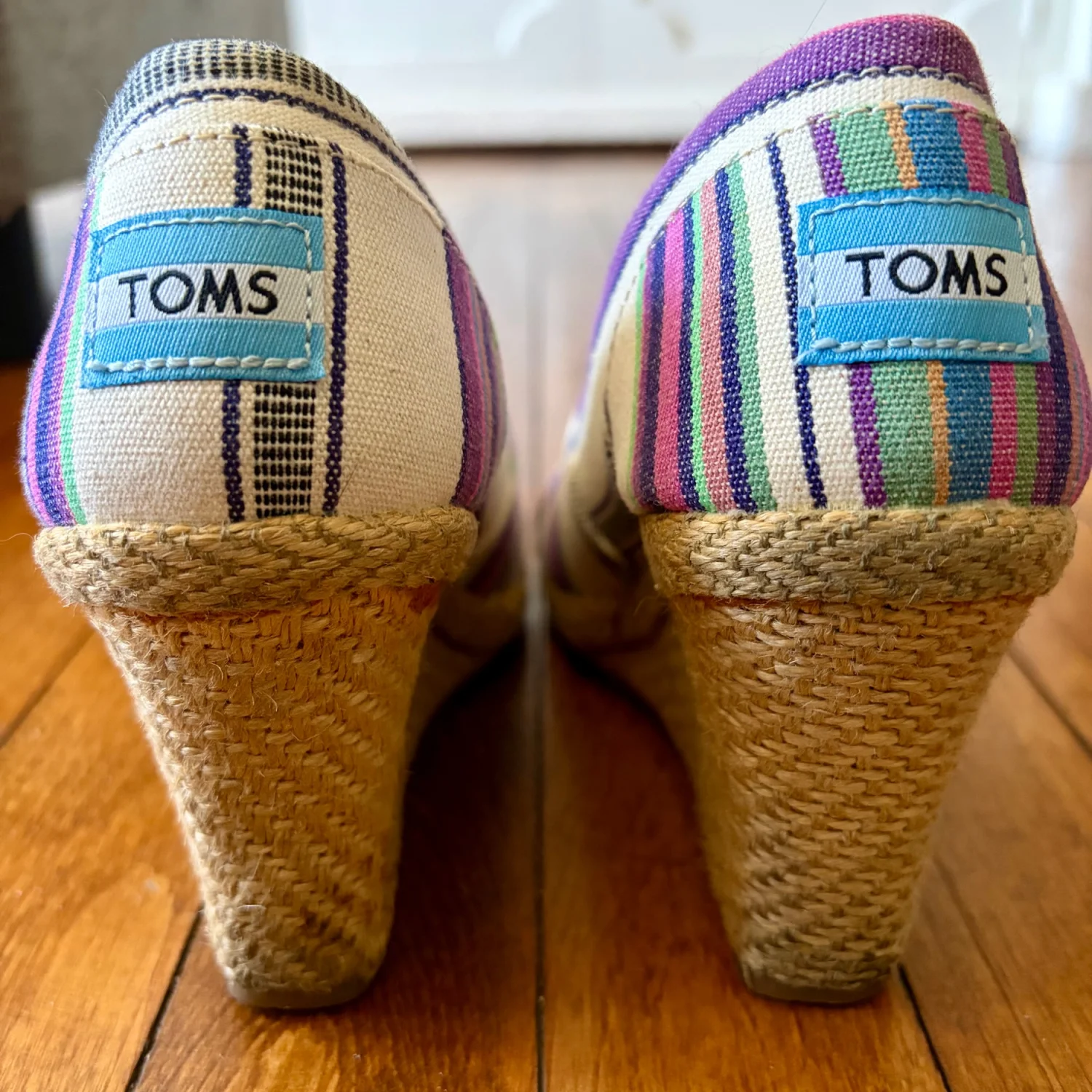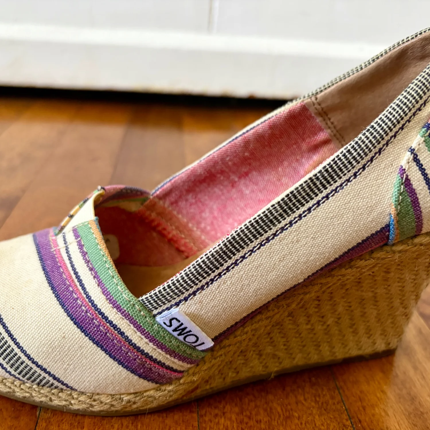TOMS Multicolor Wedge Village Stripe Peep Toe Women Size W5.5
