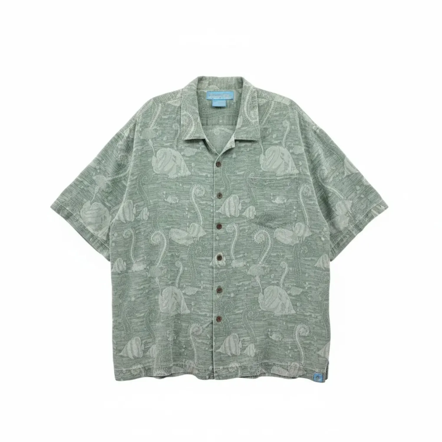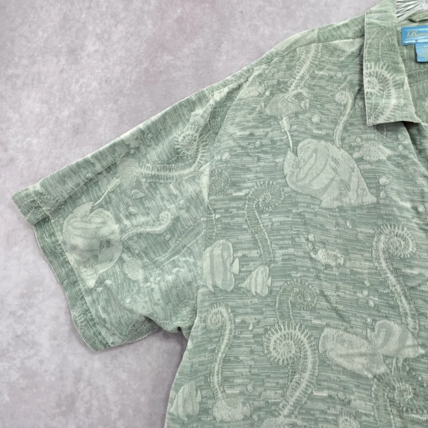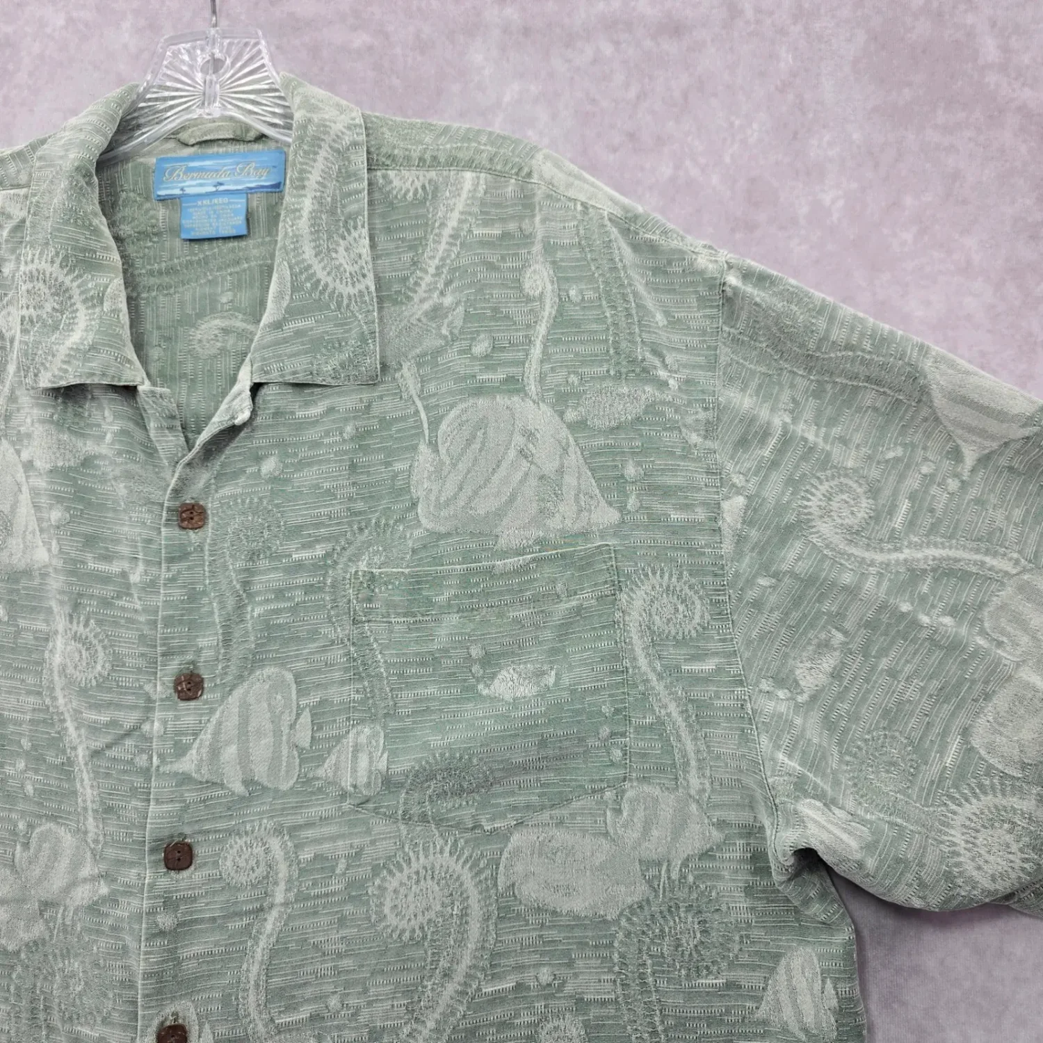 Bermuda Bay Green Tropical Surf Island Vintage Cotton Relax Hawaiian Shirt XXL