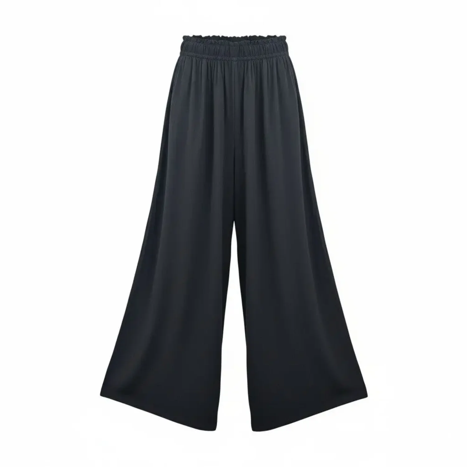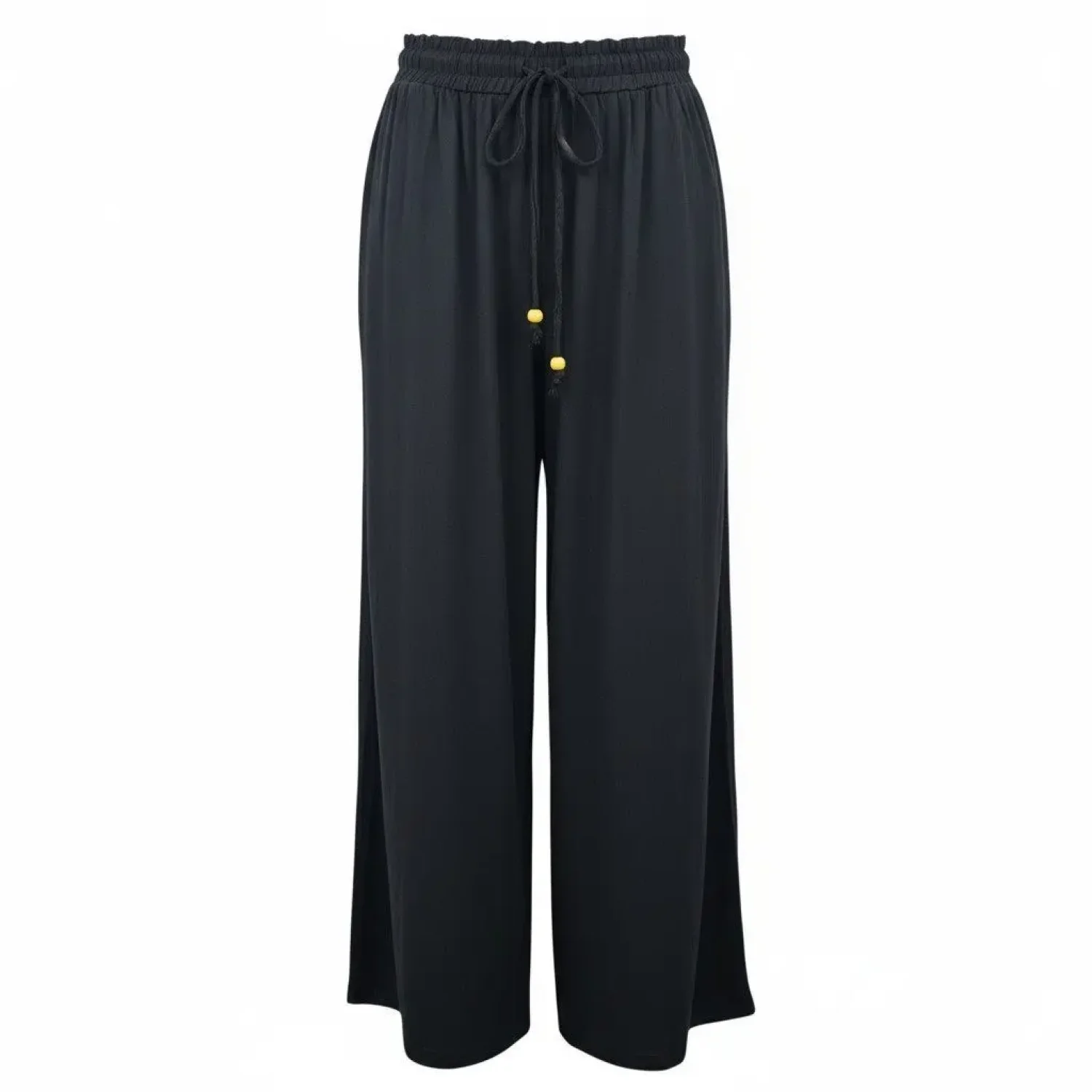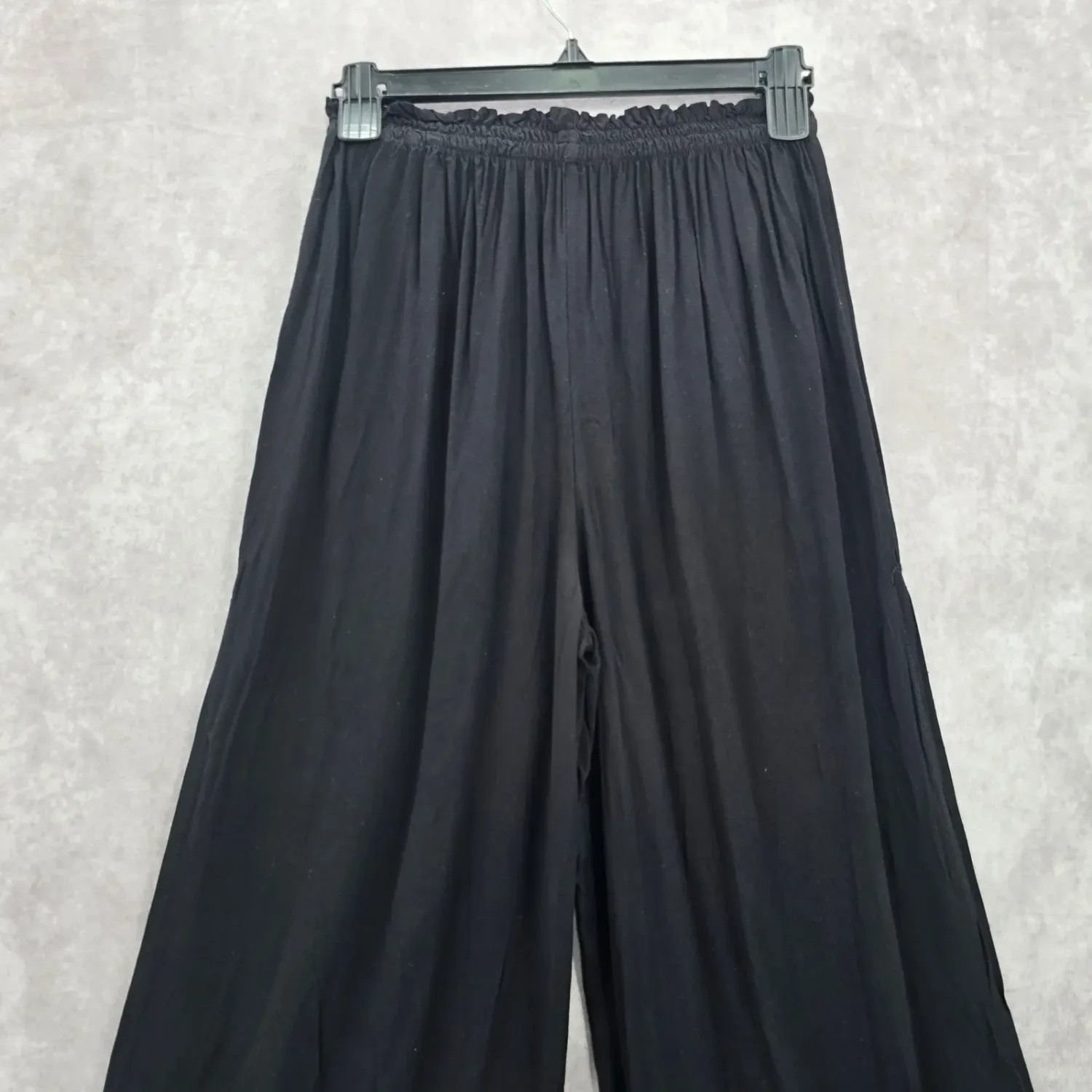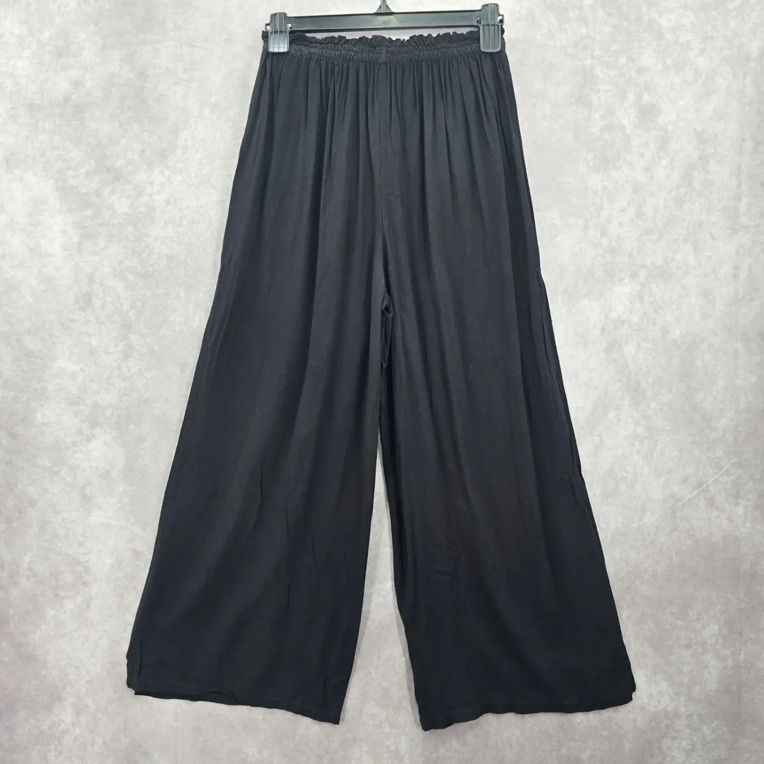 Black Wide Split Flowy Straight Beach Vacation Lounge 90s Pullon Boho Pants XS