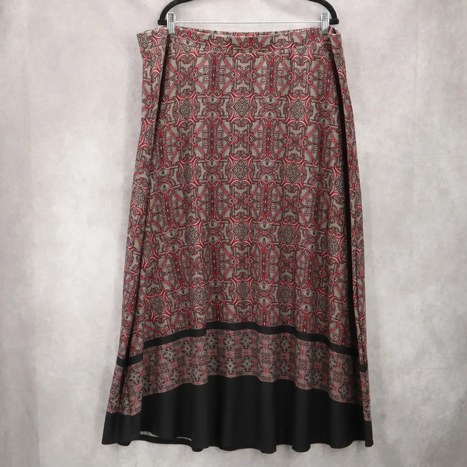 Cato Gray Floral Paisley Maxi Long Boho Flare Cottagecore Plus Skirt 22/24W