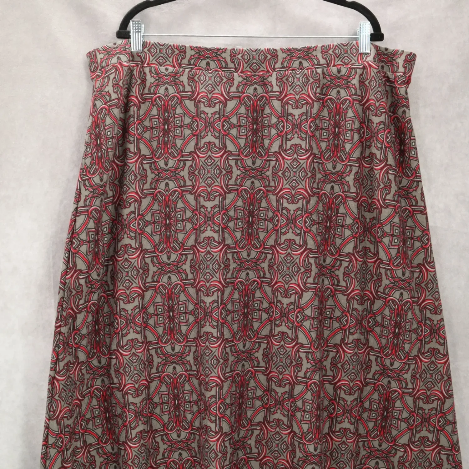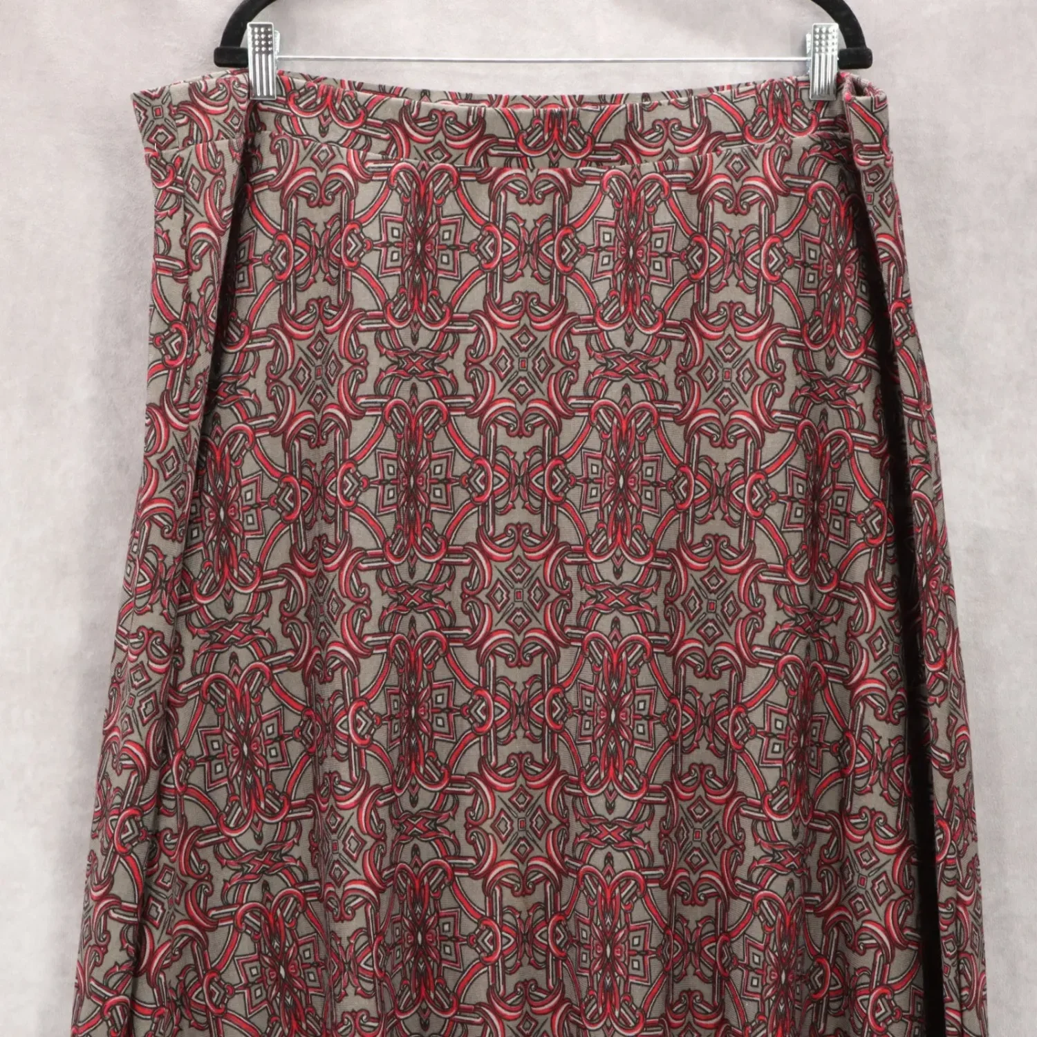 Cato Gray Floral Paisley Maxi Long Boho Flare Cottagecore Plus Skirt 22/24W Waist: 22" Length: 44-45" 95% Polyester 5% Spandex 100% Polyester Lining Maxi Elastic Waist Stretch Flare SKU: B23