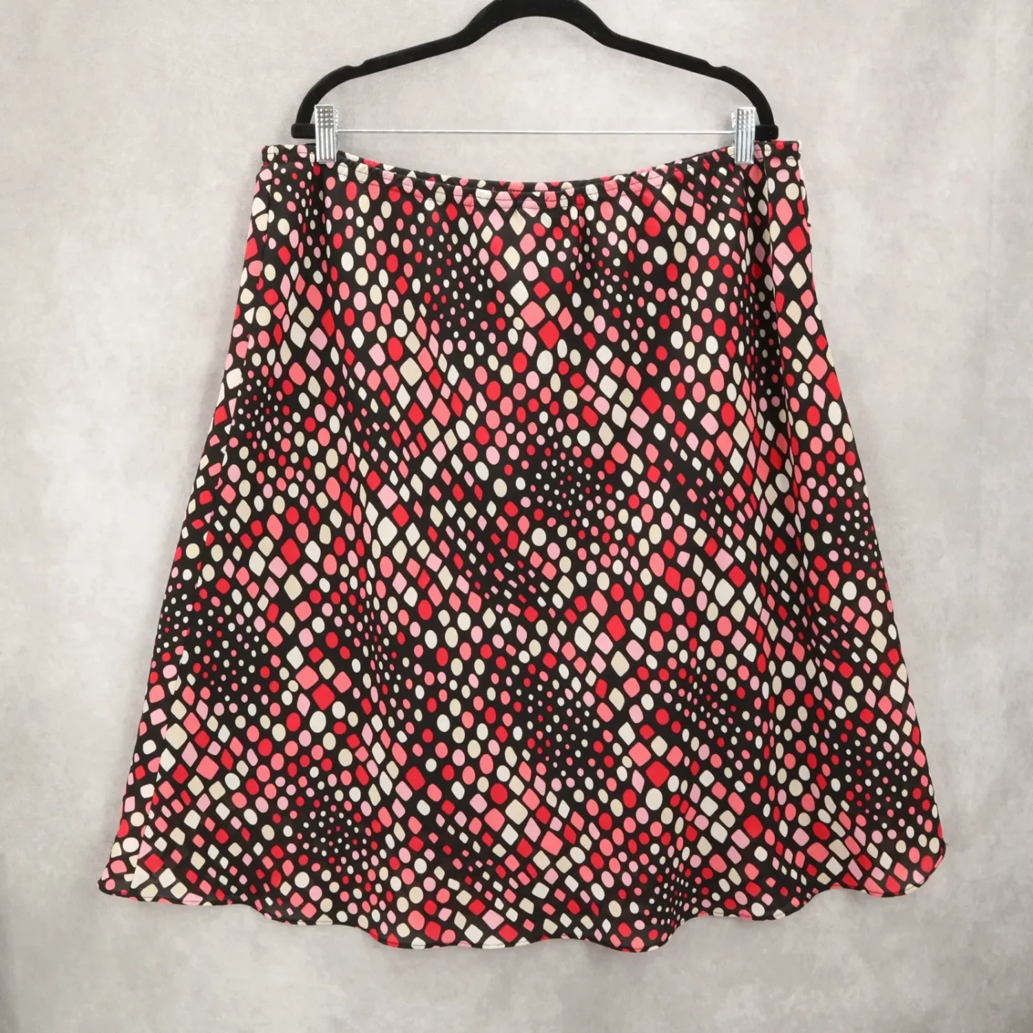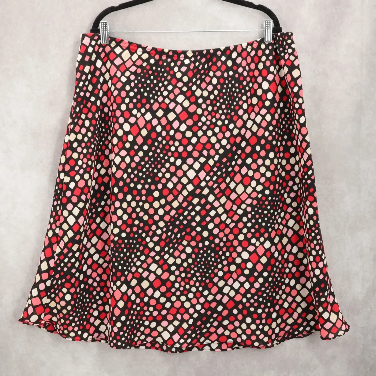 George Polka Dot Pull On Retro Chic Flowy Flare Festival Swing Skirt Plus 22/24W Waist: 20" Length: 29" 100% Polyester Lined Elastic Waist Knee Length SKU: B23