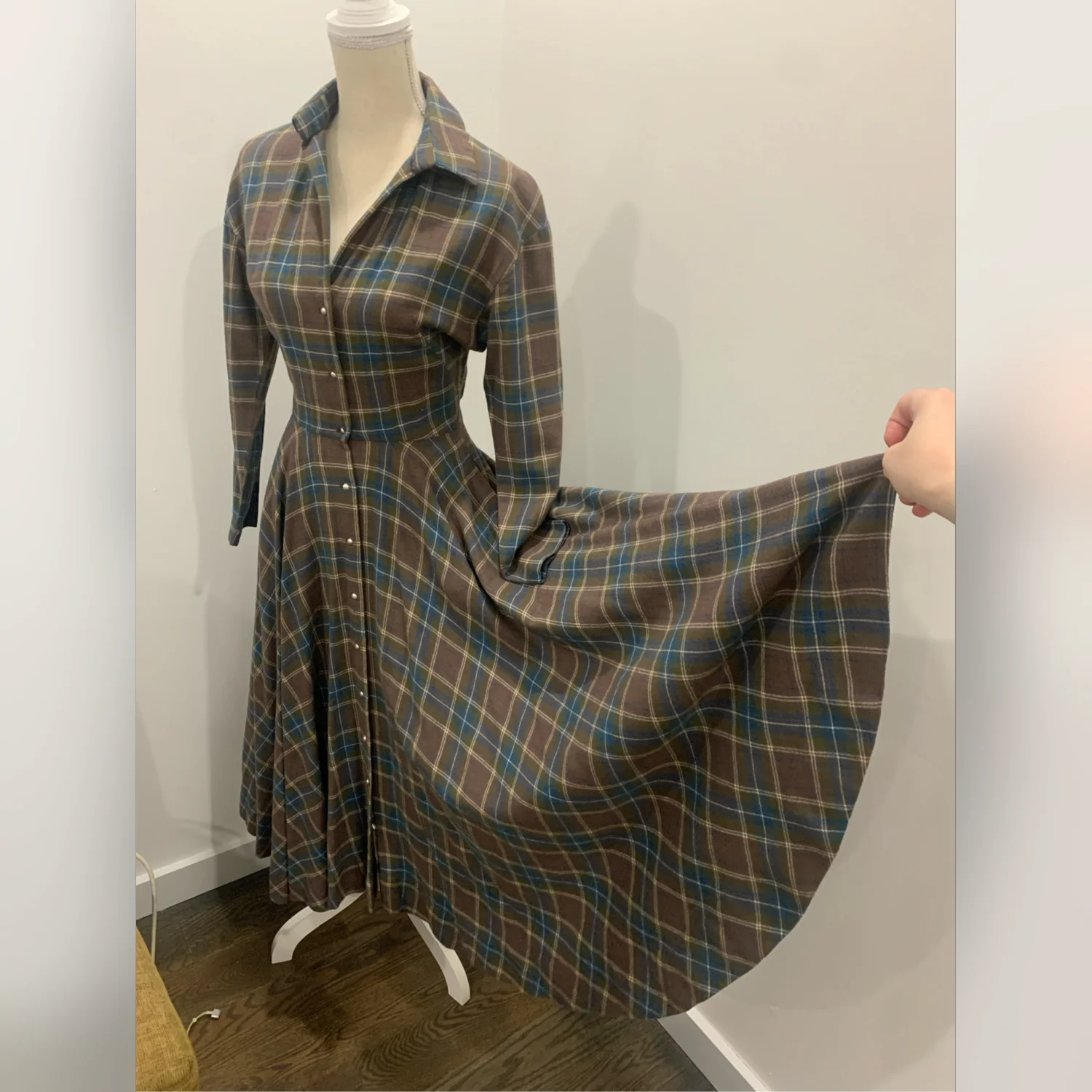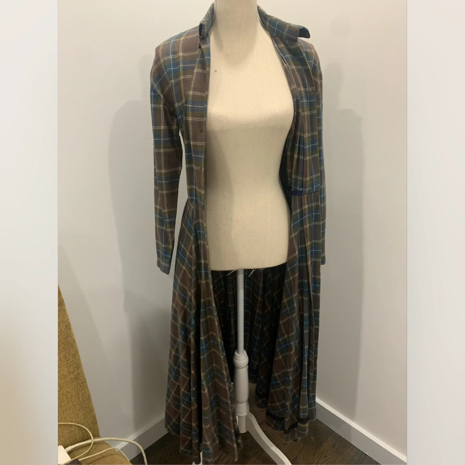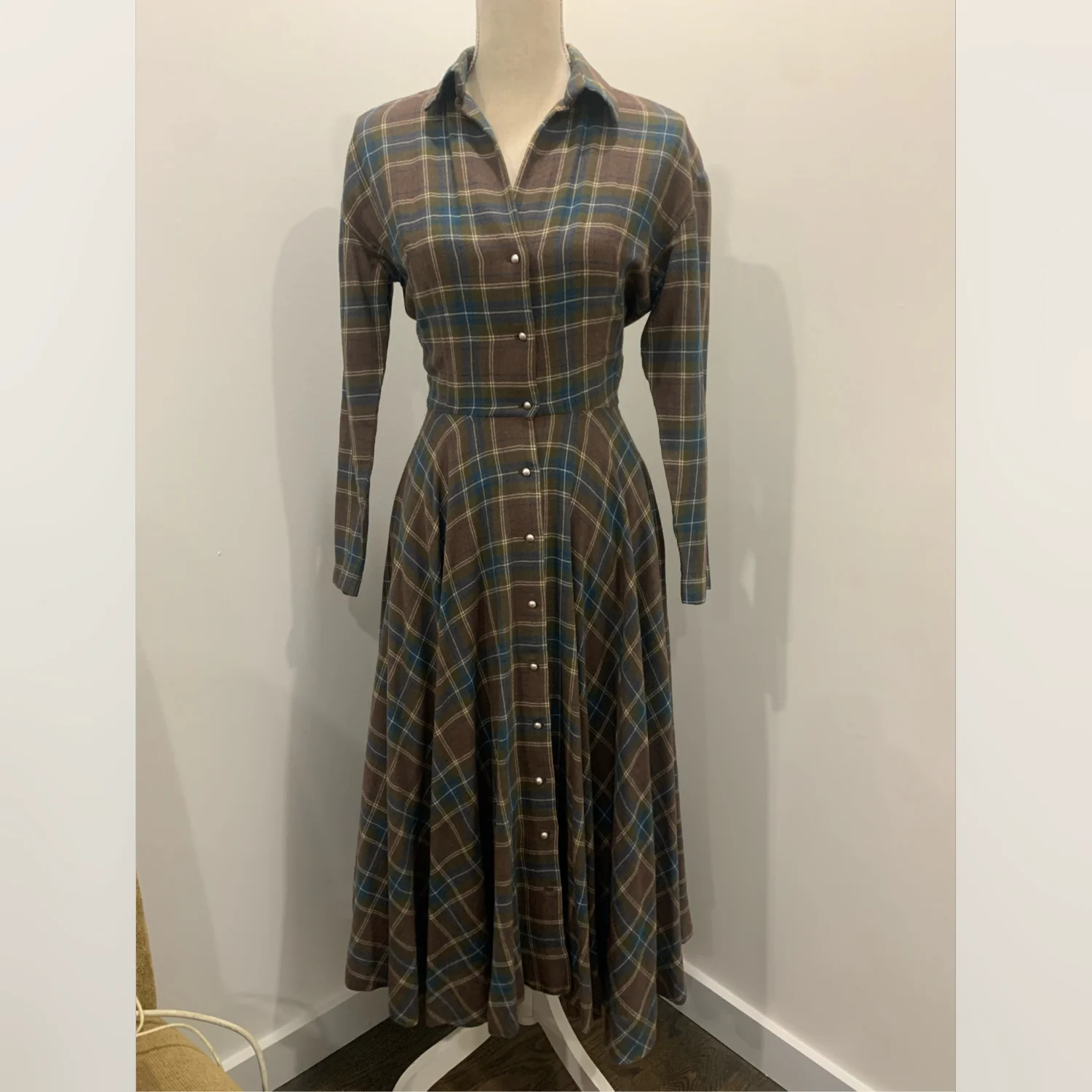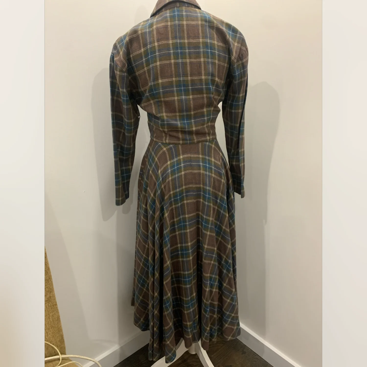 This is a one of a kind Vintage Plaid Dress! It does not have the labels on there so dont really know what brand, content or size it is. I would say it fits best for XS or S sizes. Cut on a bias, the workmanship is impeccable. If you purchase the dress at the cost provided you can have the belt for free.