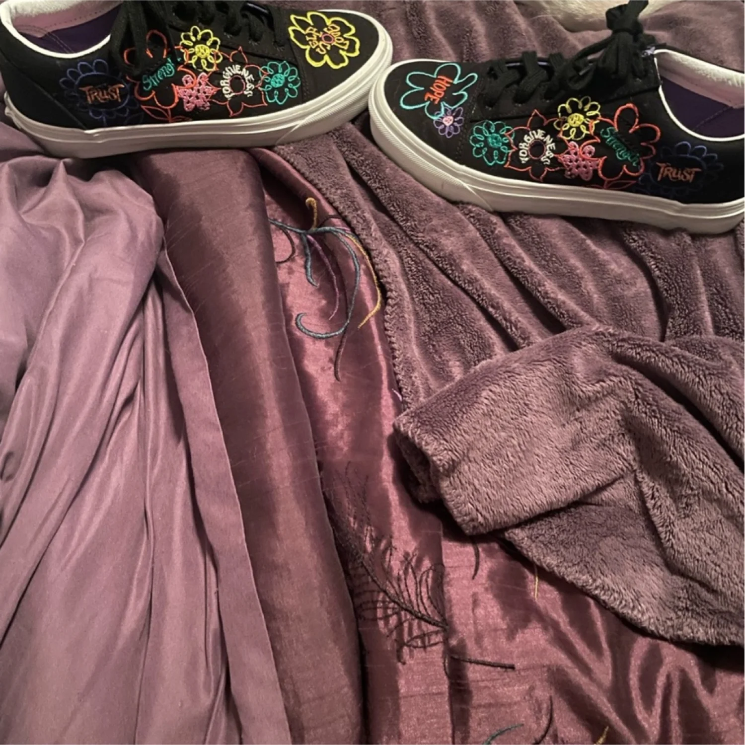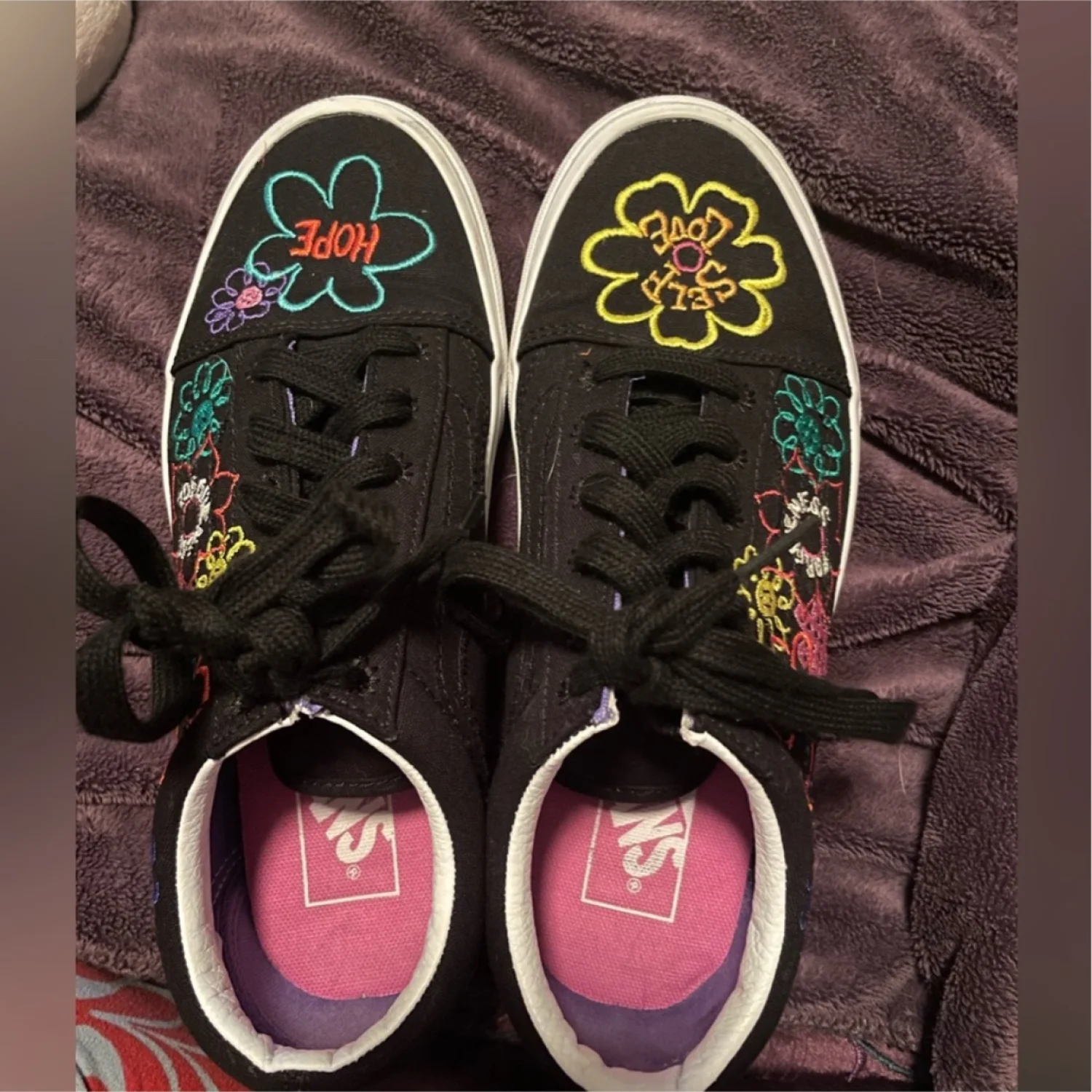 Vans black with floral embroidery shoes