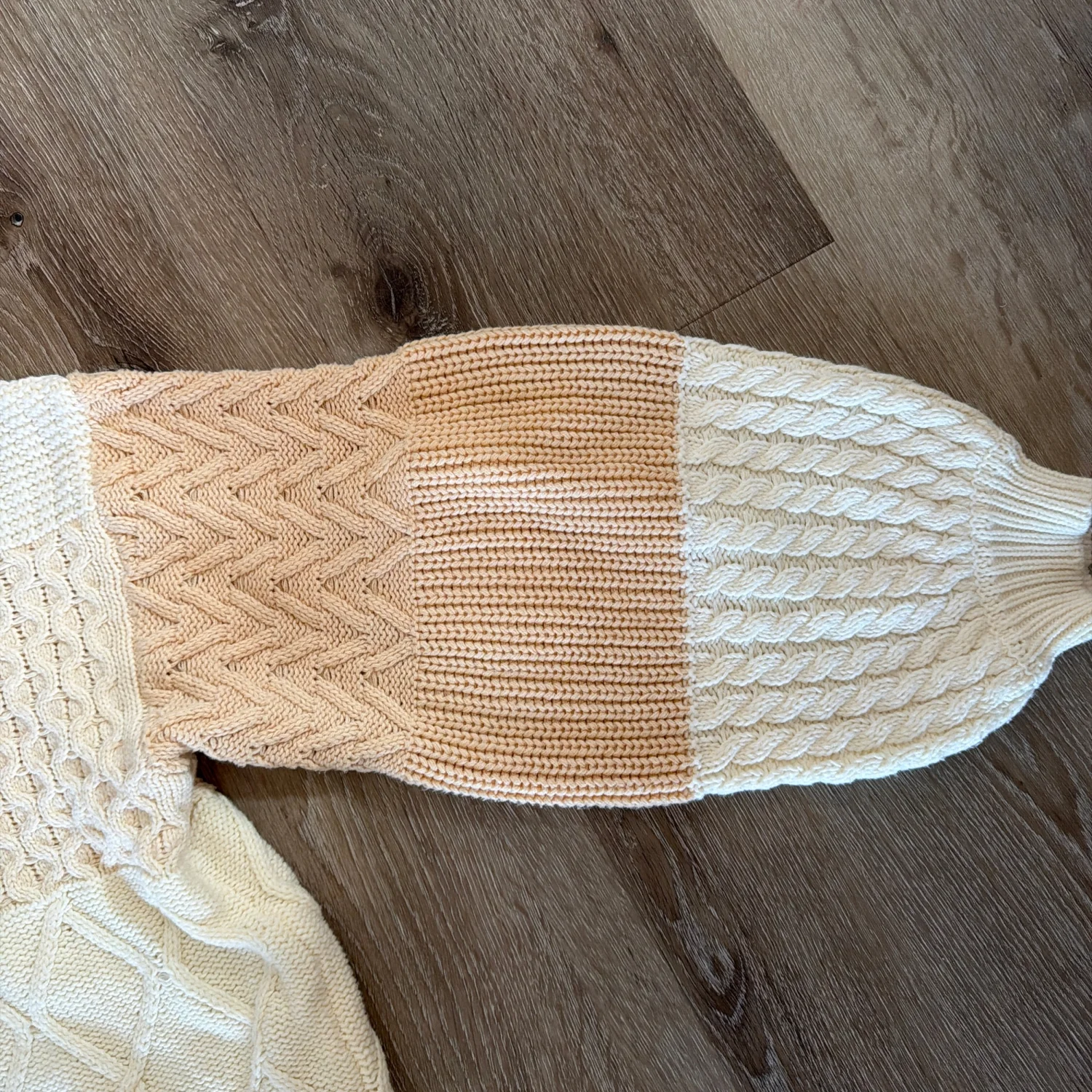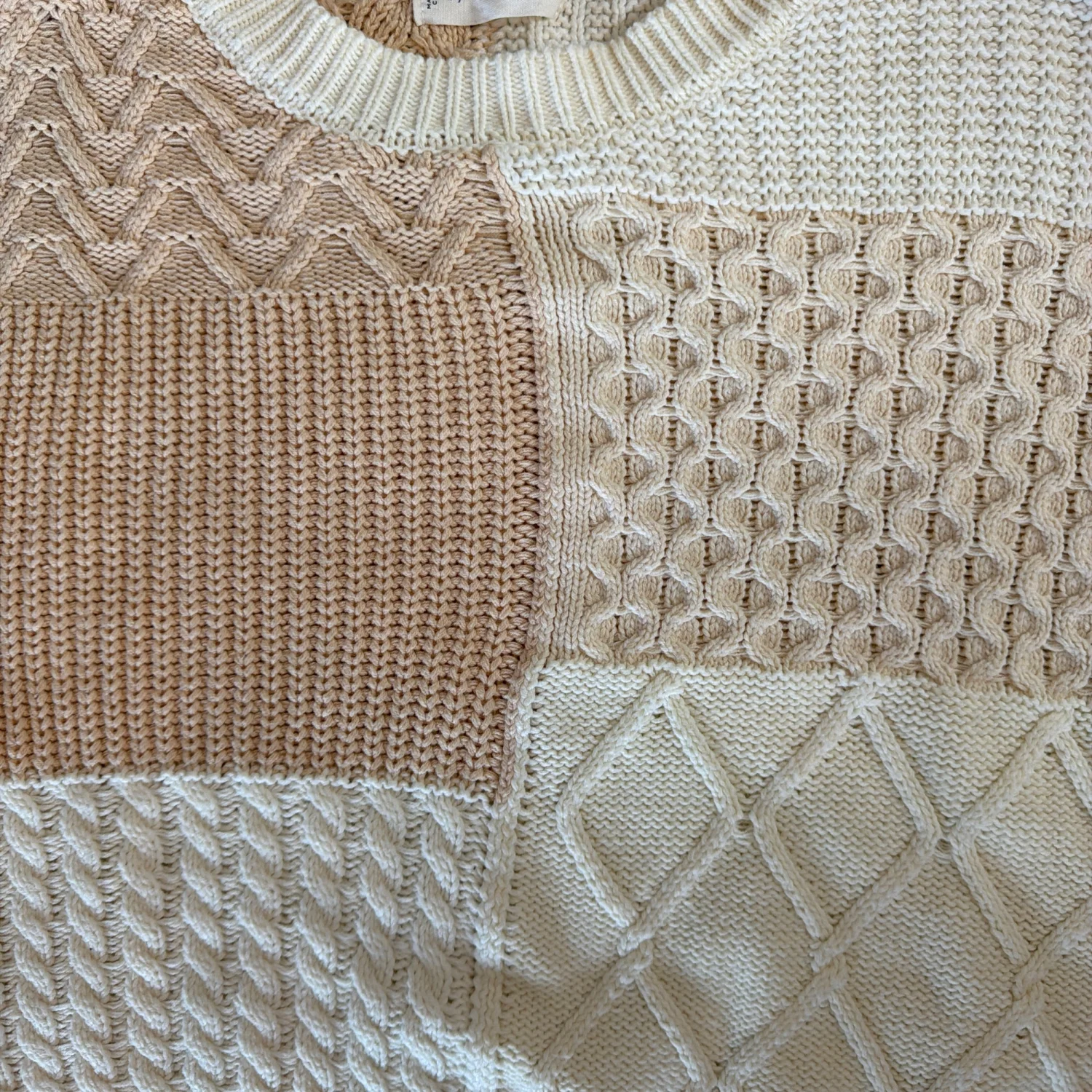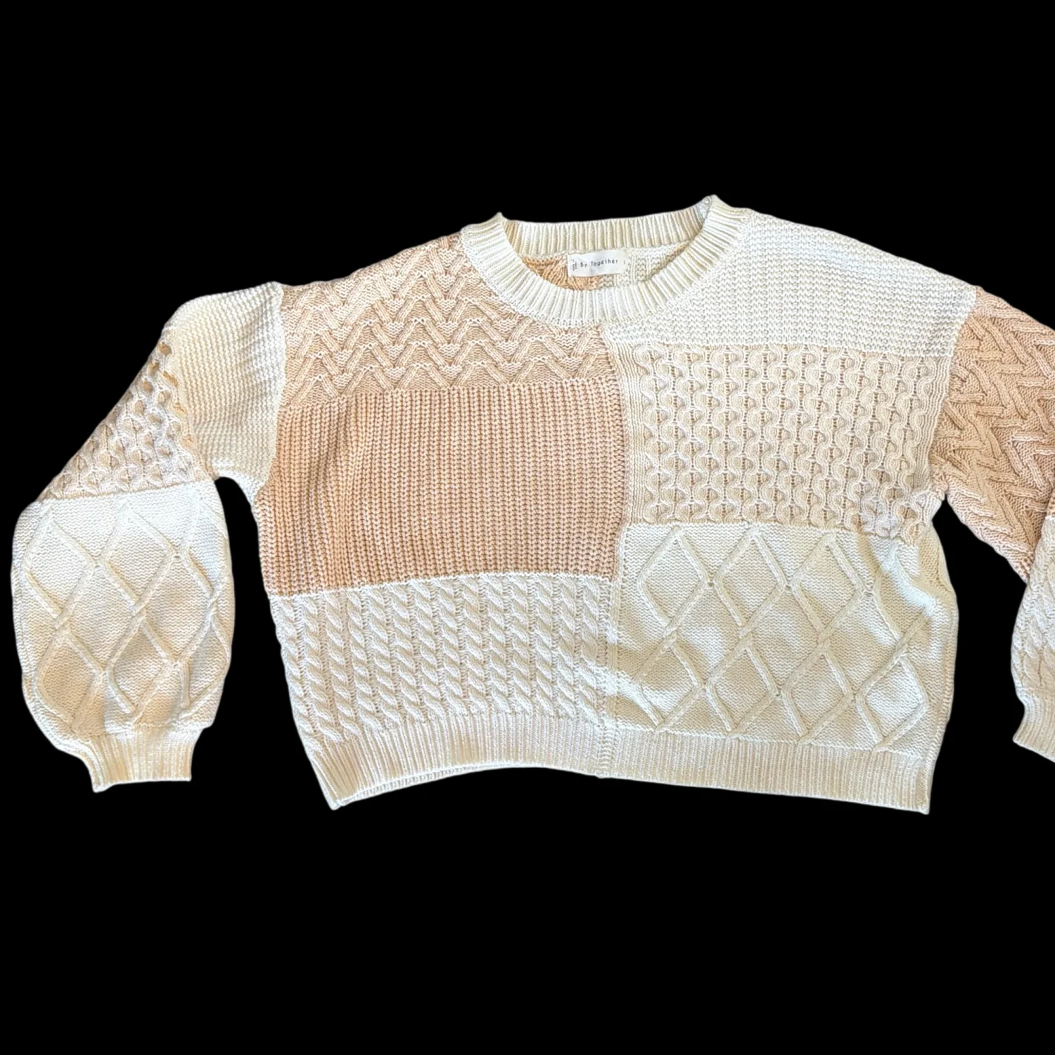 Cropped super cozy sweater, different knit patterns, full size sleeve