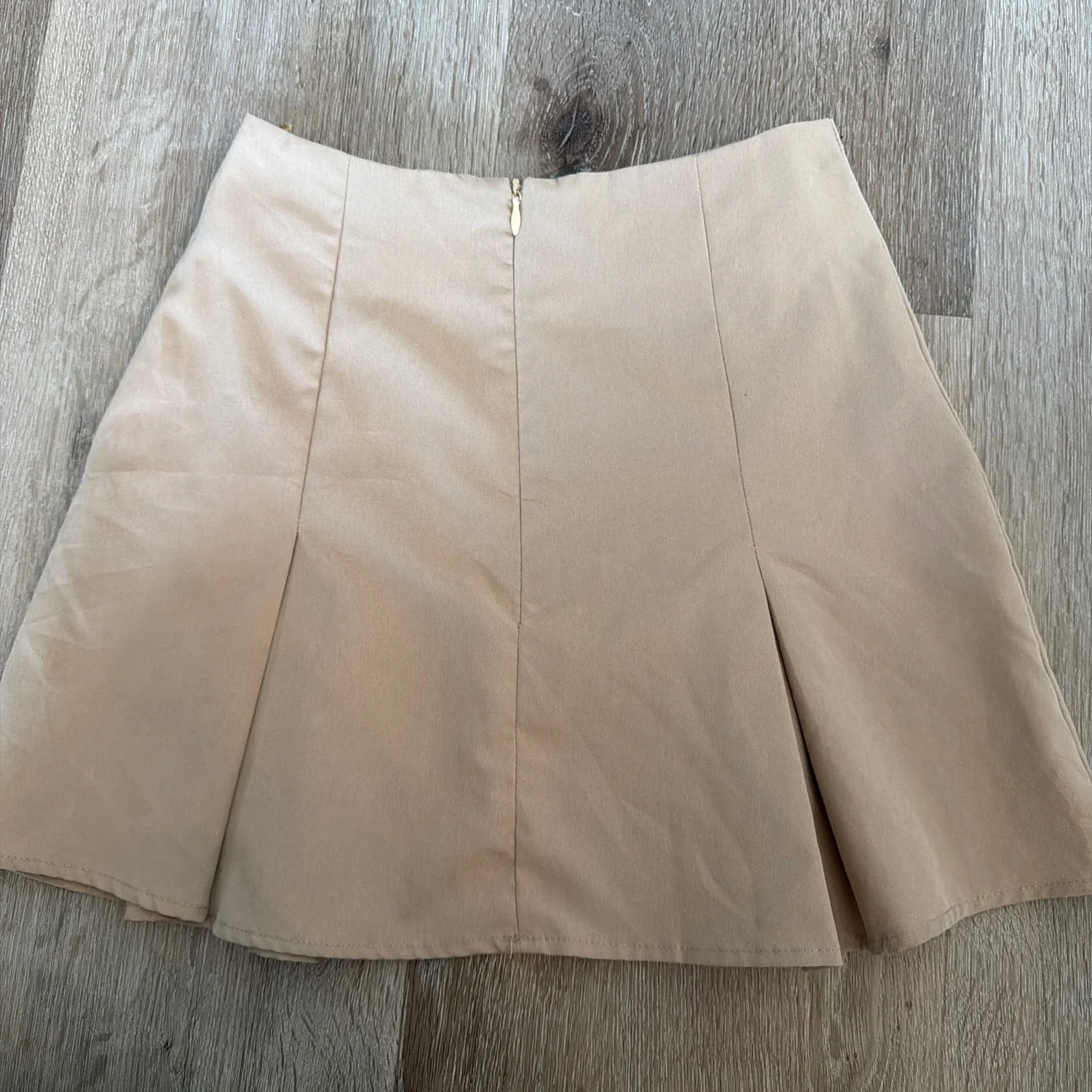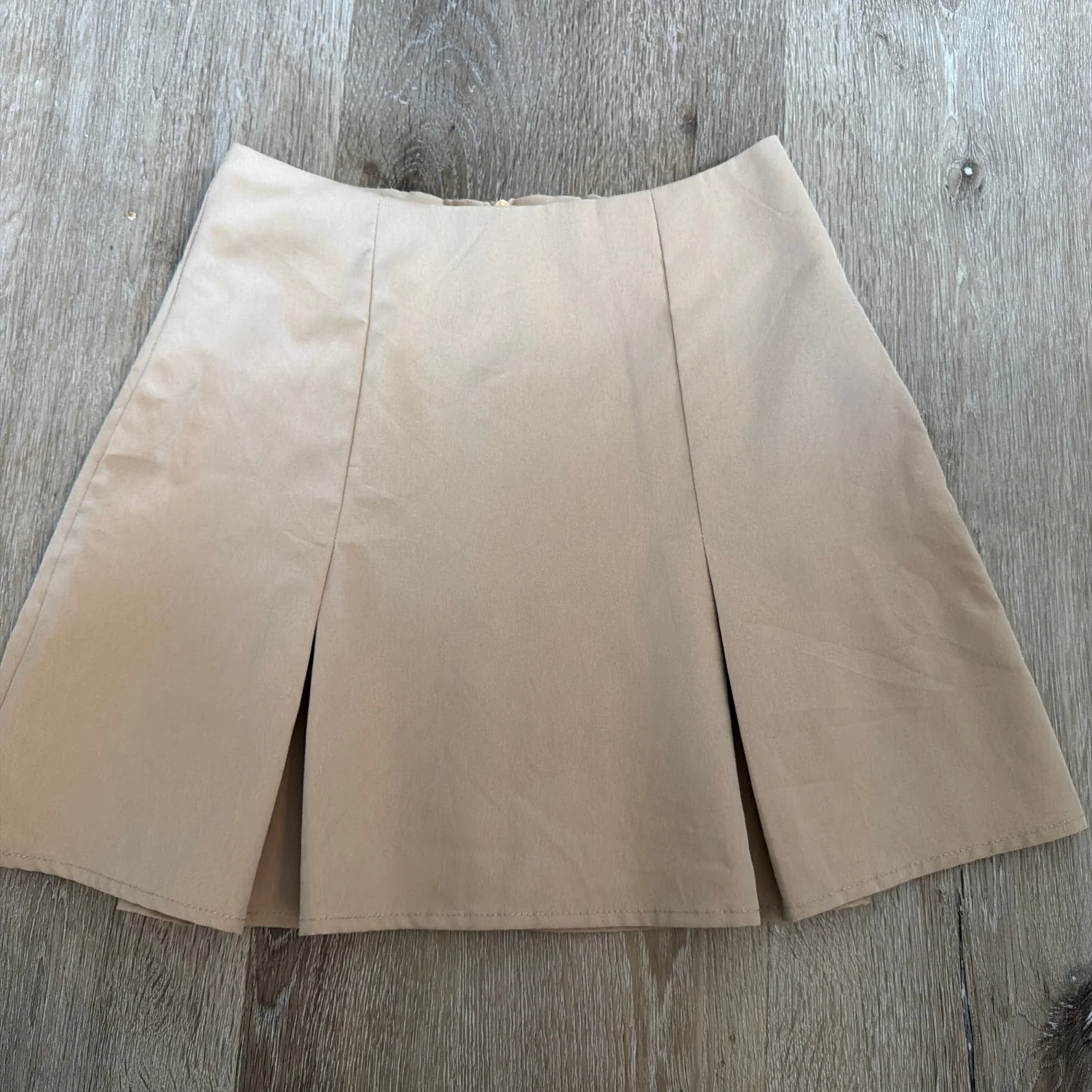 Khaki pleated mid waist back zip mini skirt never worn, bought for school, 2 tight IT IS XXS (will not let me put that)