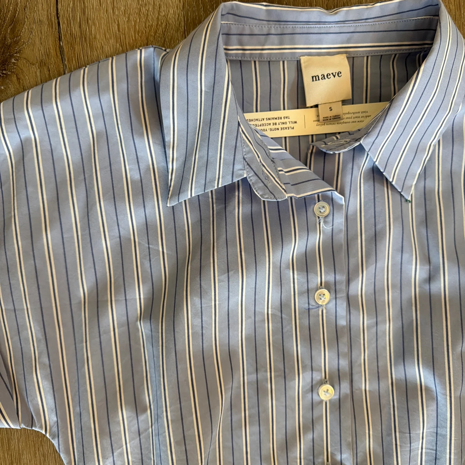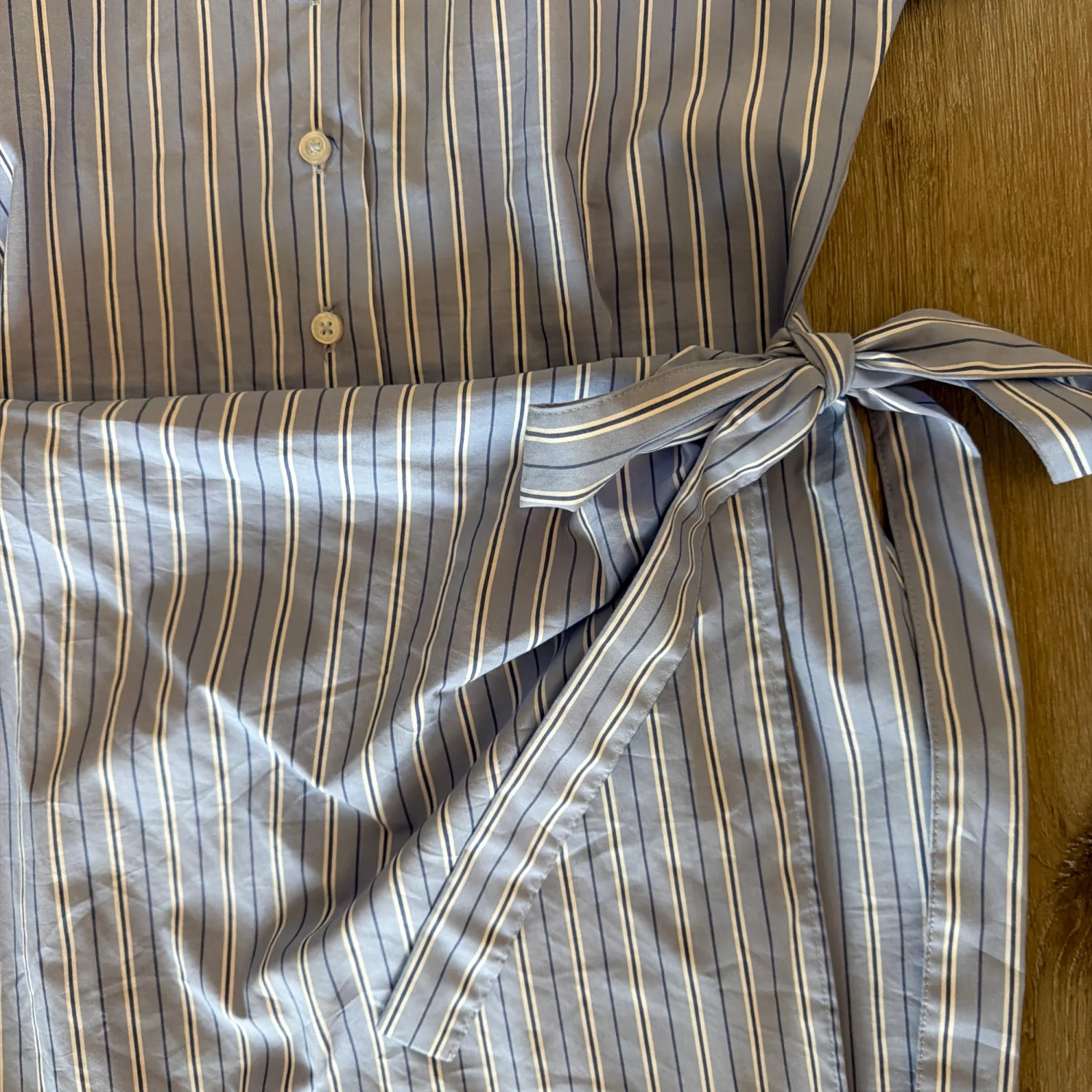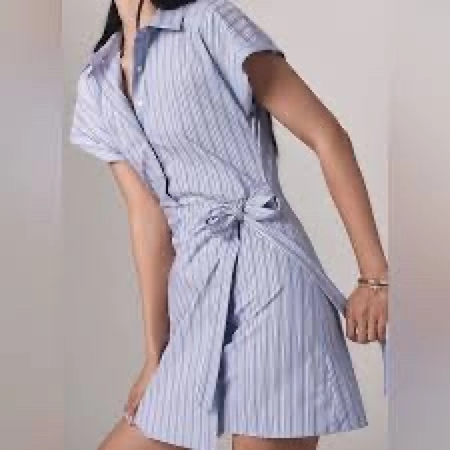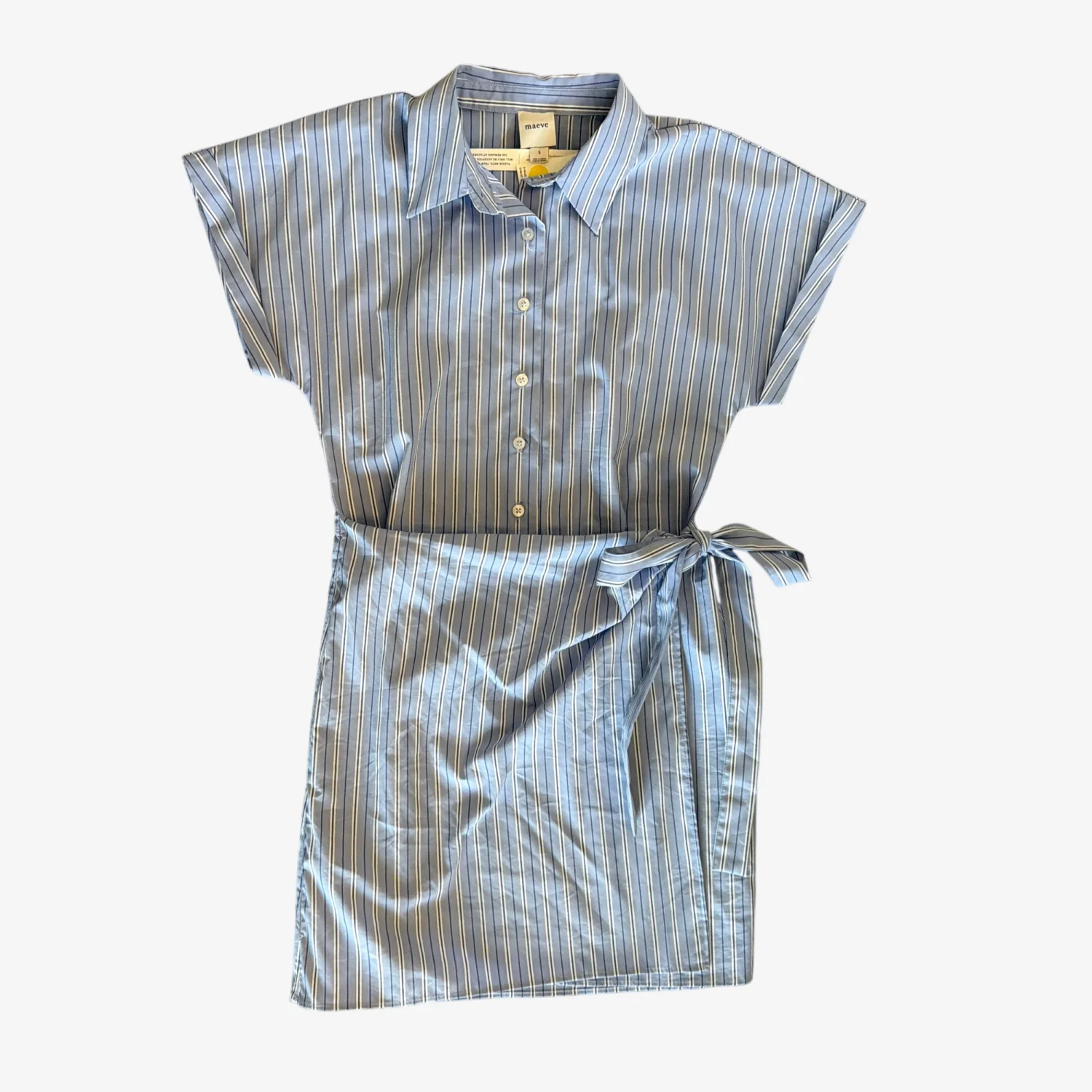 Brand new never worn with tags This is an Anthropologie Maeve Button-Front Wrap Mini Shirt Dress with blue and white stripes original price $148