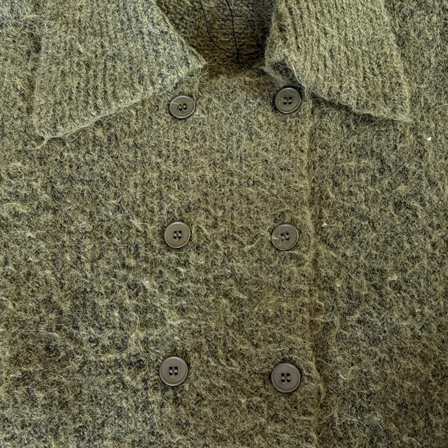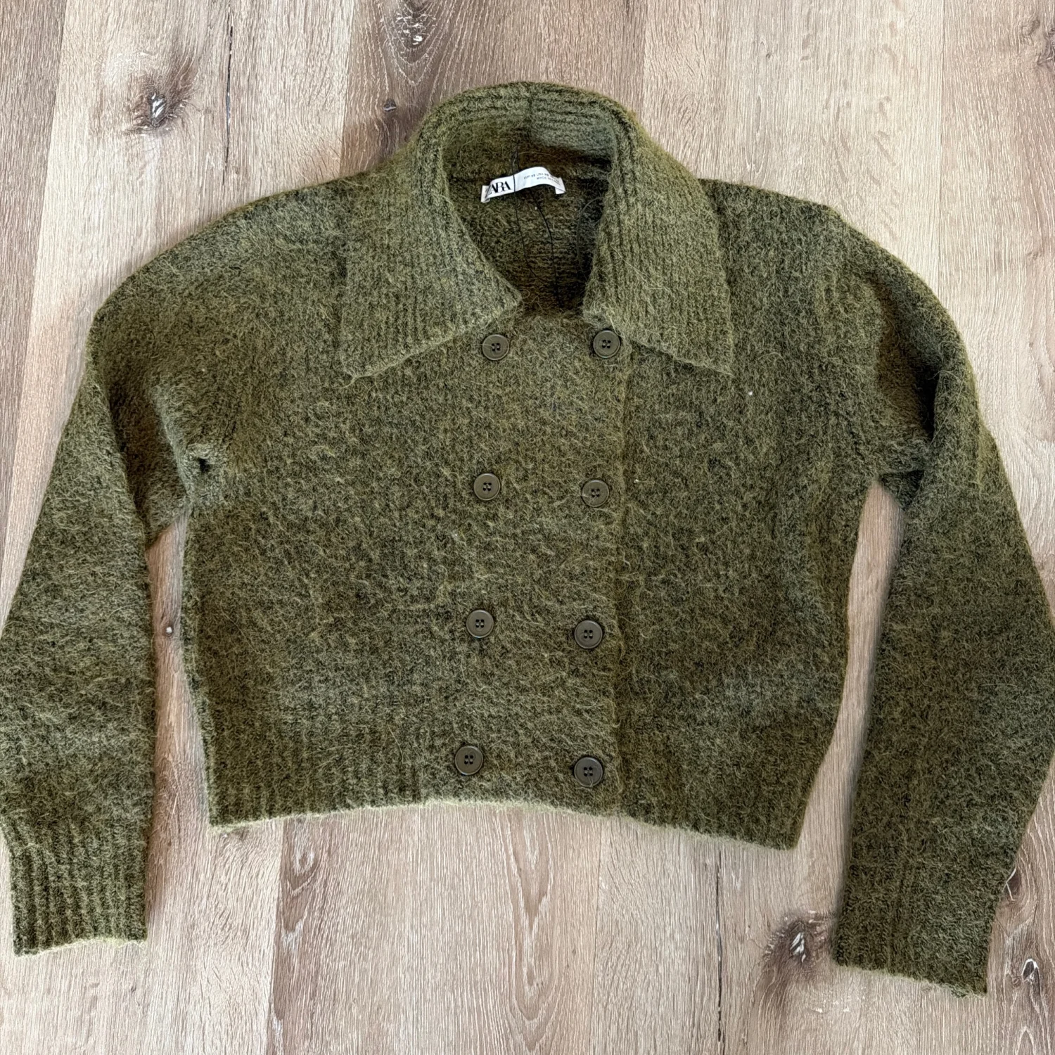 Stylish olive green cardigan with a double-breasted design. Cozy and chic for any occasion. Worn once, in great condition- without tag. Wore once to a party super cozy