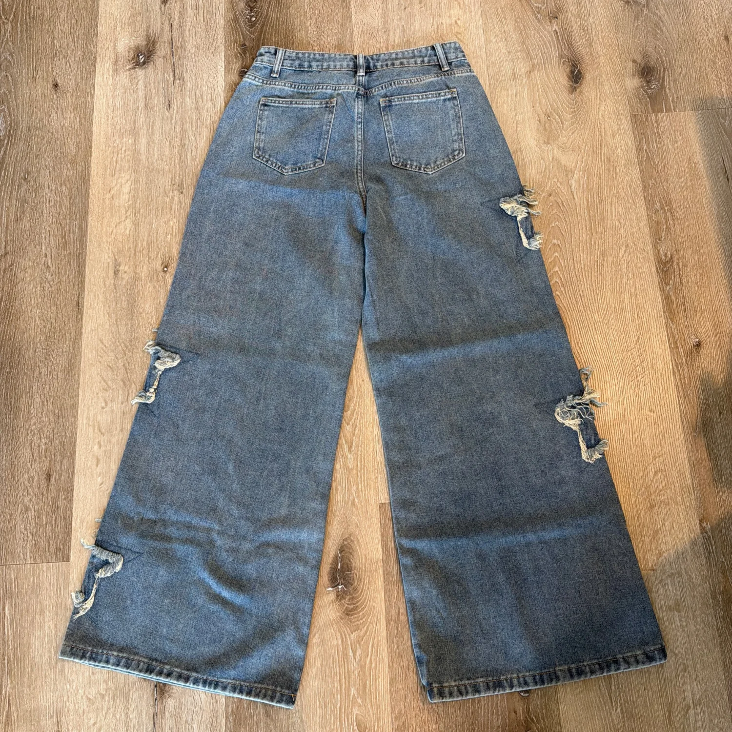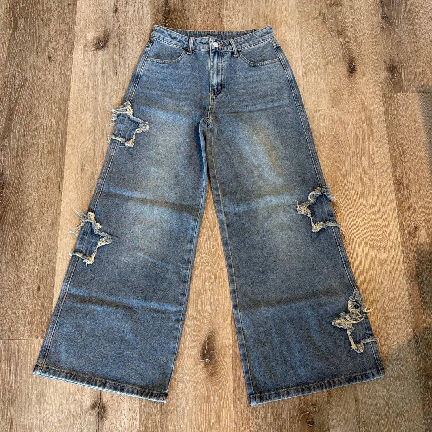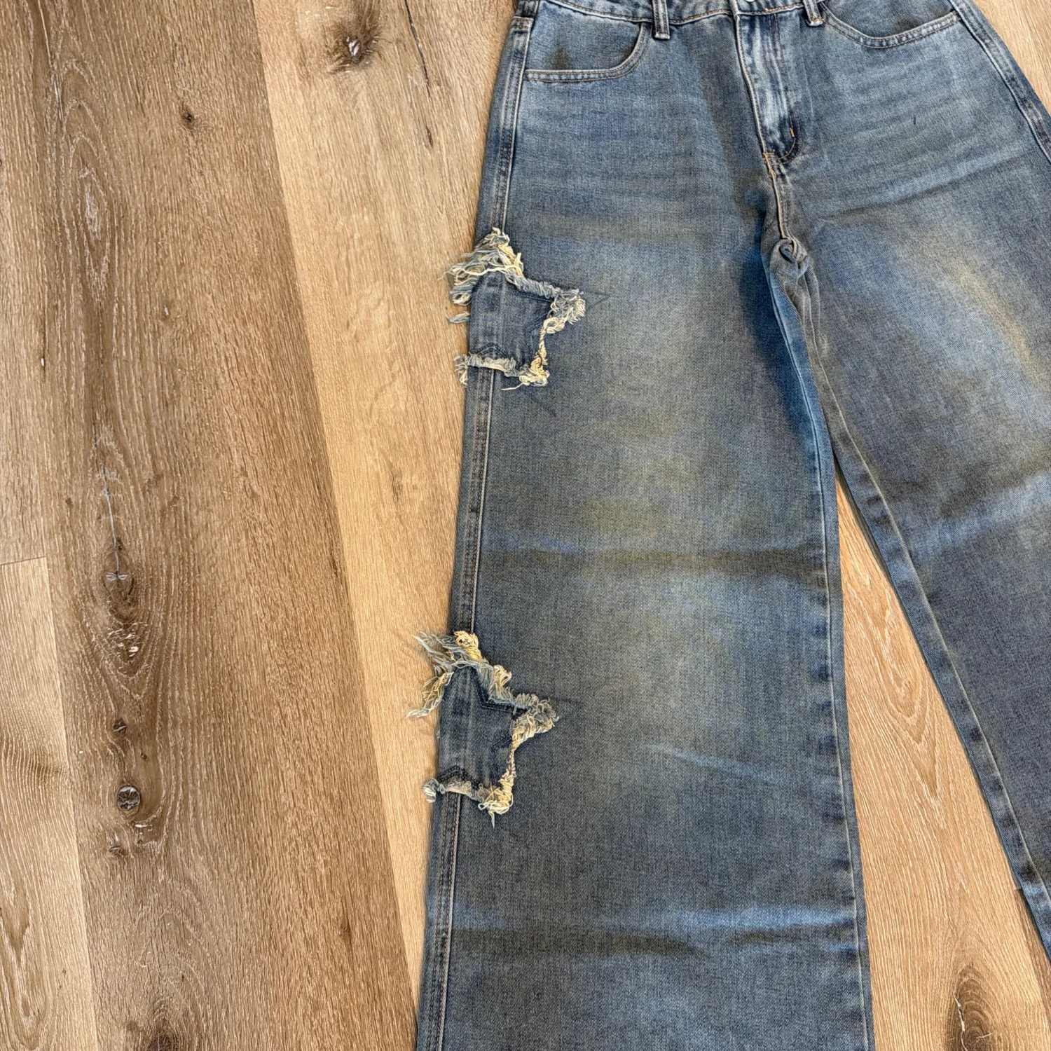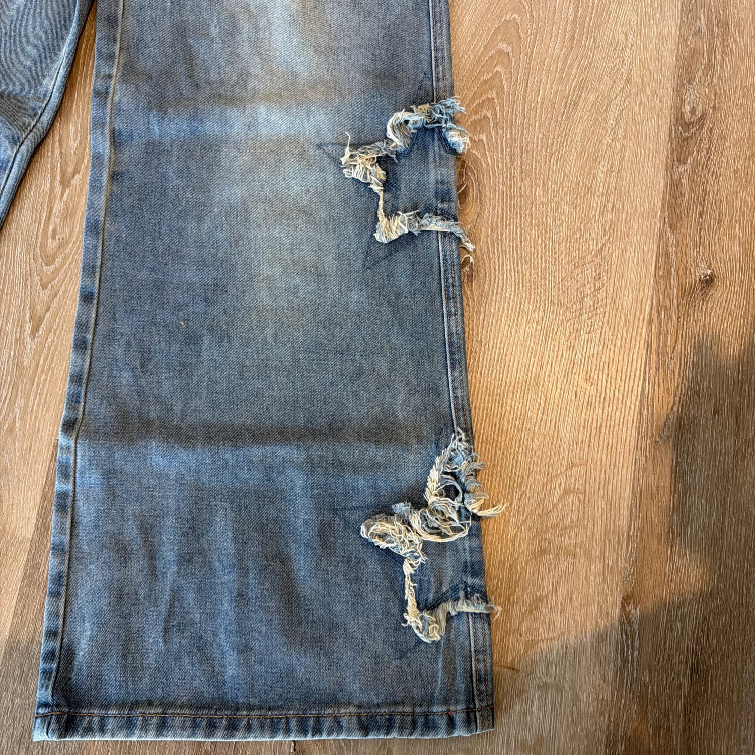 Med wash wide full Leg Star detail with fringe So cute New never worn shein doesn’t have tags on their clothes