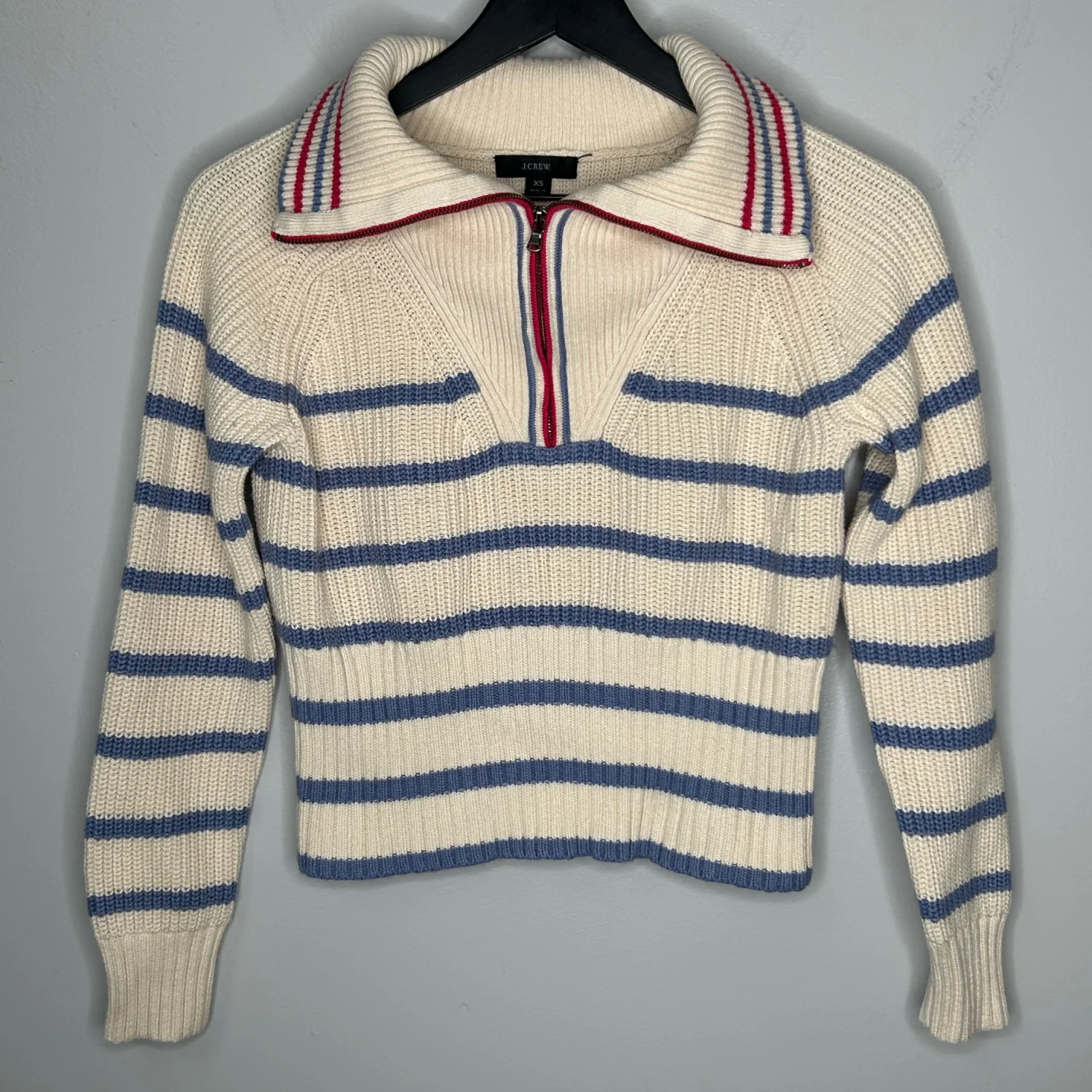 J. Crew Quarter Zip Ribbed Cropped Sweater Size XS Approximate measurements laid flat: Underarm to underarm- 18.5 inches Length- 17 inches Care tag removed. From a smoke and cat free home.