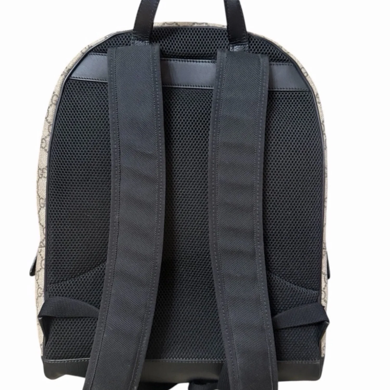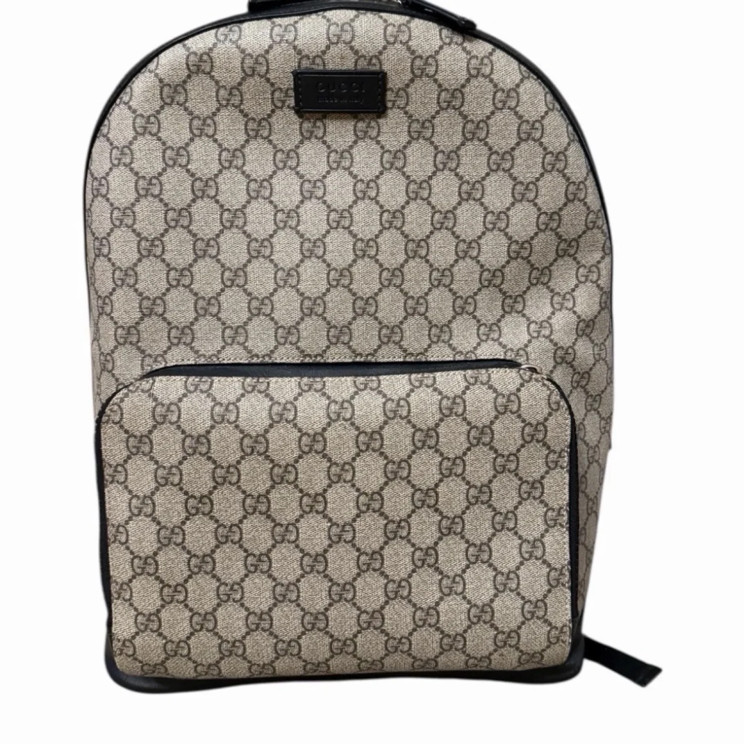EUC - carried a handful of times for work/travel, otherwise, kept in its original duster, stored in our safe. Impeccable condition, perfect size and utility. The Ophidia selection of men's bags, including cross-body bags, briefcases and totes has been revived for Cruise 2025. Featuring a GG Supreme canvas construction in a timeless grey and black color palette, the Double G motif defines each style as an integral design element. Here it appears on a backpack. Grey and black GG Supreme canvas Grey leather trim Silver-toned hardware Cotton linen lining Double G Inside: 1 open compartment Outside: 1 front zip pocket Handle drop: 3.5" Zip closure 11.6"W x 17.3"H x 6"D Weight: 3.3lbs approximately Made in Italy Gucci products are made with carefully selected materials. Please handle with care for longer product life. Protect from direct light, heat and rain. Should it become wet, dry it immediately with a soft cloth Fill the bag with tissue paper to help maintain its shape and absorb humidity, and store in the provided flannel bag Do not carry heavy products that may affect the shape of the bag Clean with a soft, dry cloth