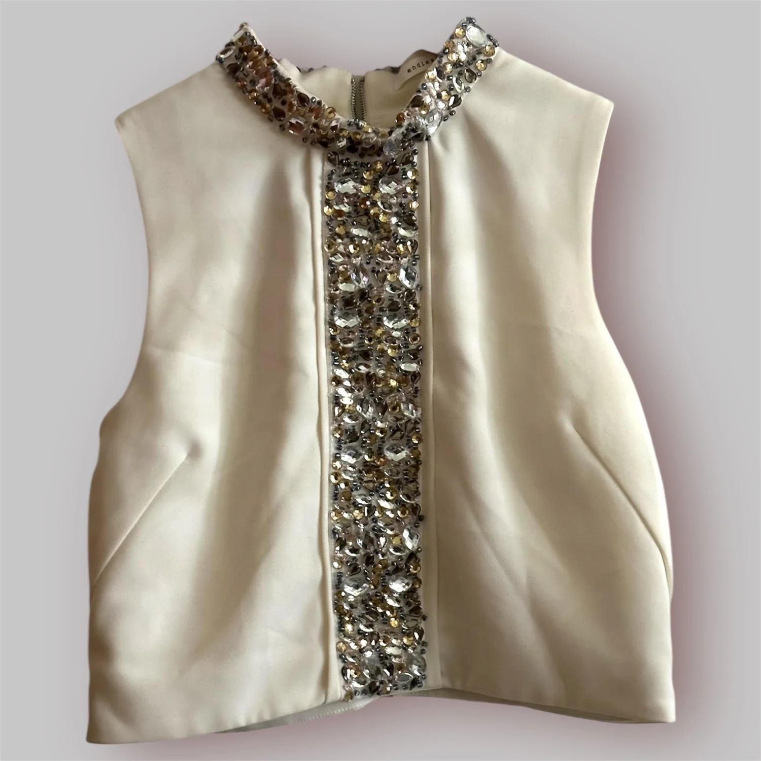 Endless Rose for anthropologie sequin cropped sleeveless top size Large