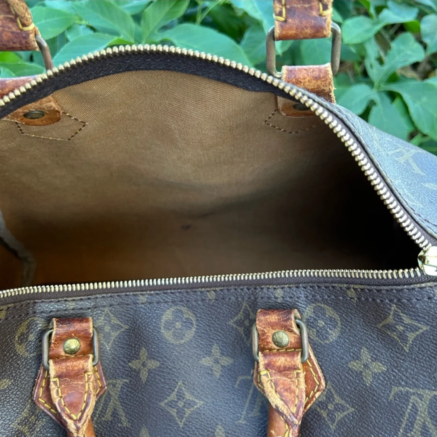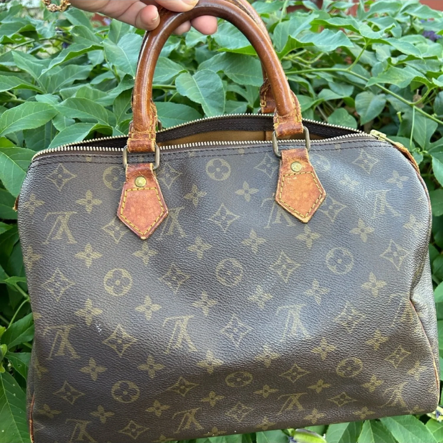 This vintage handbag features iconic monogram canvas and leather handles. It showcases a classic design with sturdy handles and a spacious interior. Signs of wear are present on the leather, adding to its vintage charm. Ideal for those who appreciate timeless style. #vintage #luxury #monogram
