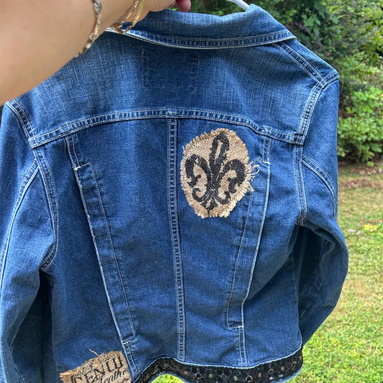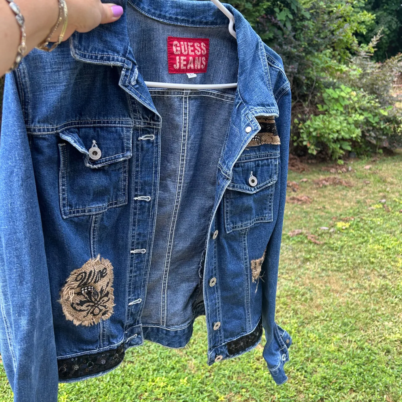 Vintage guess , jean jacket embellish with some bling. Size large