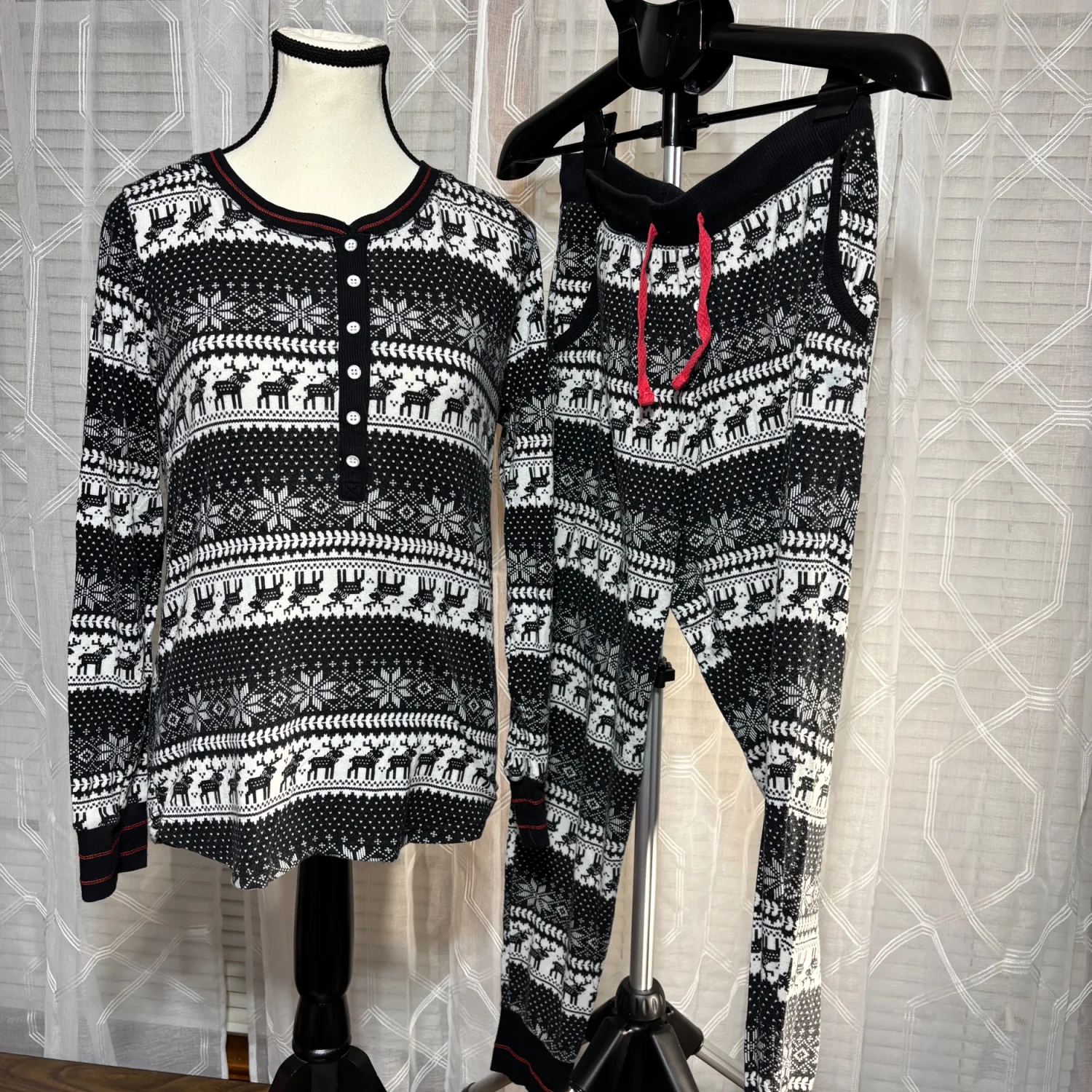 Cuddl Duds Black & White ladies Size Small Pajama Set very soft drawstring pant