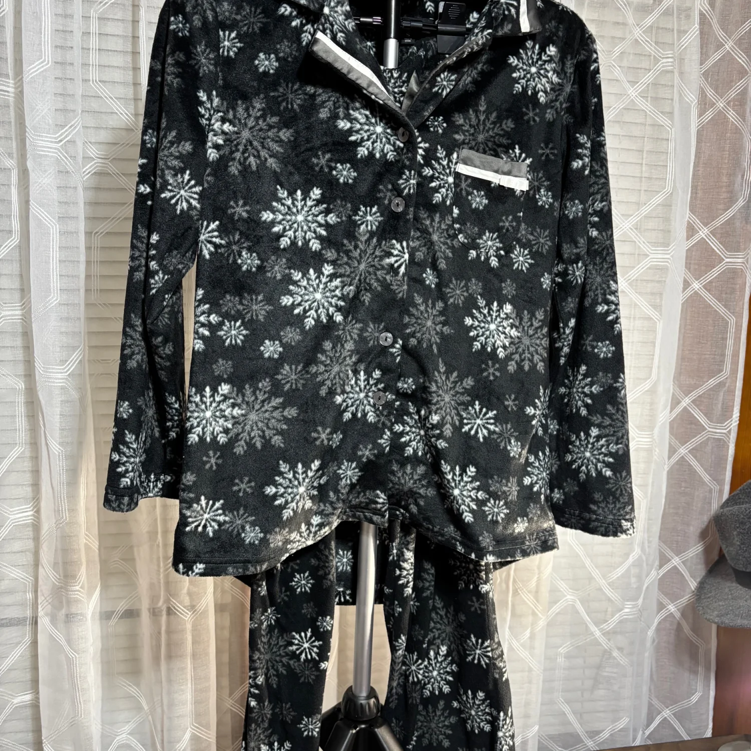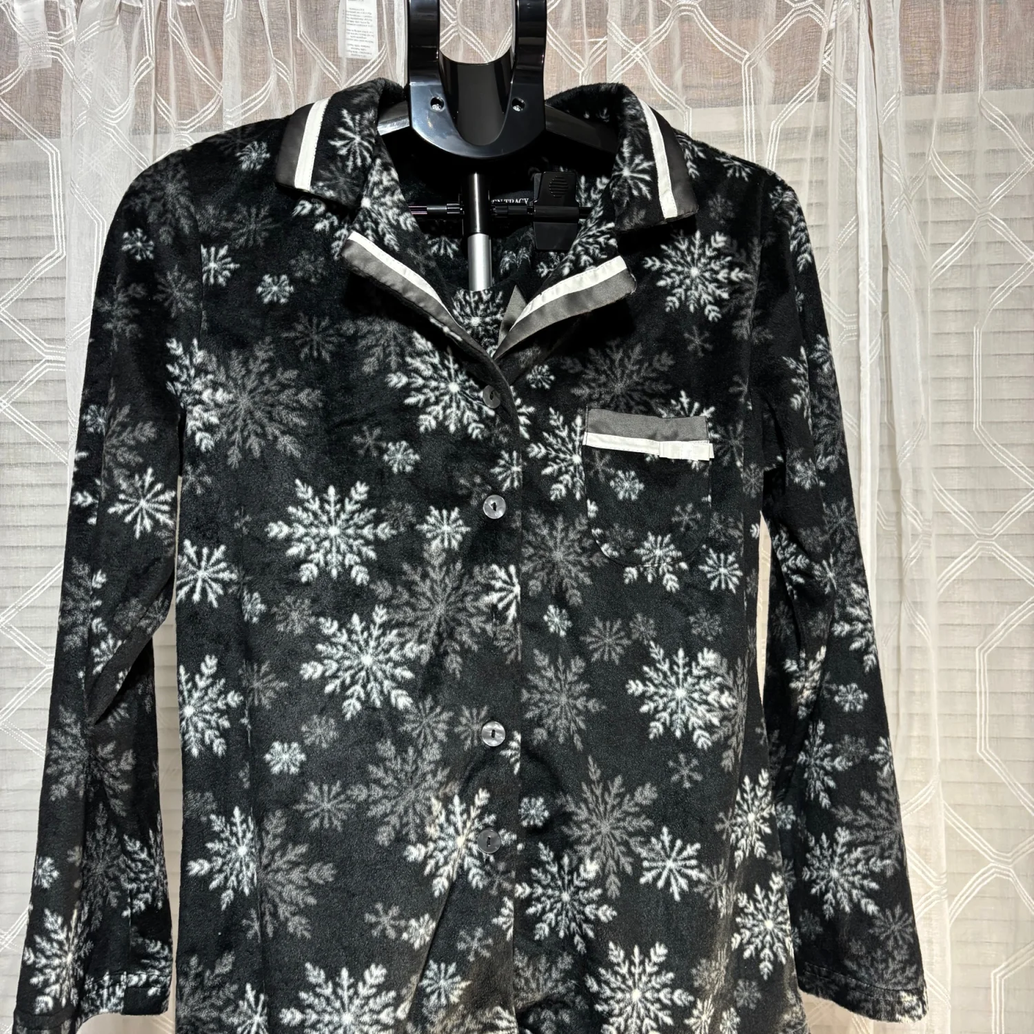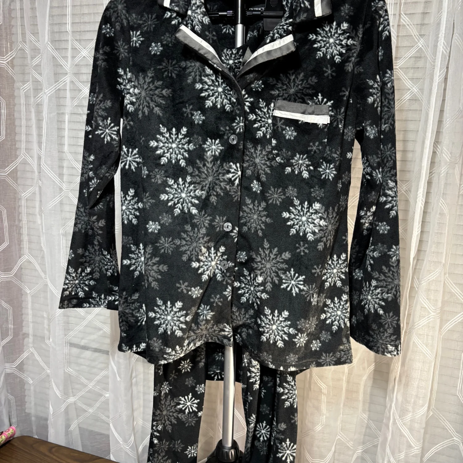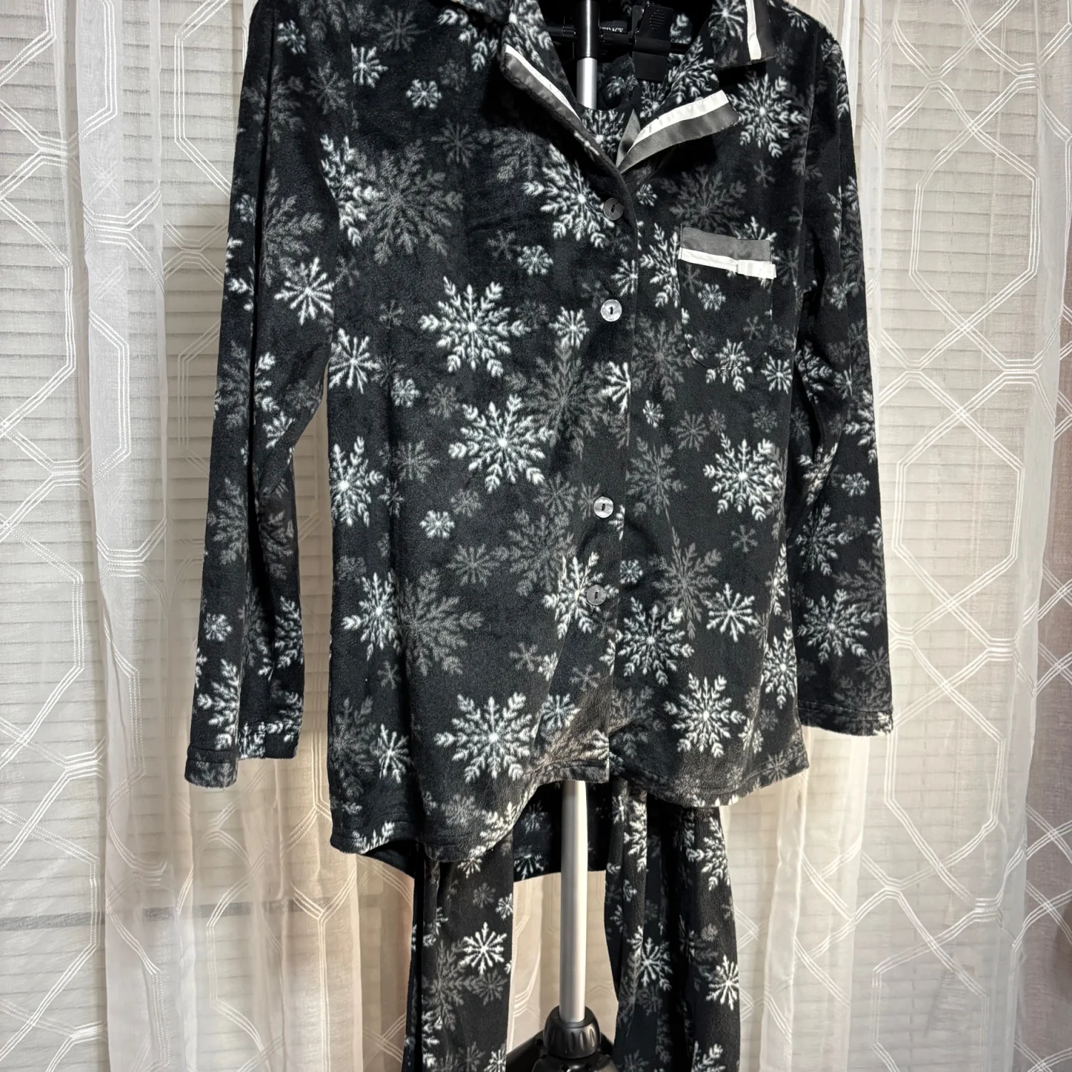 Ellen Tracy Ladies Small Black Snowflake Pajama Set drawstring pants so soft.