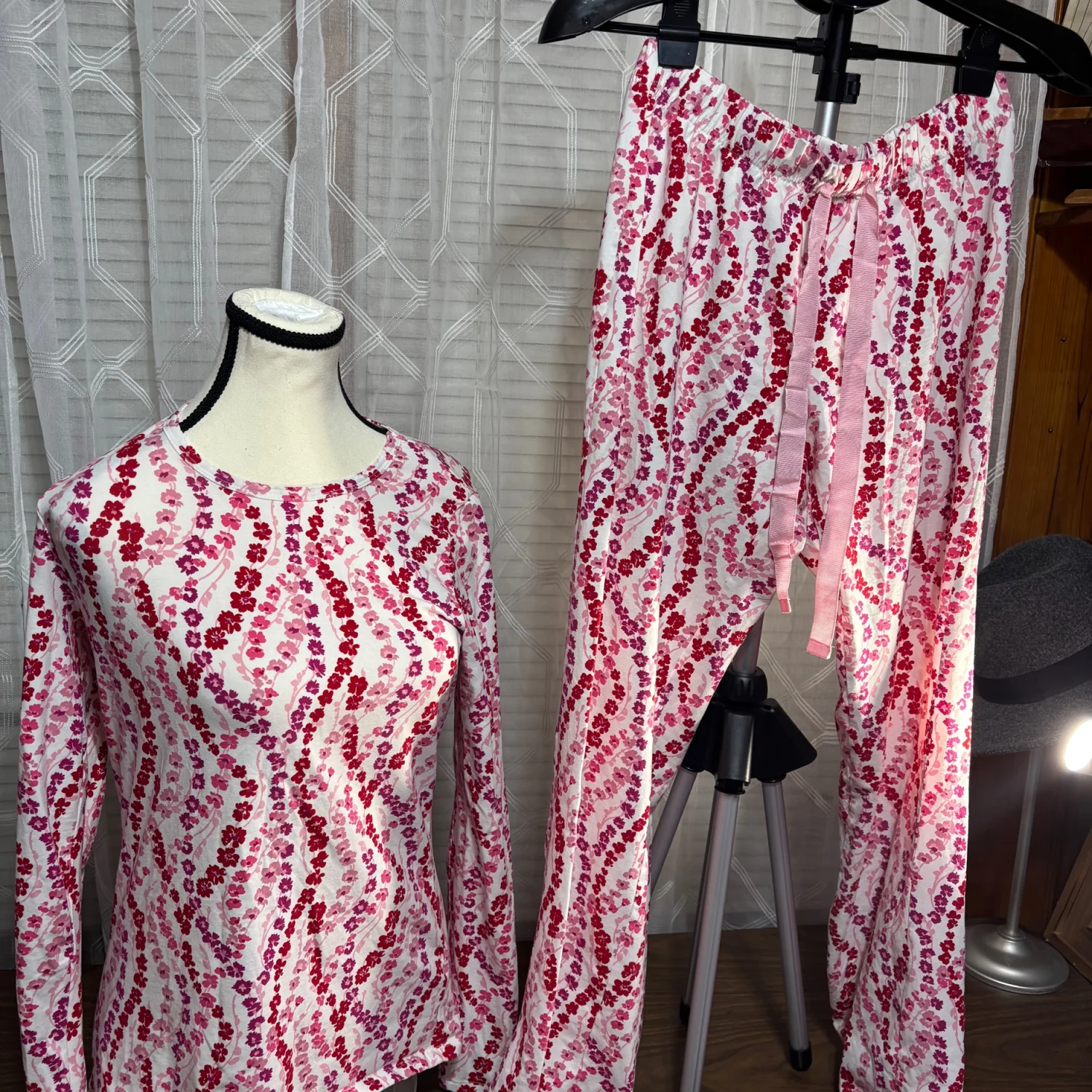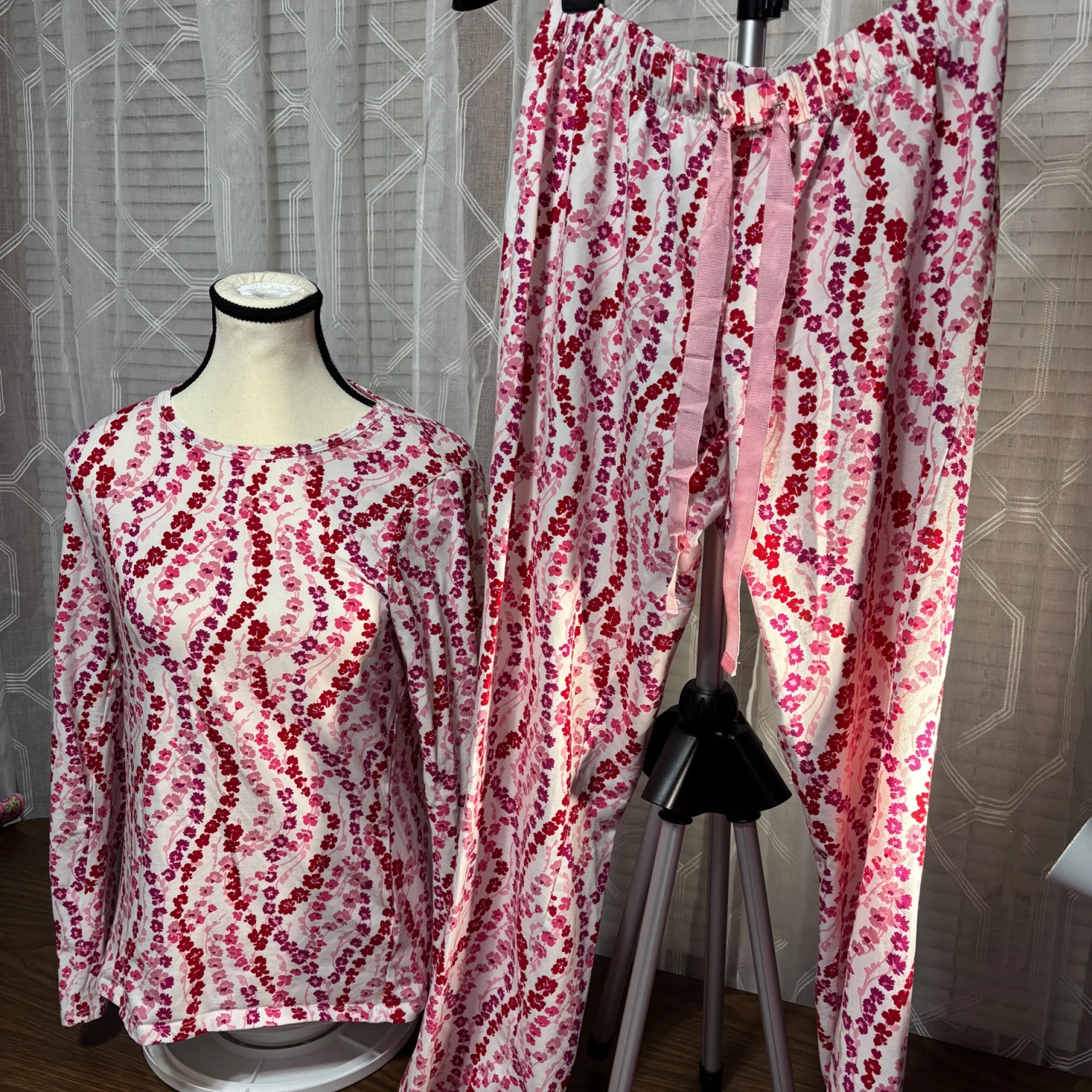 Lands' End ladies XS Red/White Floral Pajama Set 95/5 cotton/spandex NWOT PRETTY