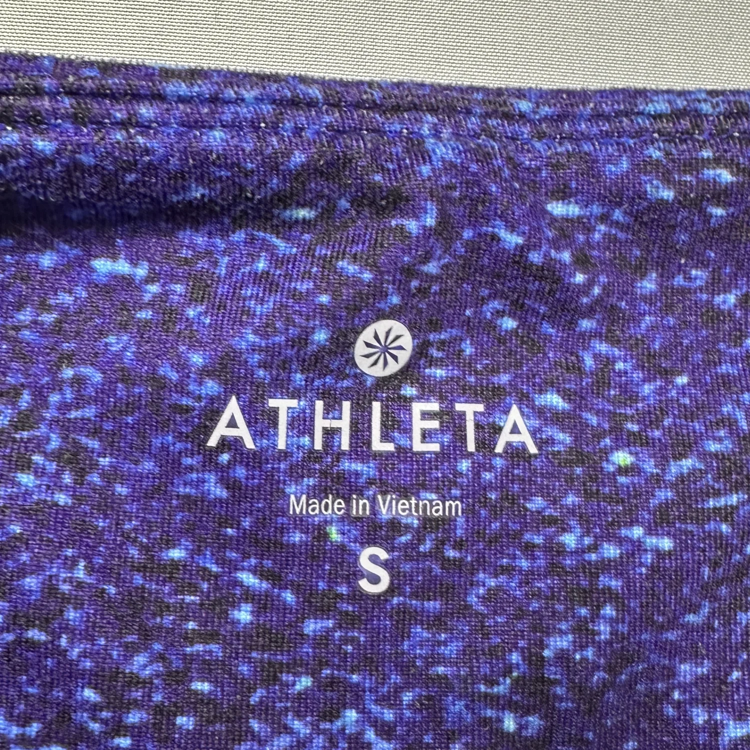 Standout galaxy print leggings by Athleta in a stunning purple, blue, and teal ombré fade 🌌✨ These have that dreamy cosmic vibe—perfect for yoga, gym, or styling into a bold athleisure look. Super flattering fit with a smooth, supportive waistband and stretchy performance fabric. ✨ Features: • Allover galaxy / space print with ombré fade • High-rise waistband (flattering + supportive) • Soft, stretchy performance fabric • Lightweight + breathable • Athleta logo at back ✨ Details: • Size: Small • Fabric: 92% polyester / 8% spandex • Designed in Sonoma County, CA • Made in Vietnam ✨ Condition: Pre-owned in good condition. No major flaws noted. See photos for details. Perfect for yoga, pilates, gym days, or festival styling 💫