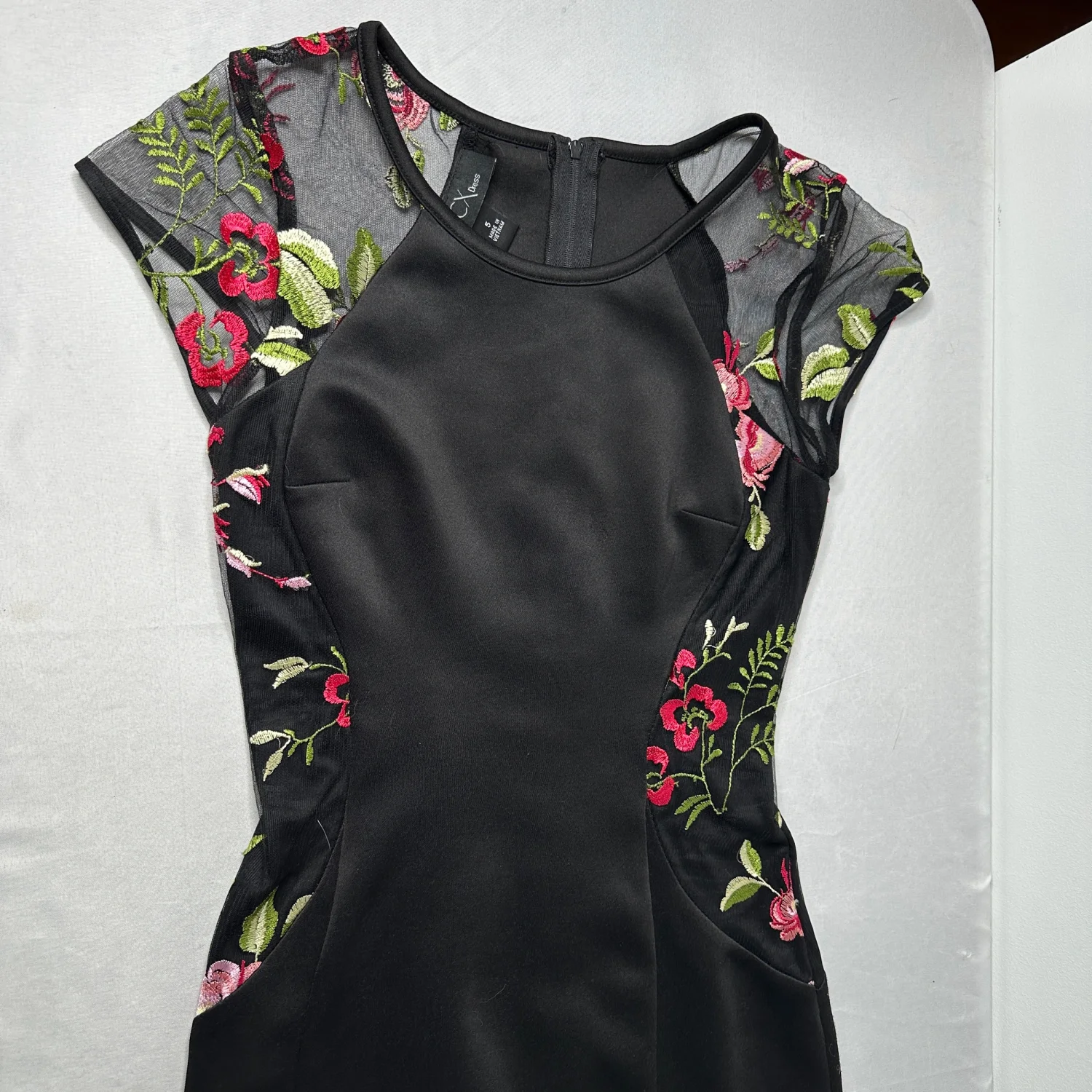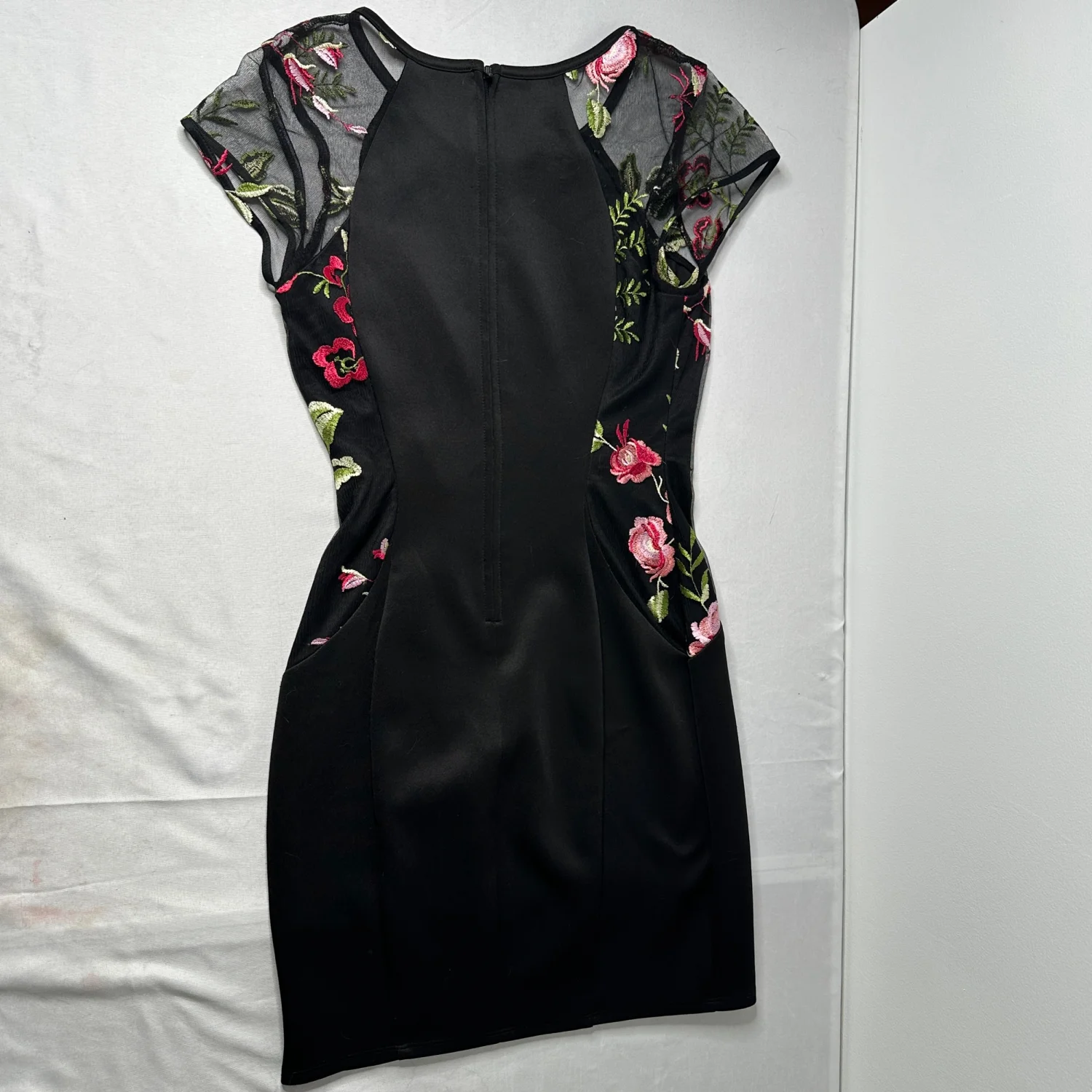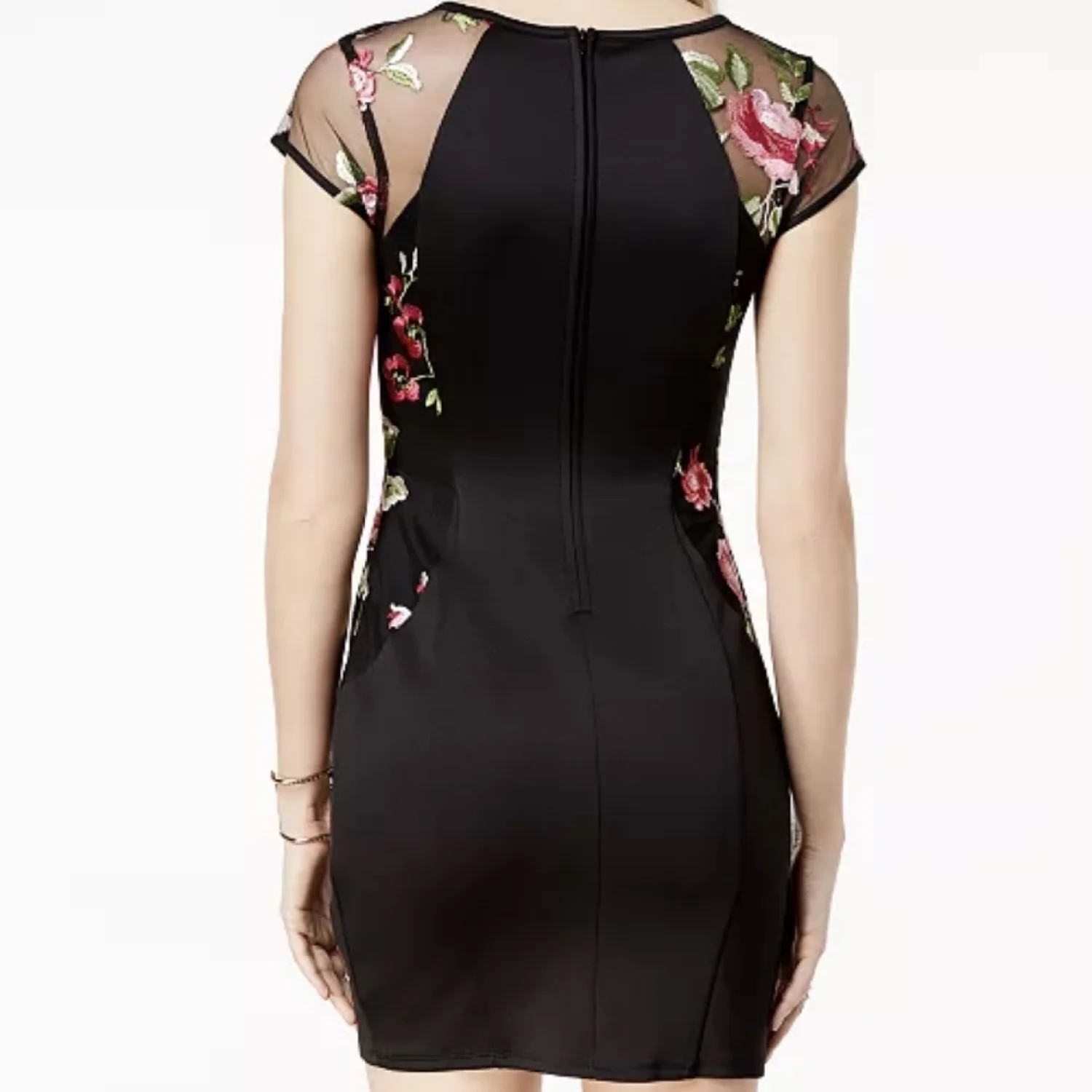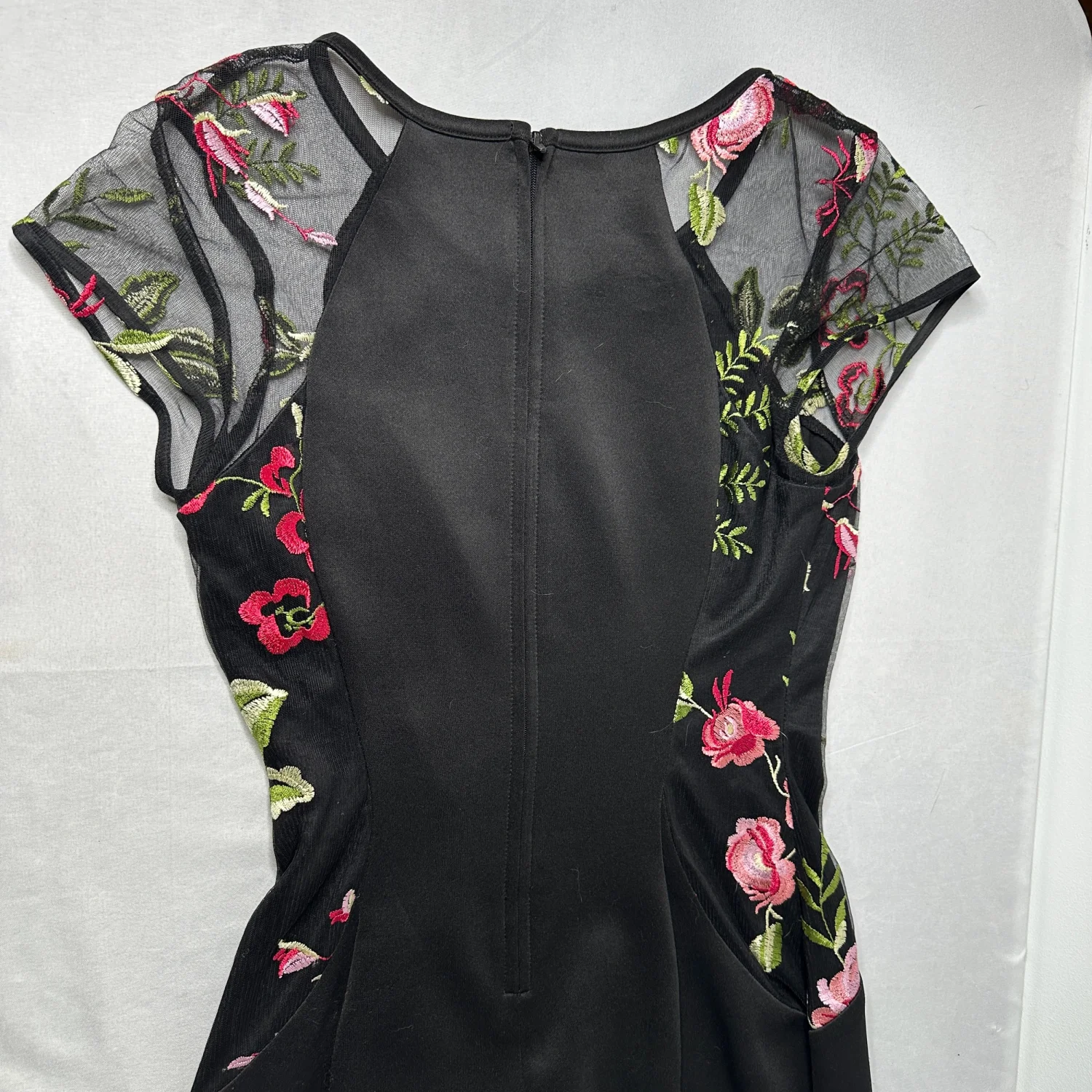 BCX Black Floral Mesh Bodycon Dress Romantic Embroidered Roses