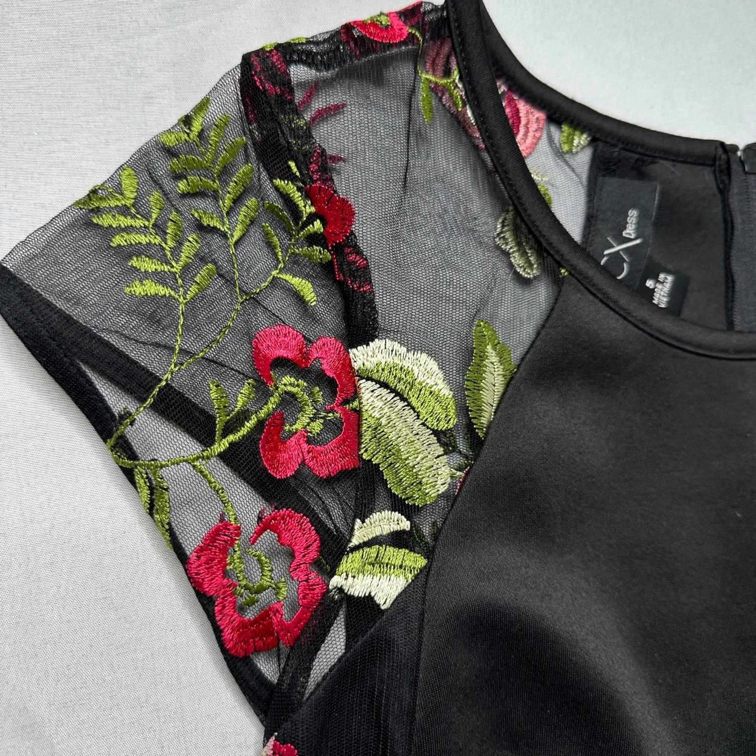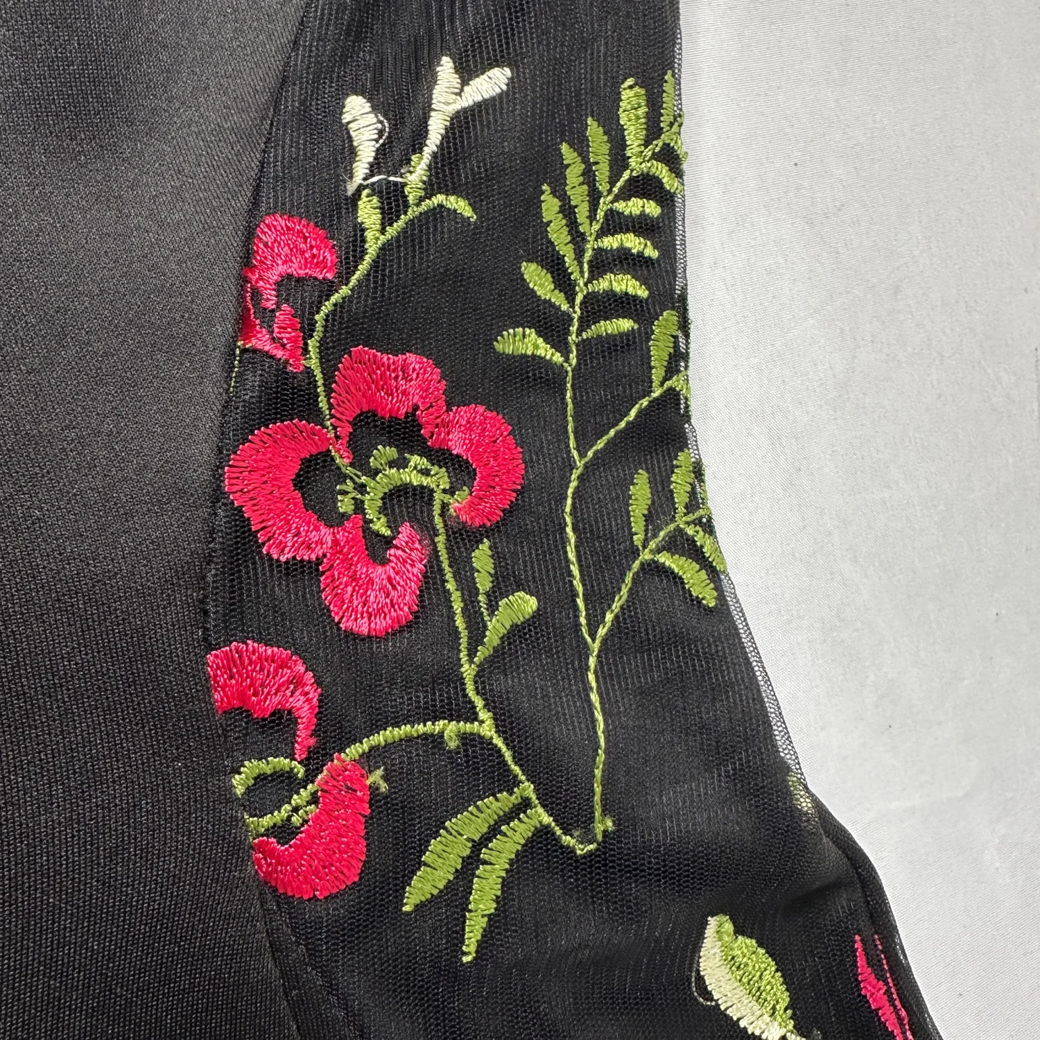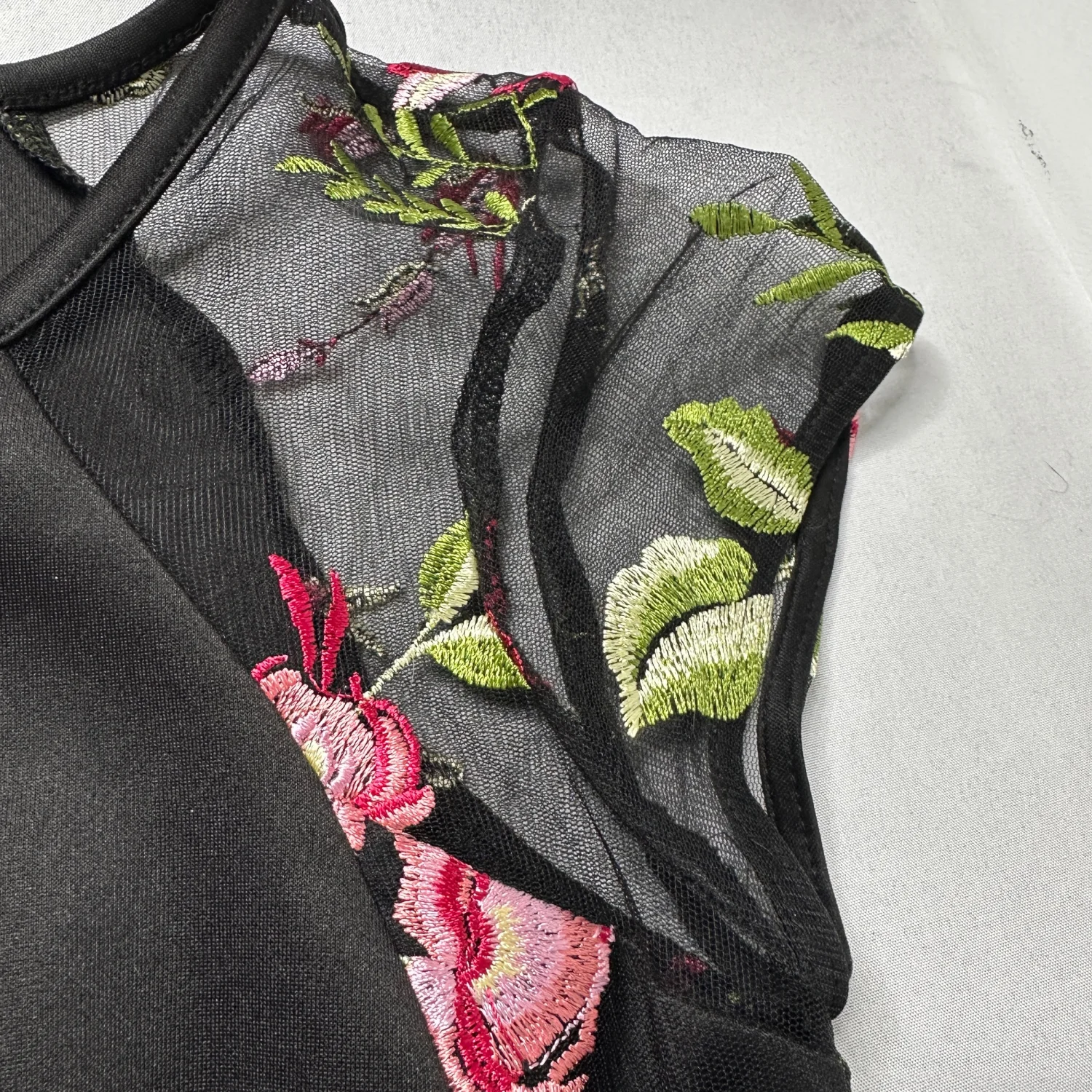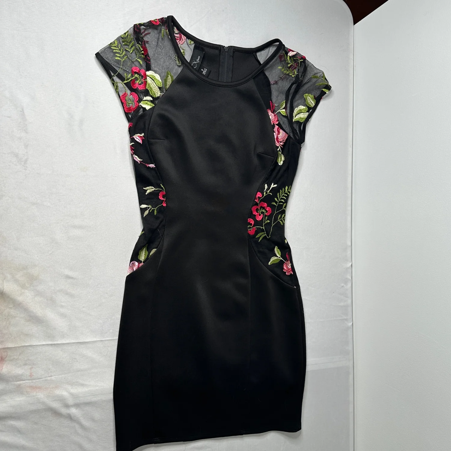 BCX Black Floral Mesh Bodycon Dress Romantic Embroidered Roses