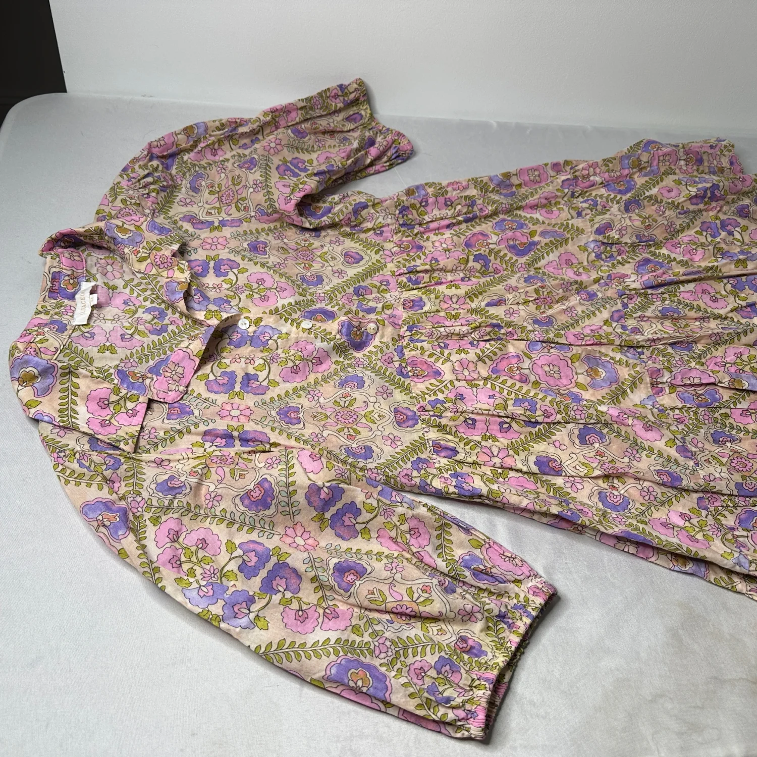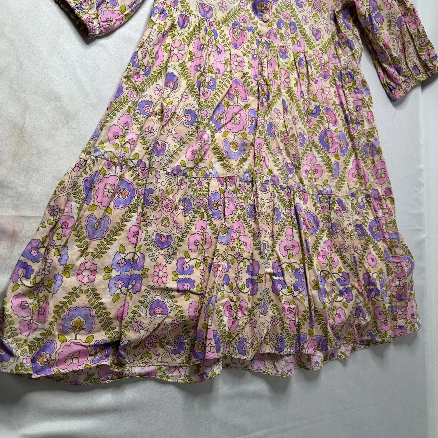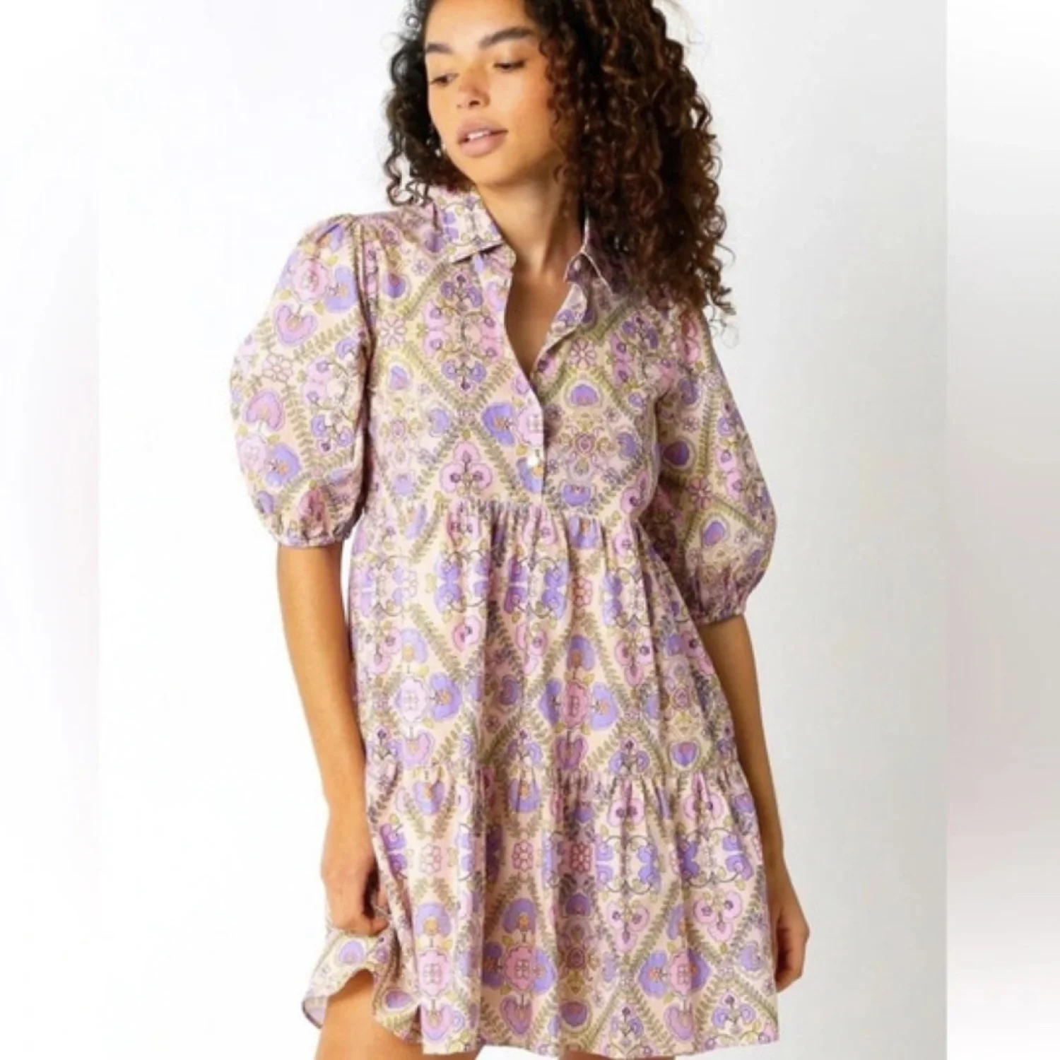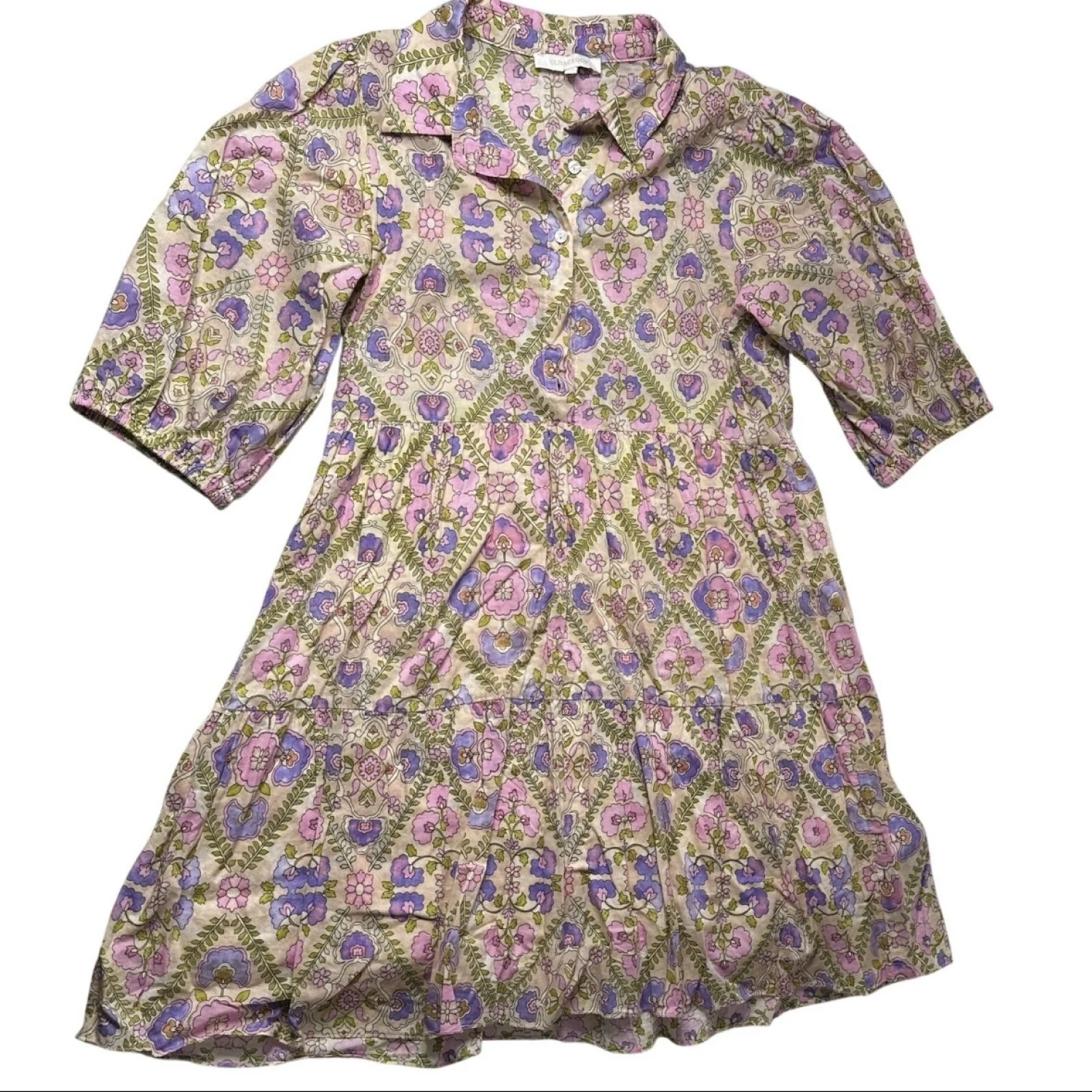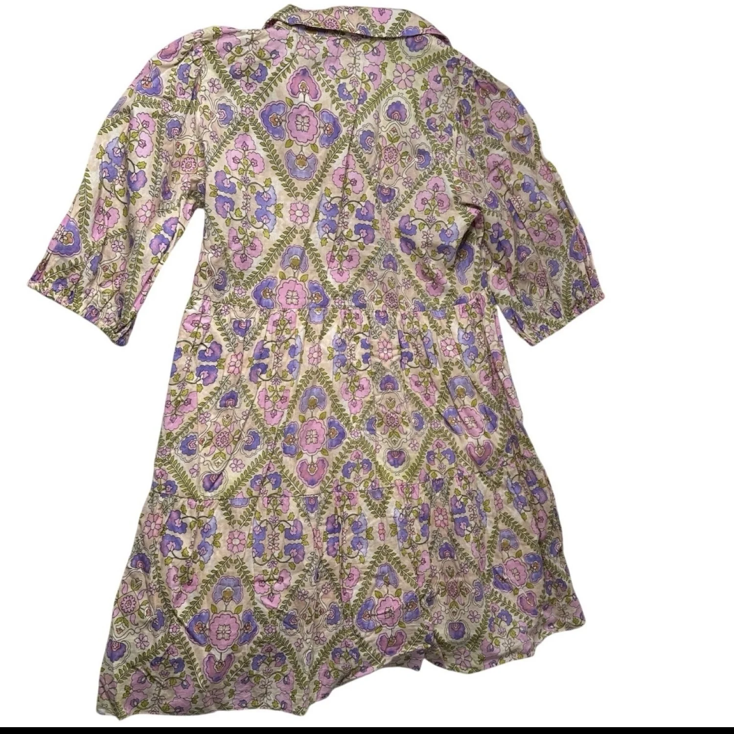 Soft cottagecore floral dress with a romantic tiered silhouette 🌸 This piece has that effortless “Anthro girl” vibe — lightweight 100% cotton with a delicate pink and lavender floral print, collared neckline, and flowy tiered skirt. Super flattering and easy to wear for everyday or dressed up. Perfect for: • brunch / weekend outings • spring & summer days • teachers / casual workwear • cottagecore / romantic styling Details: • Brand: Olivaceous • Size: Medium • 100% cotton outer • Fully lined • Button front neckline • Collared detail • Tiered skirt • Soft puff sleeves Condition: See photos Easy, breathable, and very wearable — the kind of dress you’ll reach for all the time 💐