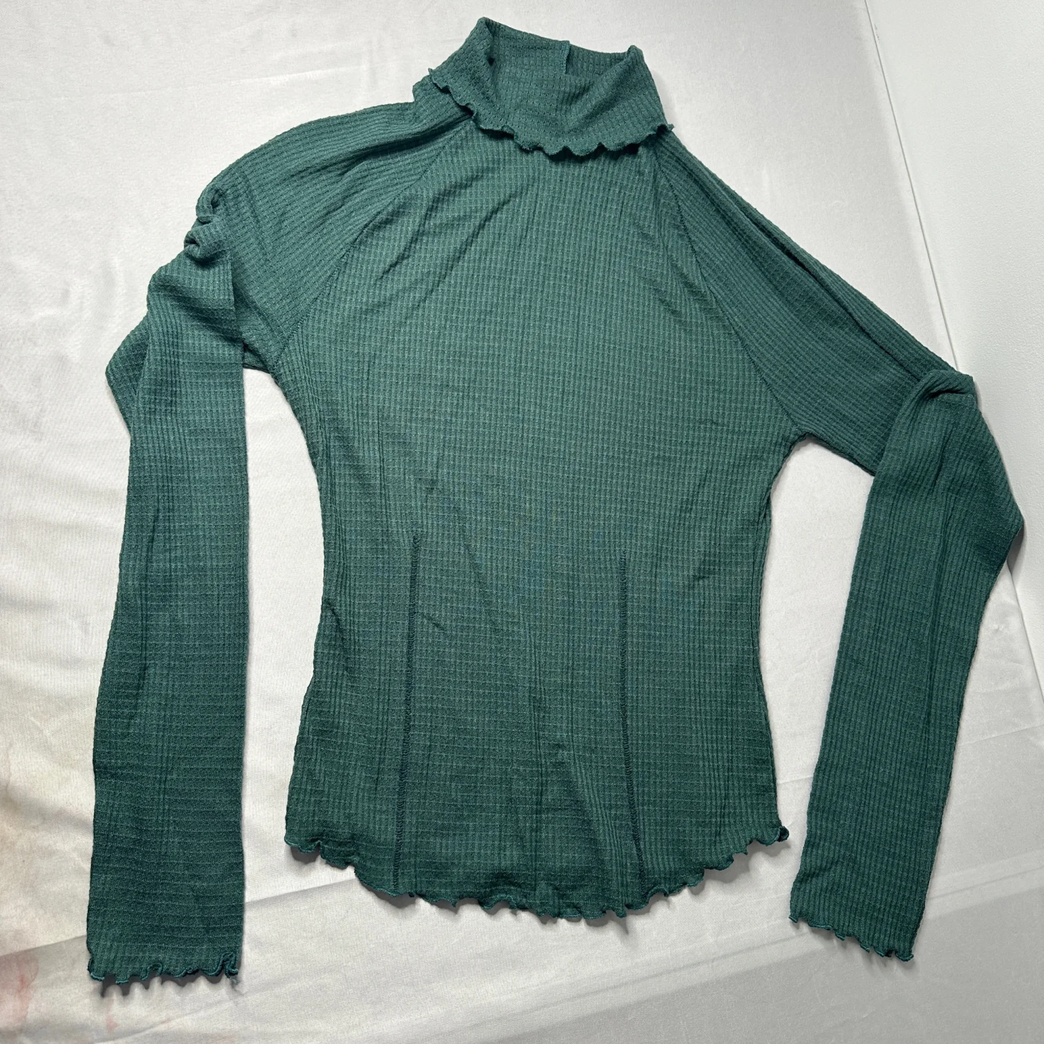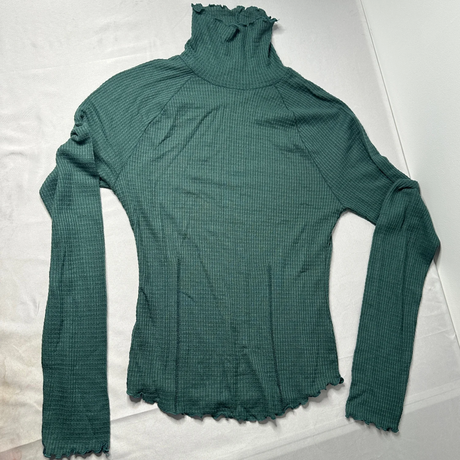 Free People Intimately Teal Thermal Turtleneck Lettuce Hem Top S