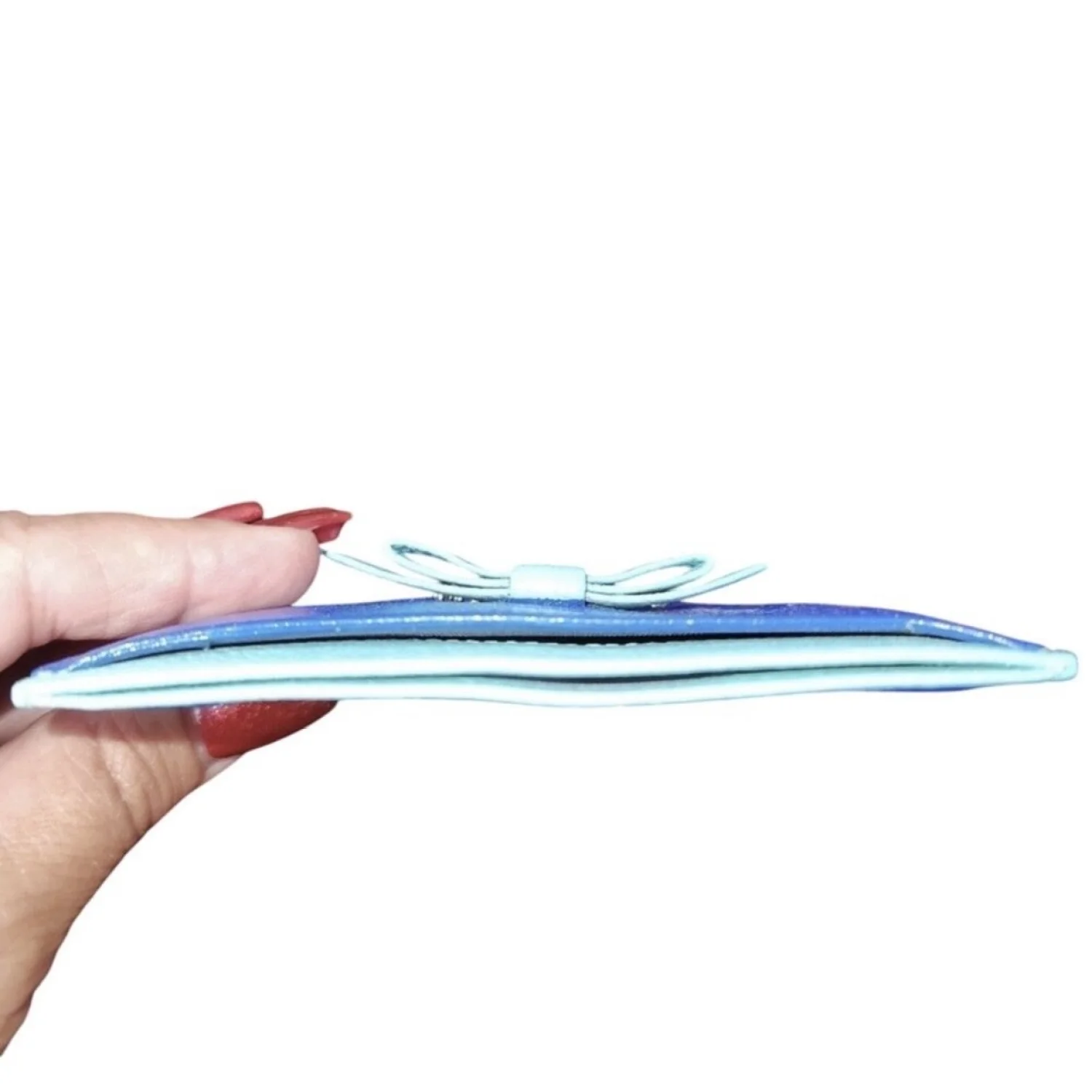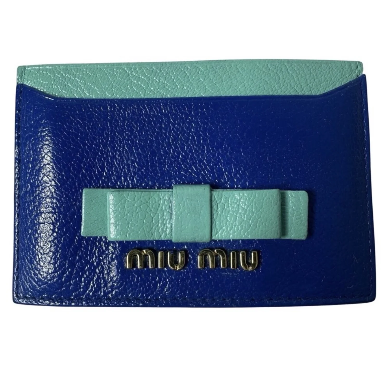 Miu Miu Leather Card Case Wallet Blue Aqua Bow Logo Authentic